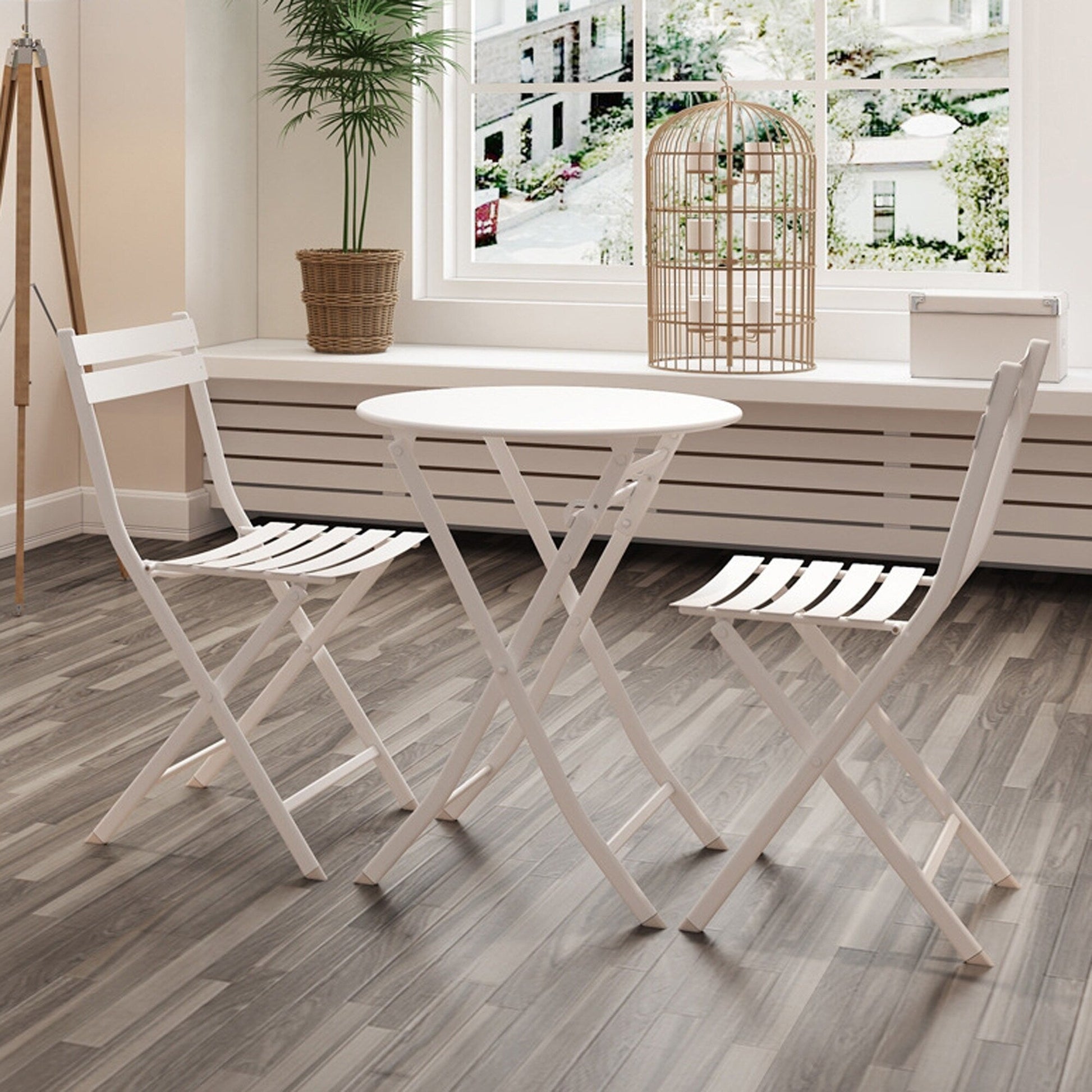 3-Piece Minimalist Patio Bistro Set of Foldable Round Table & Chairs - 3-Piece-Patio-Bistro-Set