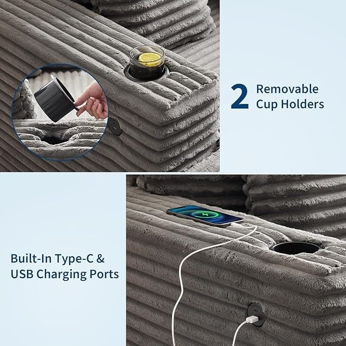 [Spacious Comfort for Lounging]Enjoy exceptional relaxation with this oversized chaise lounge chair, featuring a generous 54-inch width and deep 47-inch seating area. Perfect for reading, napping, or movie nights, it provides ample room for you and your loved ones to lounge comfortably. Its expansive design ensures a premium seating experience, making it an ideal addition to living rooms, bedrooms, or entertainment spaces.[Durable Premium Corduroy Upholstery]Crafted with breathable, high-quality corduroy fabric, this sofa bed combines luxury and durability. The soft texture adds a cozy feel, while the high-density foam and pocket springs inside maintain the chair’s shape and offer plush support. Whether you’re gaming, relaxing, or resting, the premium upholstery delivers lasting comfort and style.[Ergonomic Full-Body Support]Designed with your comfort in mind, the oversized chaise lounge features an ergonomic deep seat that supports your entire body. This promotes relaxation for reading, meditation, or unwinding after a busy day. The chair’s structure encourages healthy posture and reduces fatigue, helping you feel refreshed and cozy during extended use.[Practical Built-In Convenience]Stay connected effortlessly with the built-in charging ports integrated into the sleeper chair, allowing you to power your devices while reclining. Removable cup holders add convenience, letting you enjoy your favorite beverages without needing extra furniture. These thoughtful features enhance your leisure experience, perfect for multitasking during reading or watching TV.[Simple Assembly & Stylish Modern Design]This modern chaise lounge chair offers easy setup with a straightforward assembly process, so you can start relaxing quickly. Its sleek, contemporary design complements a variety of interior styles, adding sophistication and comfort to any space. Whether used in a living room, home office, or bedroom, it’s a stylish and practical seating solution