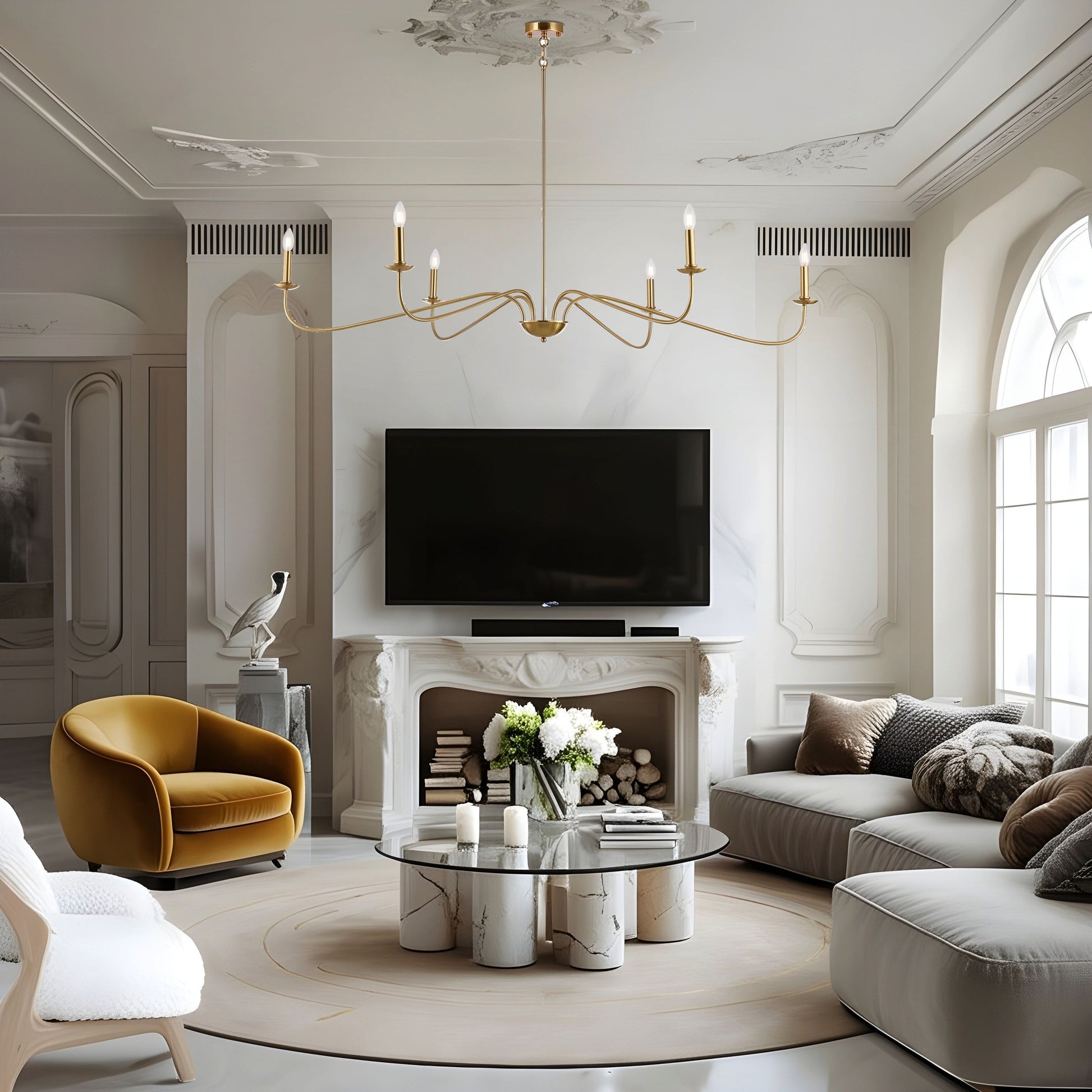 Simple in design, the traditional Candler 6-light chandelier gives your kitchen island, dining room, or entryway an elegant ambiance. Its understated design boasts metal arms that support exposed candelabra bulbs for an old-world look and feel. Additionally, its versatile configuration allows it to be installed on angled surfaces, making this fixture an excellent option for sloped ceilings. Mounting hardware is included for your convenience.
