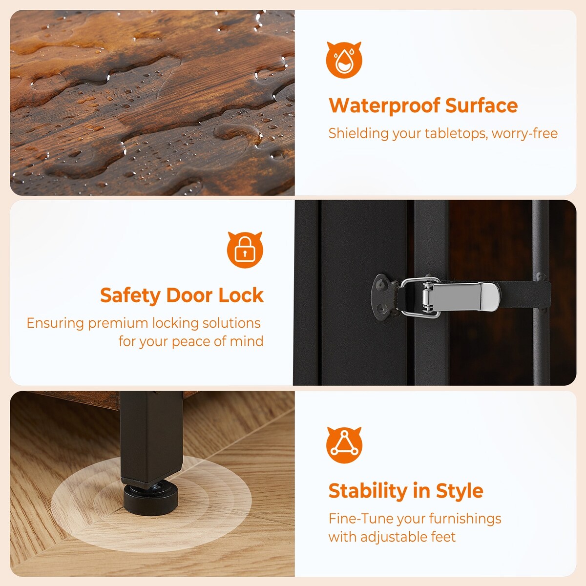 【With Plush Cushion & Adjustment Foot】Still worrying about your dog not getting used to the bottom slats? Sapphome wood dog crate is paired with a skin-friendly and comfortable dog mat, ensures your dog's comfort while resting. The adjustable feet add extra stability to the entire crate.