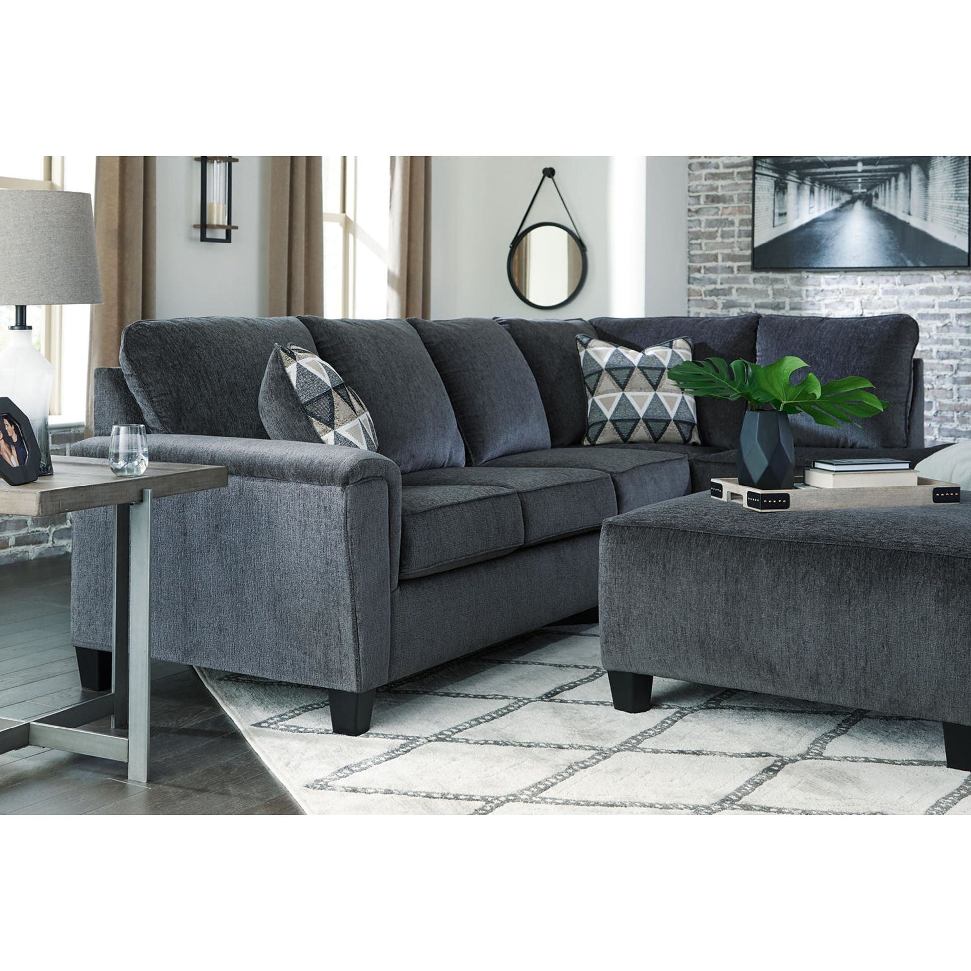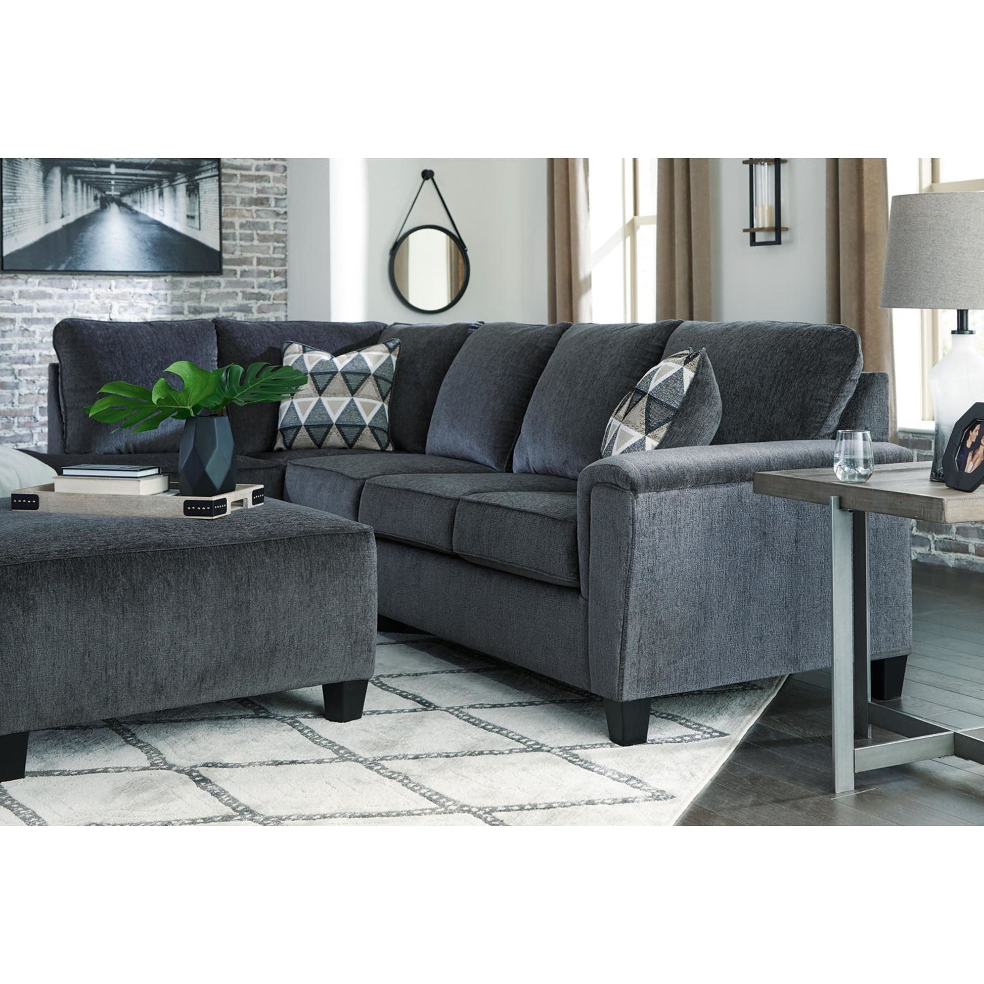 If you’re looking for a smokin' hot look priced to entice, you’re sure to find this budget-conscious sectional beautifully fits the bill. Covered in a smoke gray chenille upholstery loaded with plush texture, this less-is-more contemporary sectional is dressed to impress with angled side profiling and a track arm wrapped with a layer of pillowy softness for that little something extra. Open-ended chaise adds to this sectional’s swank look.