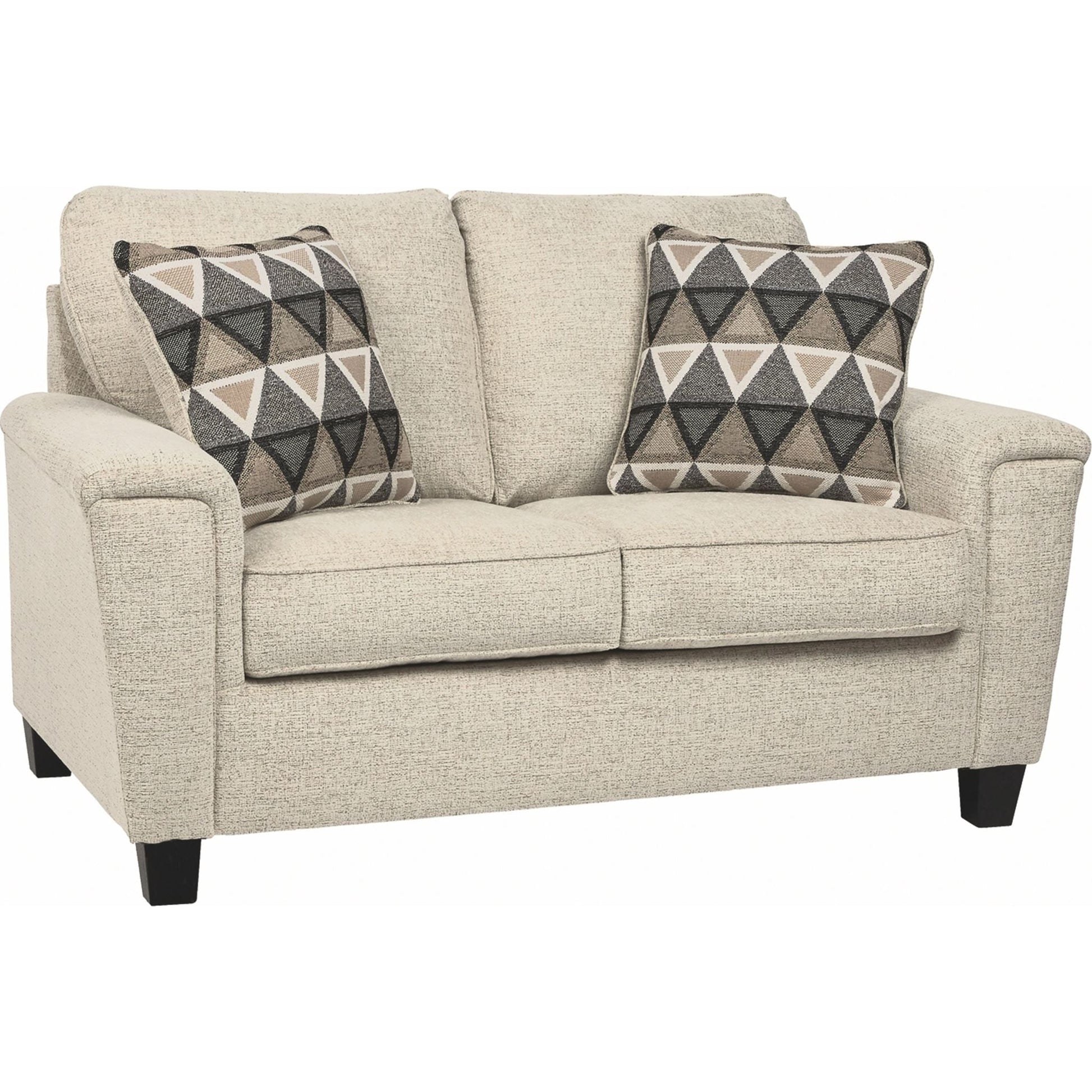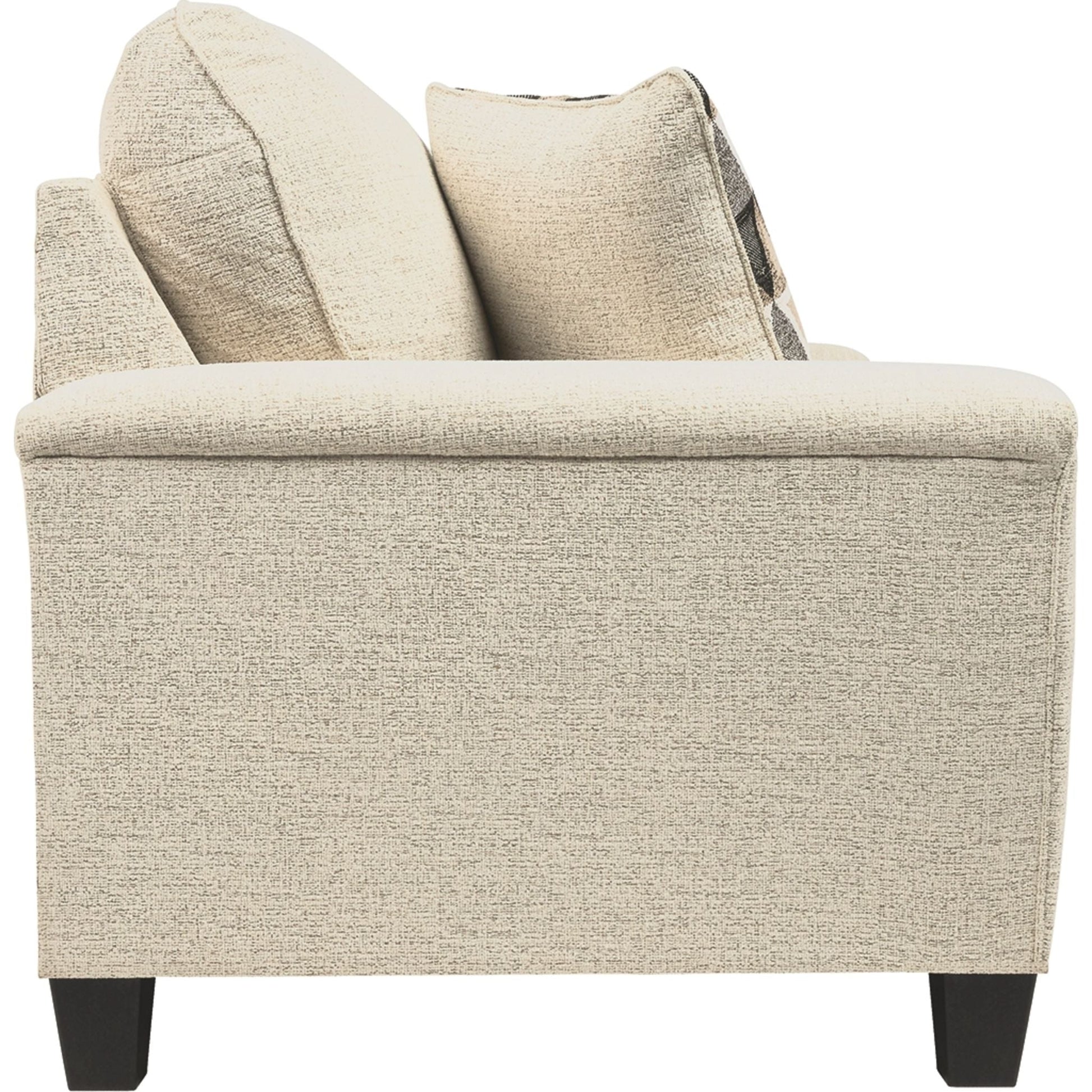 If you’re looking to lighten the mood, you’re sure to find this space-conscious, budget-conscious loveseat a breath of fresh air. Covered in a cream-tone chenille upholstery loaded with plush texture, this less-is-more contemporary loveseat is dressed to impress with angled side profiling and track armrests wrapped with a layer of pillowy softness for that little something extra. Crisp and clean, the 2-over-2 cushion styling adds up to one sensational look.