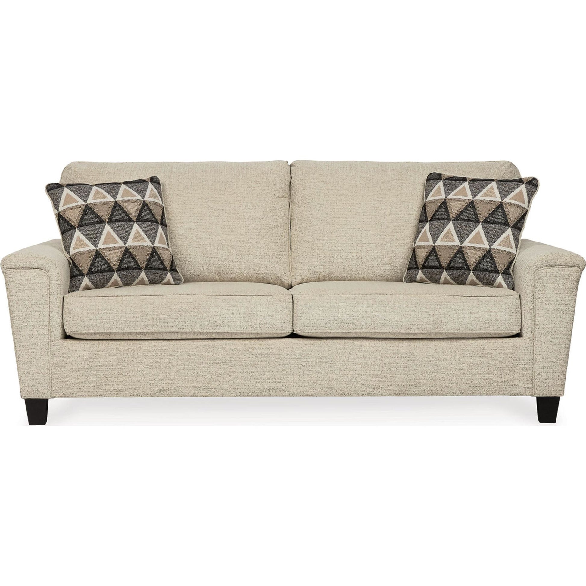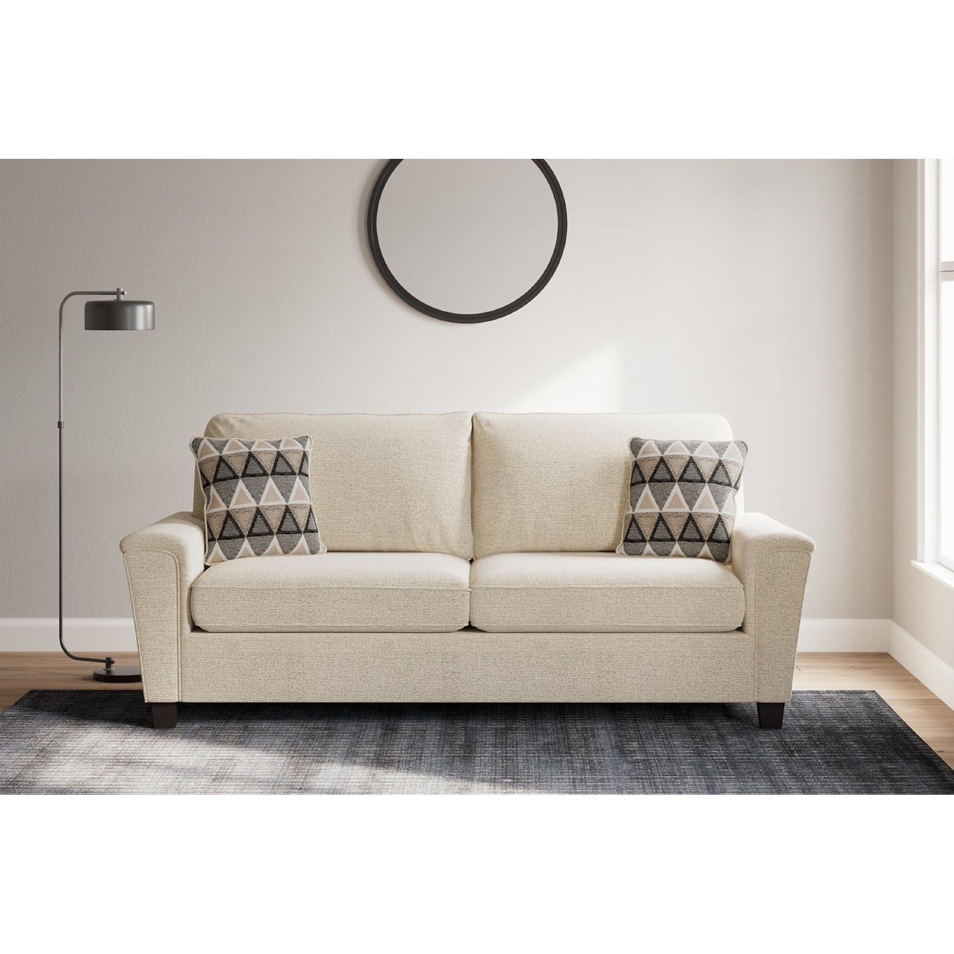 If you’re looking to lighten the mood, you’re sure to find this space-conscious, budget-conscious sofa a breath of fresh air. Covered in a cream-tone chenille upholstery loaded with plush texture, this less-is-more contemporary sofa is dressed to impress with angled side profiling and track armrests wrapped with a layer of pillowy softness for that little something extra. Crisp and clean, the 2-over-2 cushion styling adds up to one sensational look.