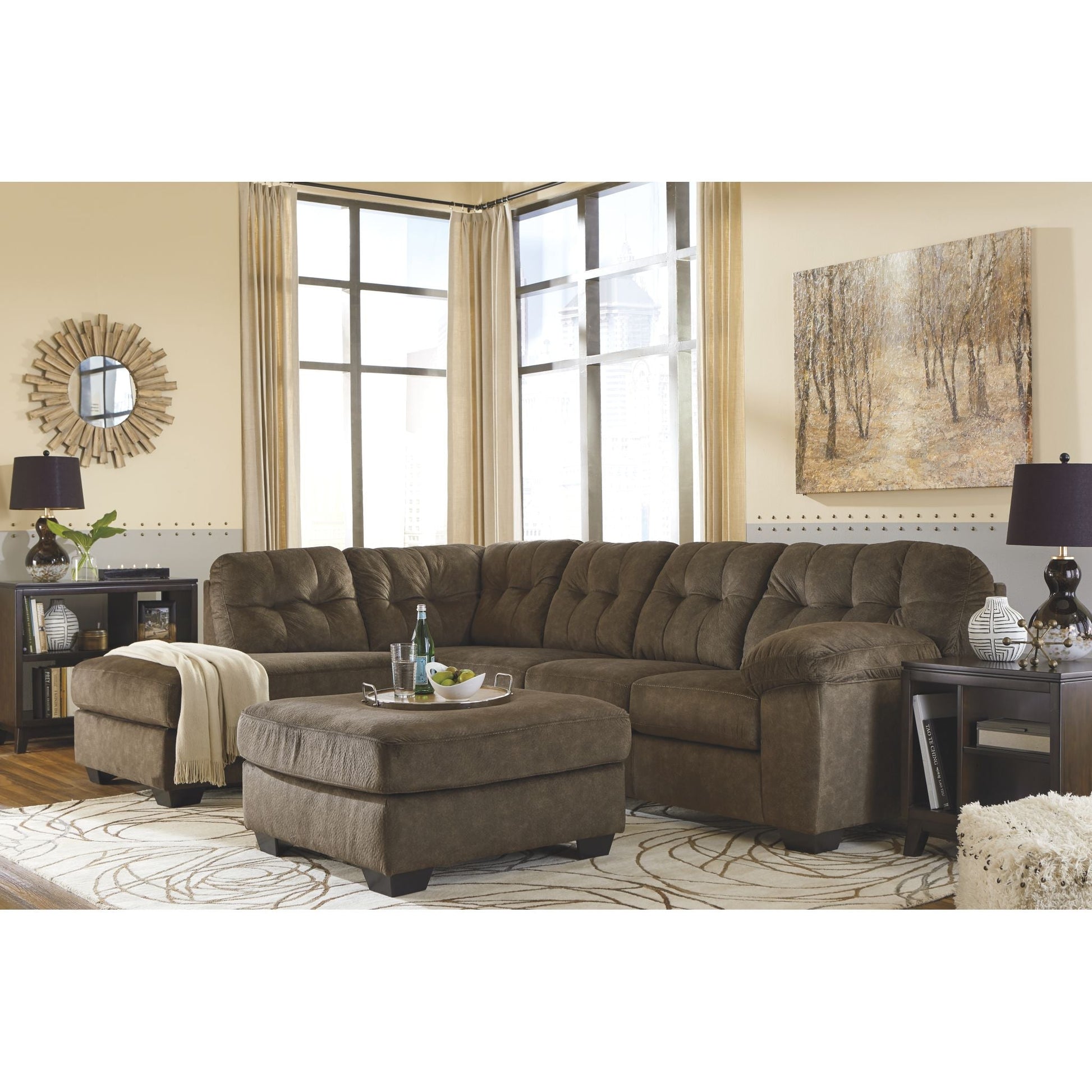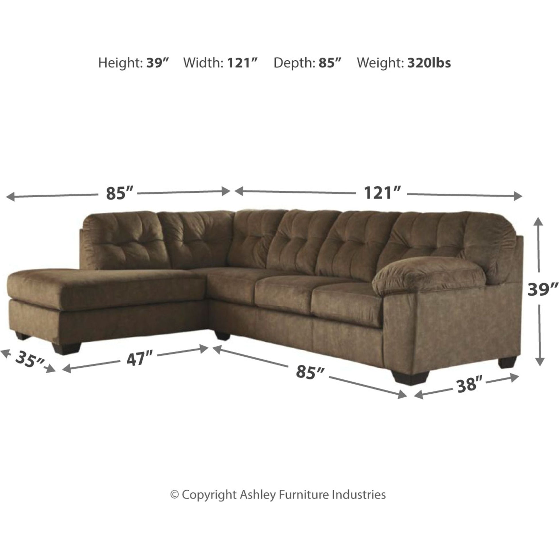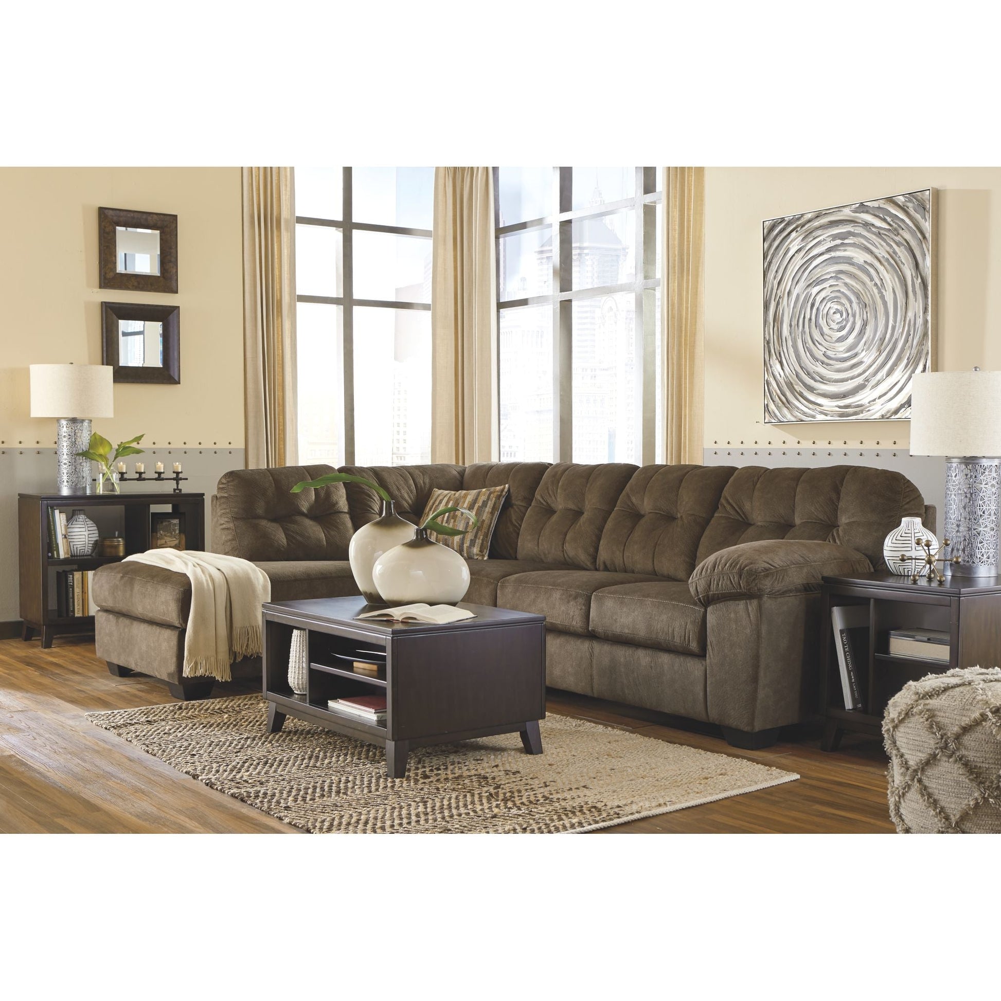 Looking for the perfect blend of decadent comfort and contemporary flair? Feast your eyes on this sectional. Tufted box cushioning and thick pillow top armrests brilliantly merge style and a sumptuous feel. Wonderfully plush to the touch, the sectional’s granite gray fabric is the ultimate choice for a chic, trendy look.