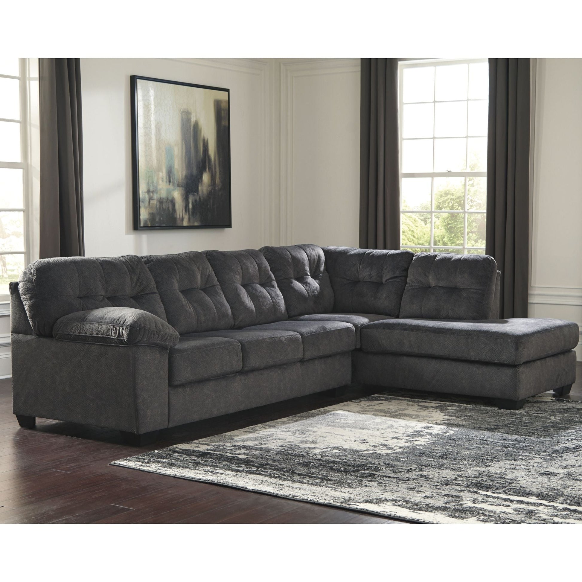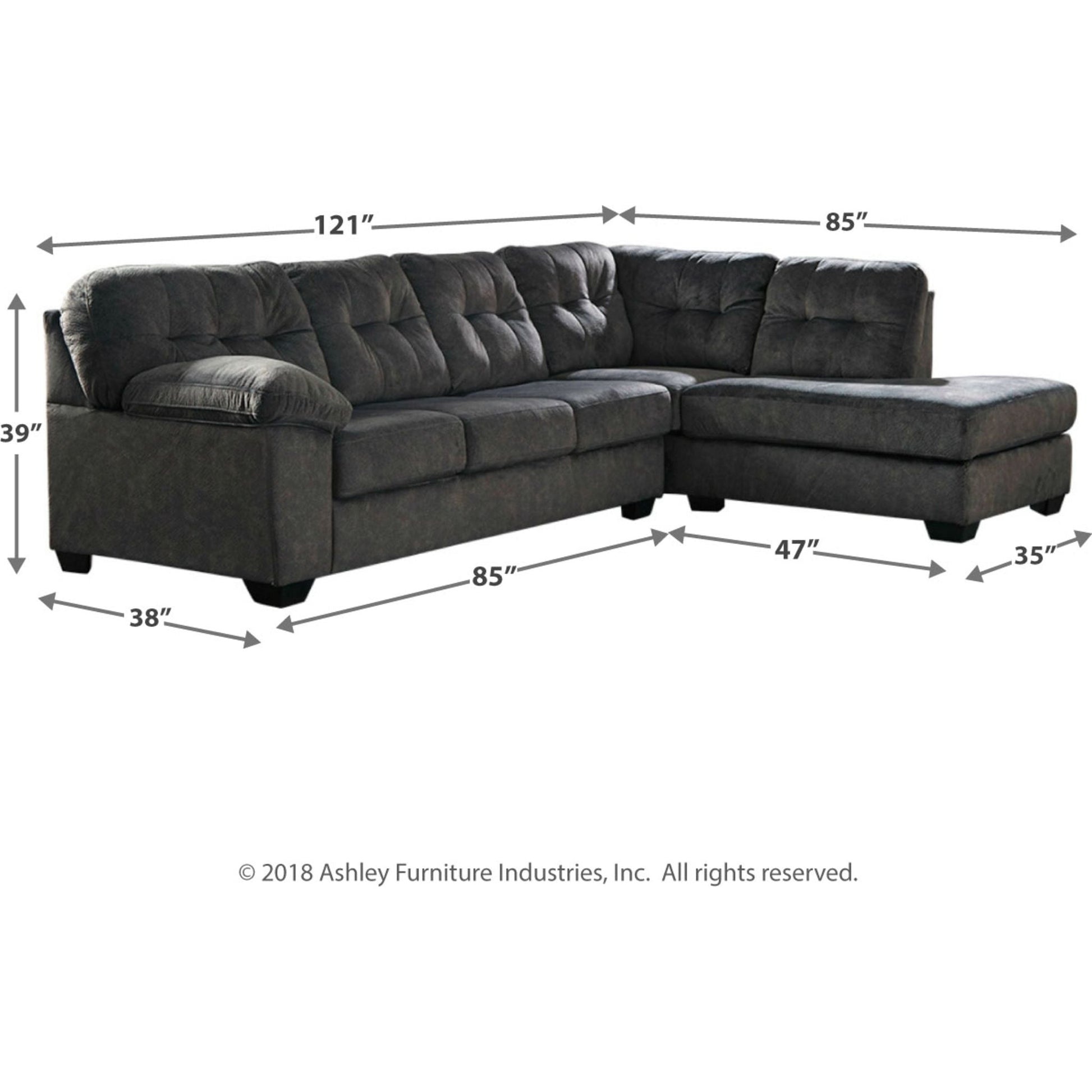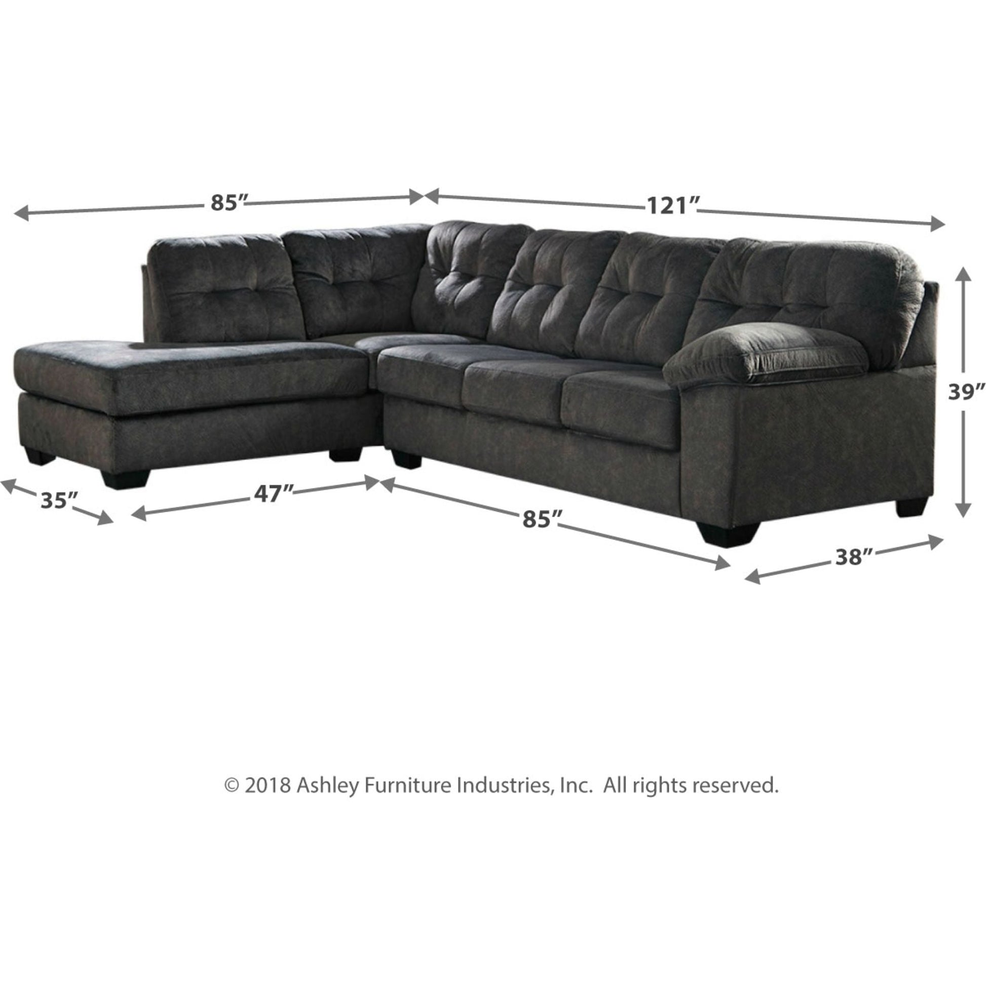 Looking for the perfect blend of decadent comfort and contemporary flair? Feast your eyes on this sensational sectional. Tufted box cushioning and thick pillow top armrests brilliantly merge style and a sumptuous feel. Wonderfully plush to the touch, the sectional’s granite gray fabric is the ultimate choice for a chic, trendy look.