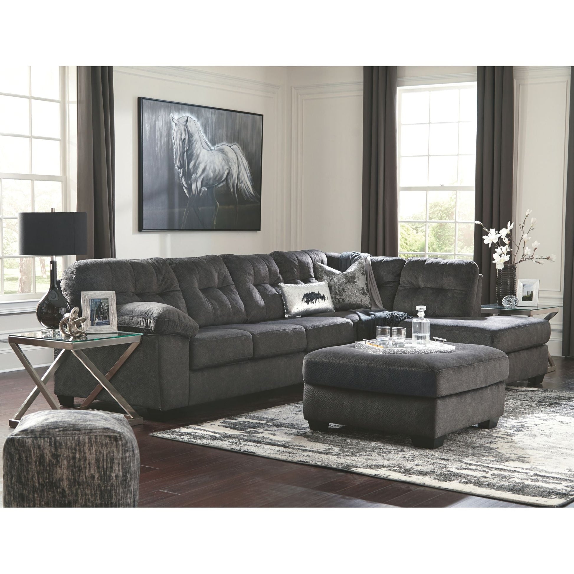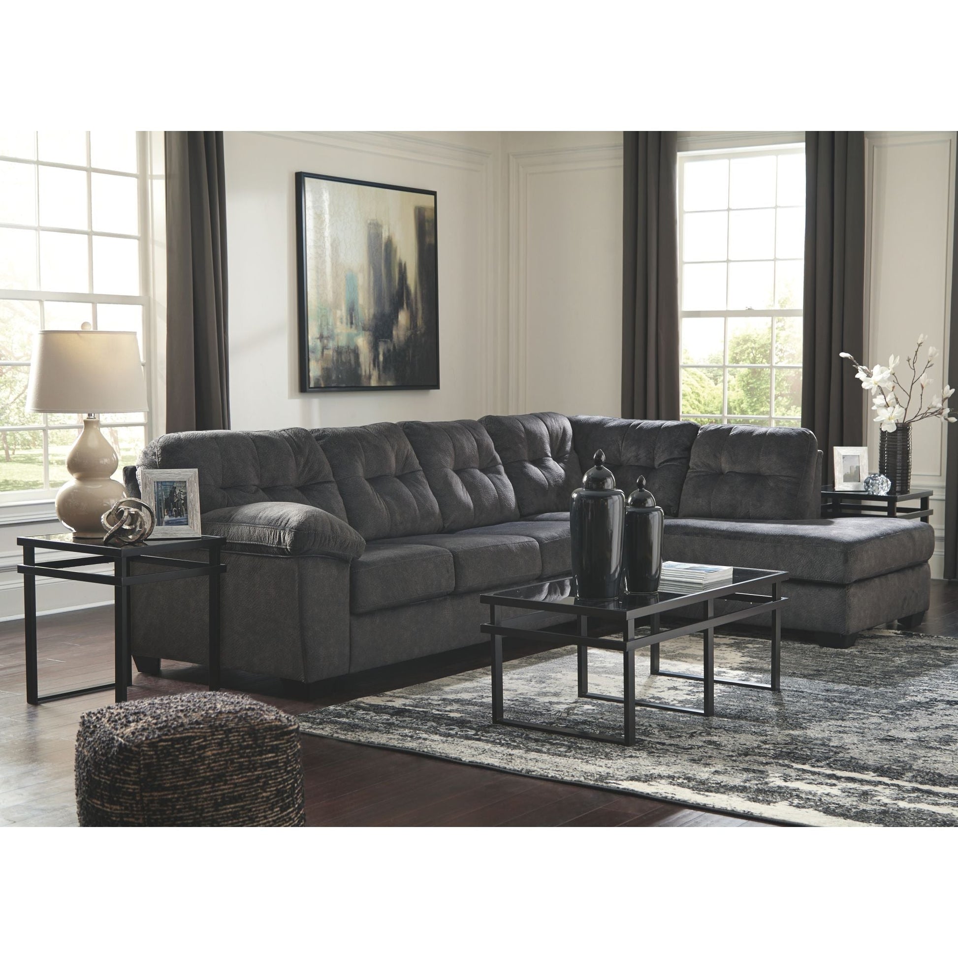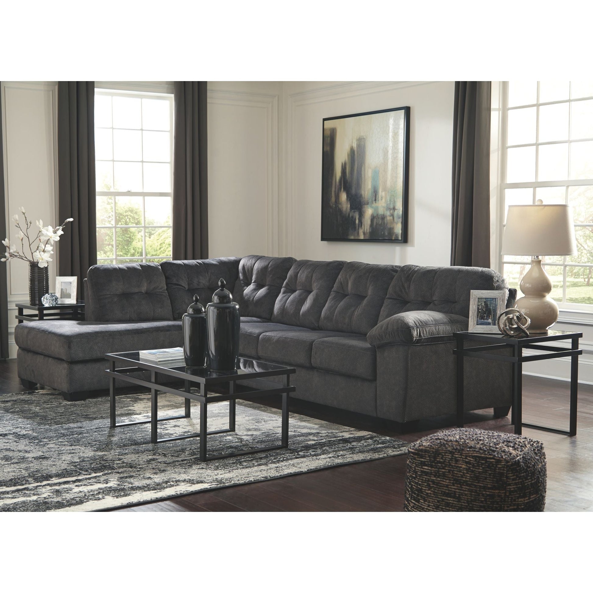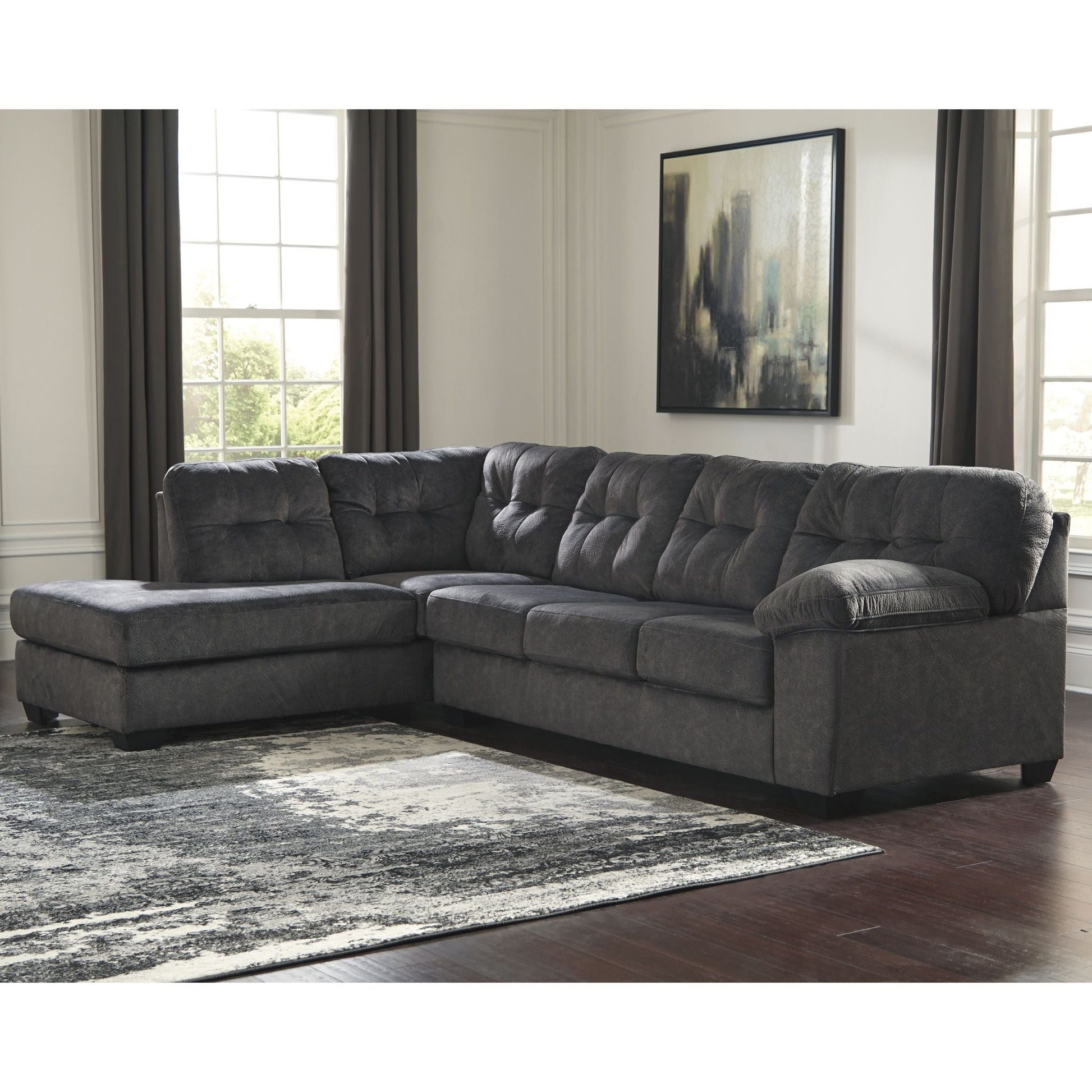 Looking for the perfect blend of decadent comfort and contemporary flair? Feast your eyes on this sensational sectional. Tufted box cushioning and thick pillow top armrests brilliantly merge style and a sumptuous feel. Wonderfully plush to the touch, the sectional’s granite gray fabric is the ultimate choice for a chic, trendy look.