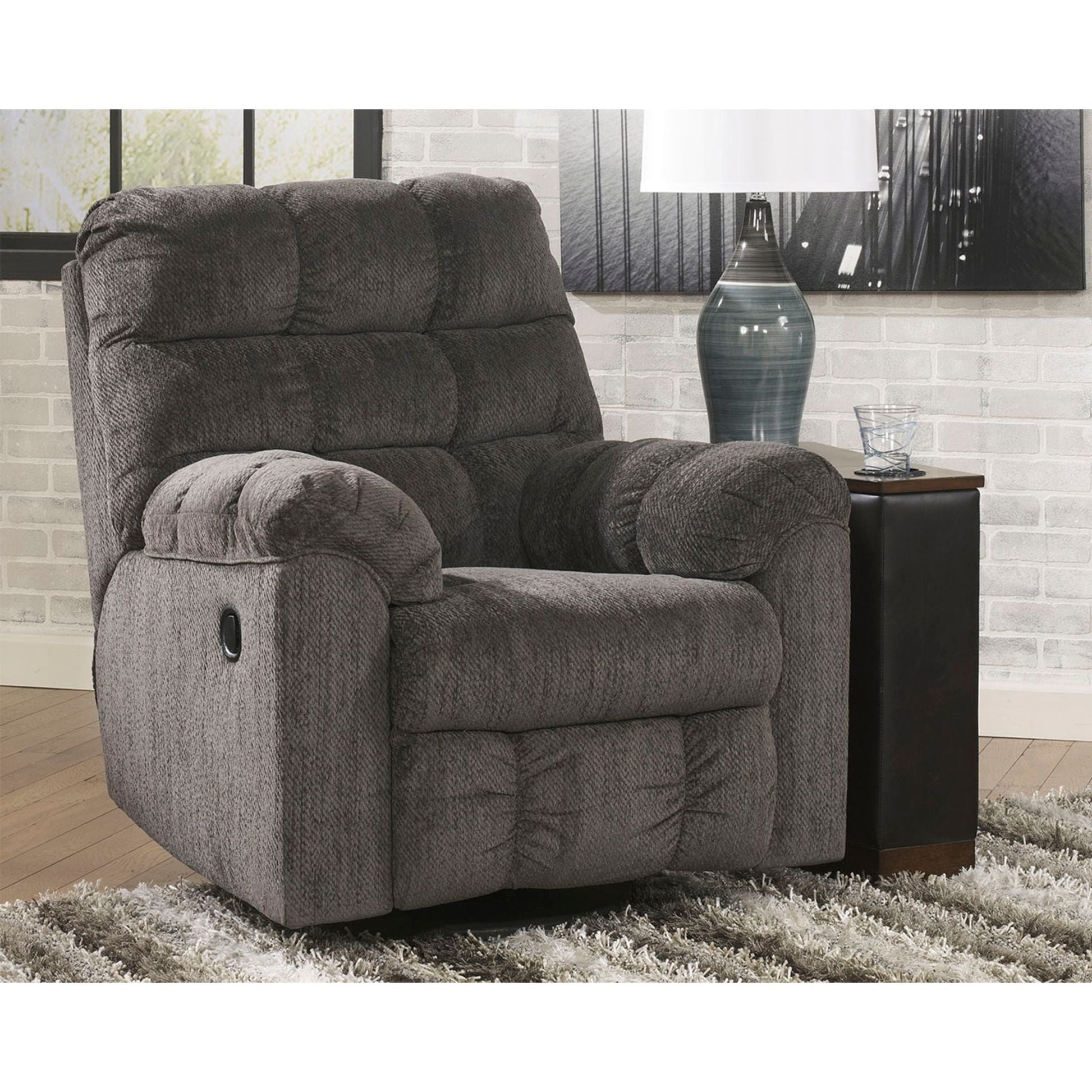 If its quilted bustle back weren’t enough, this swivel rocker recliner has overstuffed arms that elevate comfort to new heights. Ultra-soft chenille upholstery makes this piece beyond luxurious.
