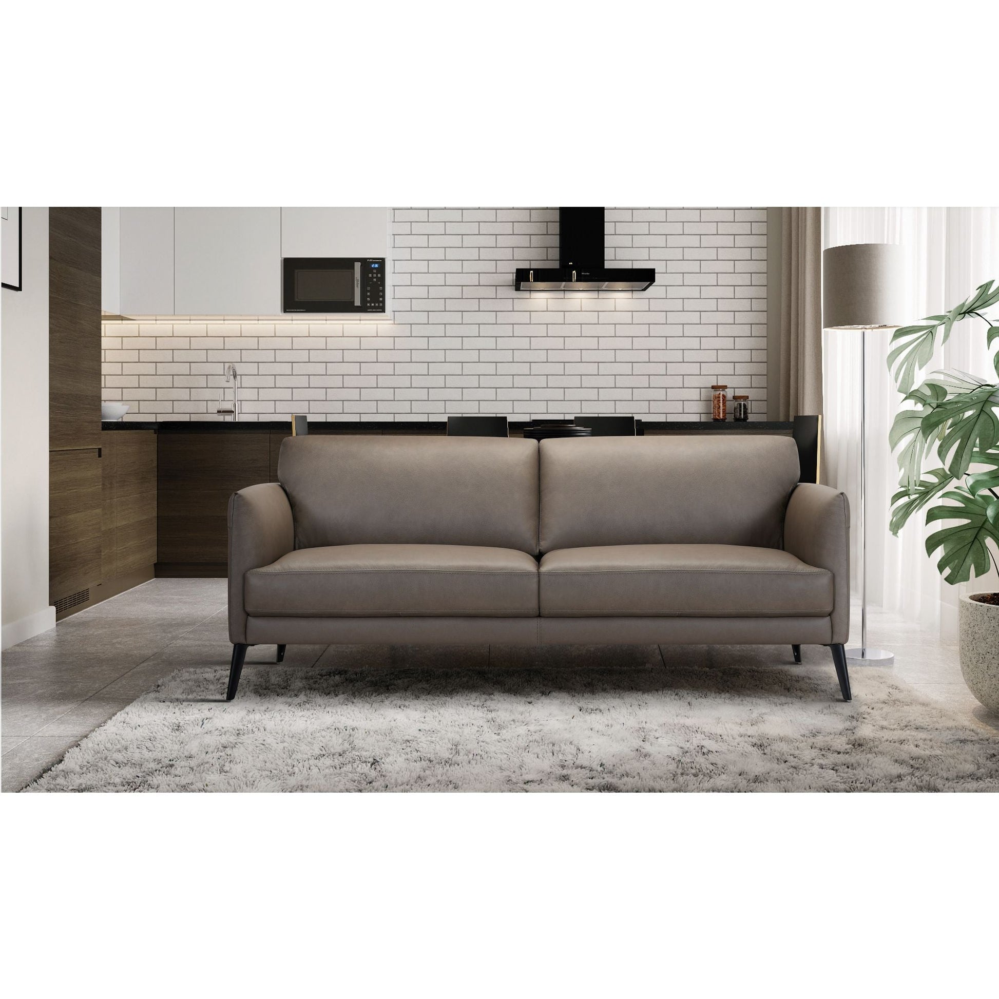 Stationary, 3 seat modern leather sofa