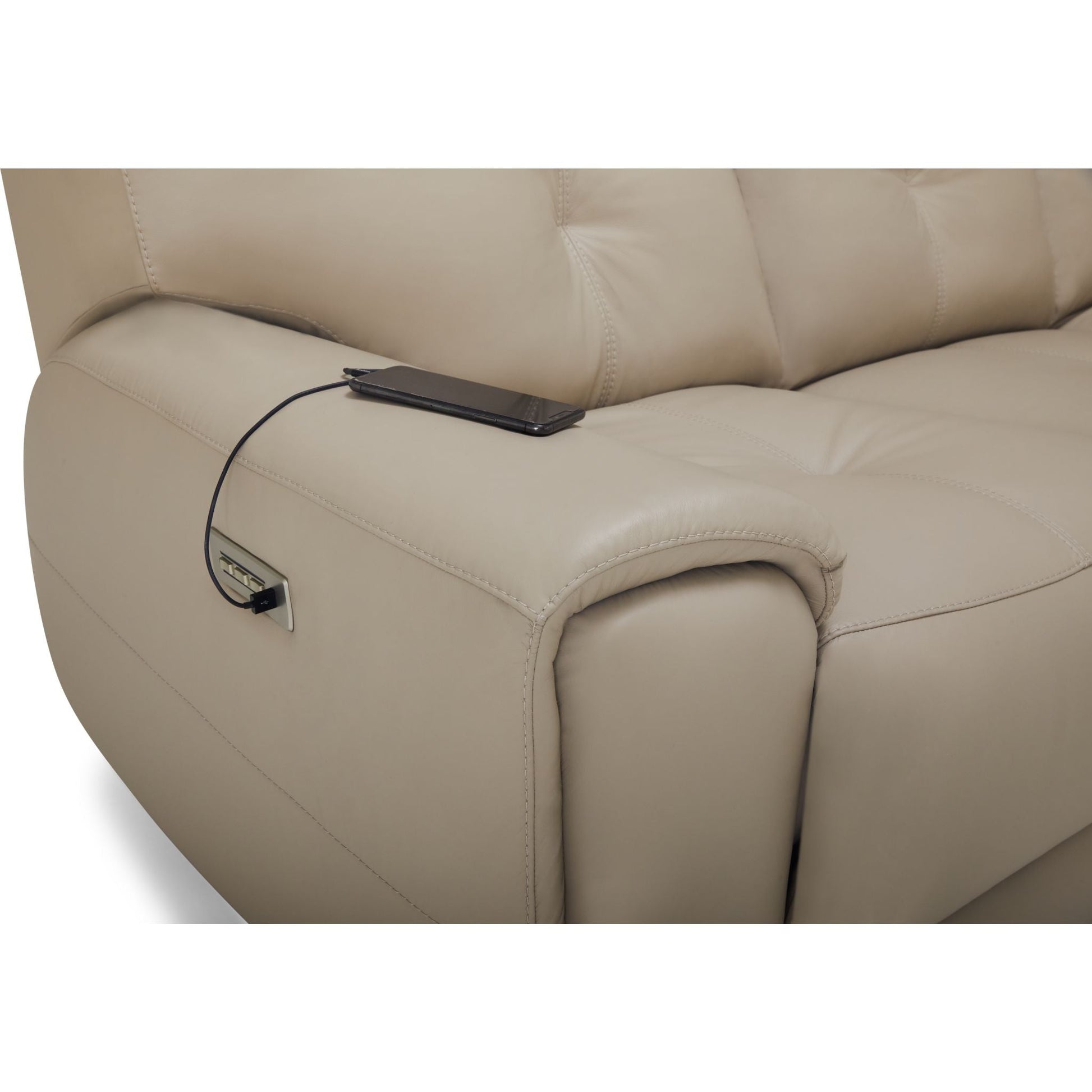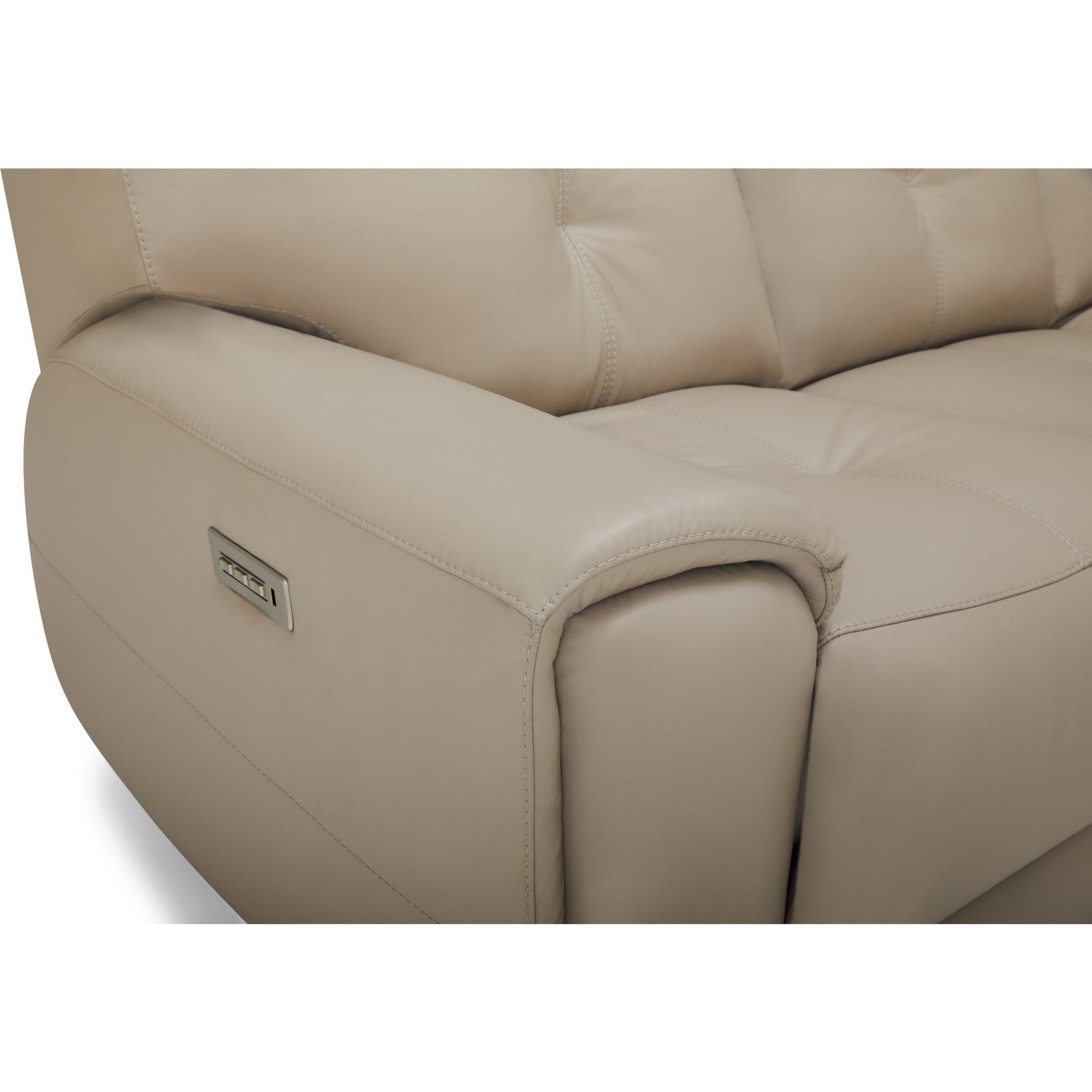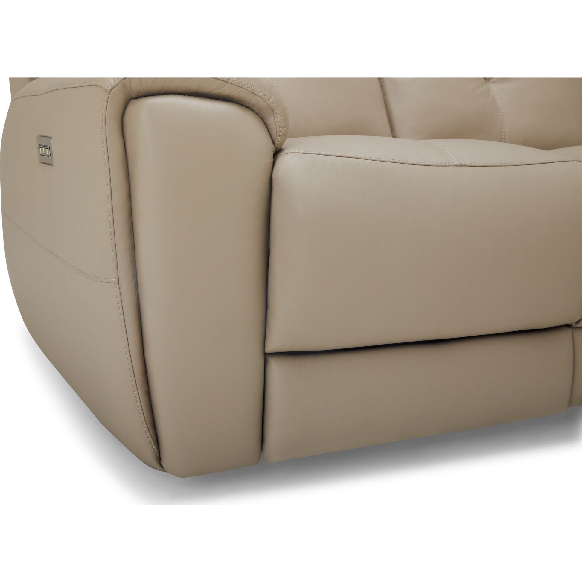 The solid, sumptuous profile of the Aedon creates a seat you can't wait to sink into. High-density foam seating and blown-fibre backs accented by a double topstitch pull creates visual drama and an inviting embrace, framed by a stylized pad-over arm. Superior comfort is further enhanced by the clean, seamless motion and infinite positioning of power headrest, recline, and lumbar. Wall- hugger technology provides a full recline with only 4' of wall clearance. Movements are activated by a convenient brushed-metal switch that includes integrated USB charging. The console loveseat provides a wealth of extras. This includes deep storage, cupholders, more USB charging, an add on such as a grommet can support additional optional add- ons such as tablet stands, tables, and LED flex lights. This signature transitional look gives the ease and comfort of motion, with clean styling that will suit the décor of any home.
