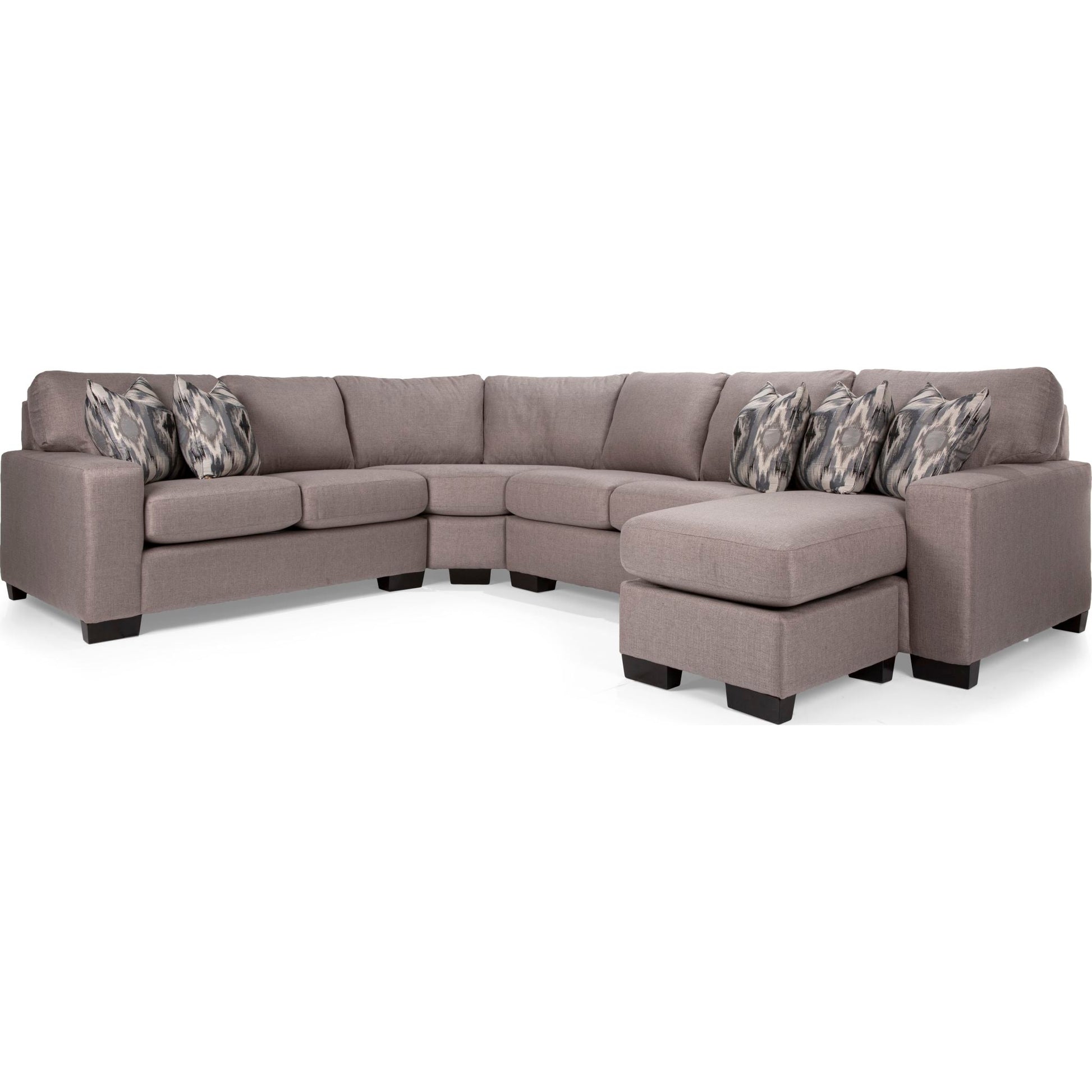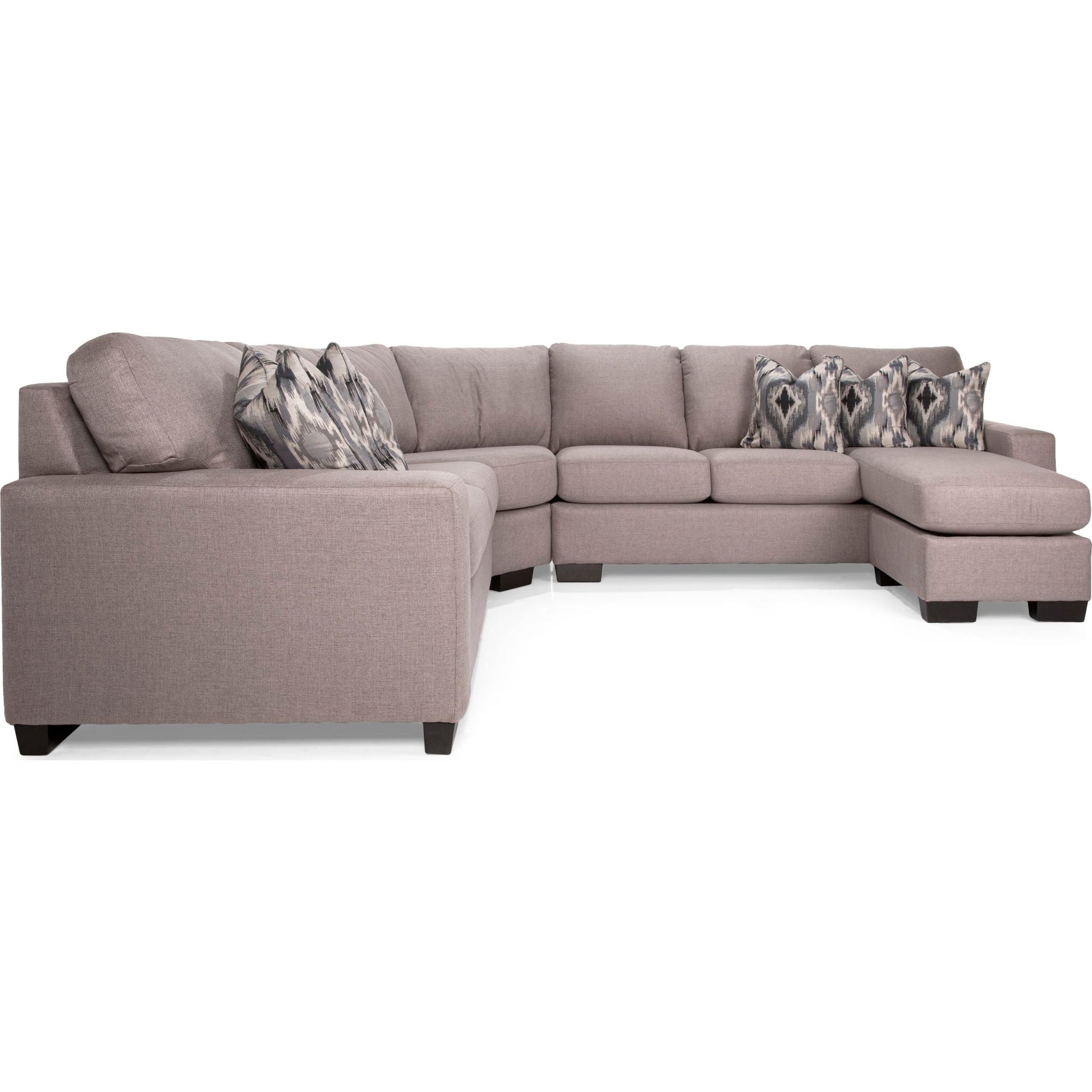 The Alessandra Sectional is customizable to fit the style of your living room. The Alessandra Sectional has a classic look to enhance the existing decor of your living room or family room. The back cushions are semi-attached, while the seat has box cushions that contain 1.9-lb high-resilience foam. The track arms let you rest your arm comfortably. The Alessandra sectional features a sturdy, sinuous spring construction to provide optimal support. You can customize its upholstery with several fabric and leather options to harmonize its design with the other decor elements in the room. There are also various leg options from which to choose. The quality waterfowl feather filling makes the 20 x 20 throw cushions comfortable and easy to fluff up. Encased in a long-lasting 100 percent cotton twill and embellished with a self-welt, they're highly durable. Their fabric cover features a practical zipper. This way, you can remove and clean the covers easily. The Alessandra My Custom sectional has many customization options available Seat and back cushions feature 1.9-lb dense foam for long-lasting comfort Semi-attached cushions on the back, box cushions on the seat. The throw cushions have 100 percent cotton twill casing. Made in Canada