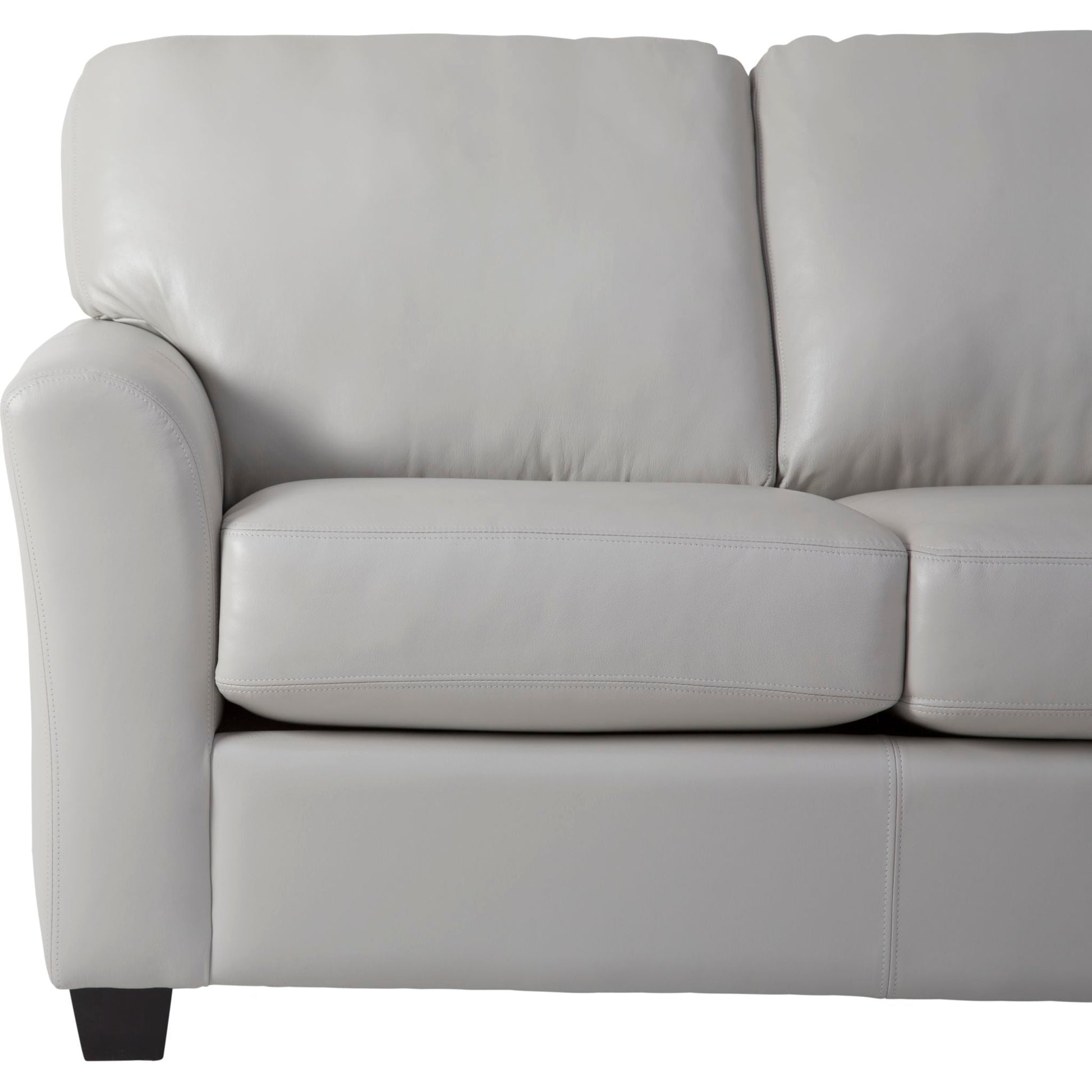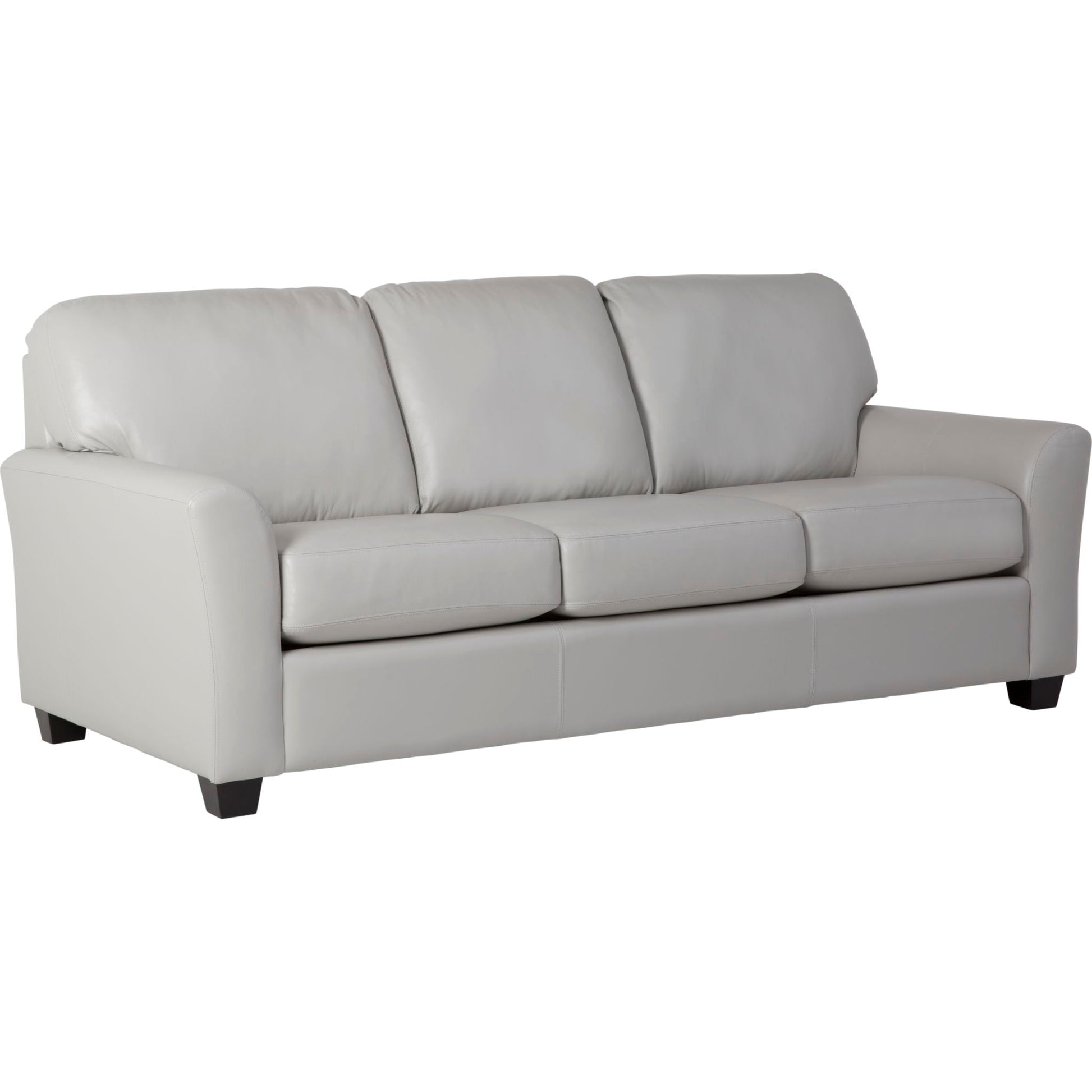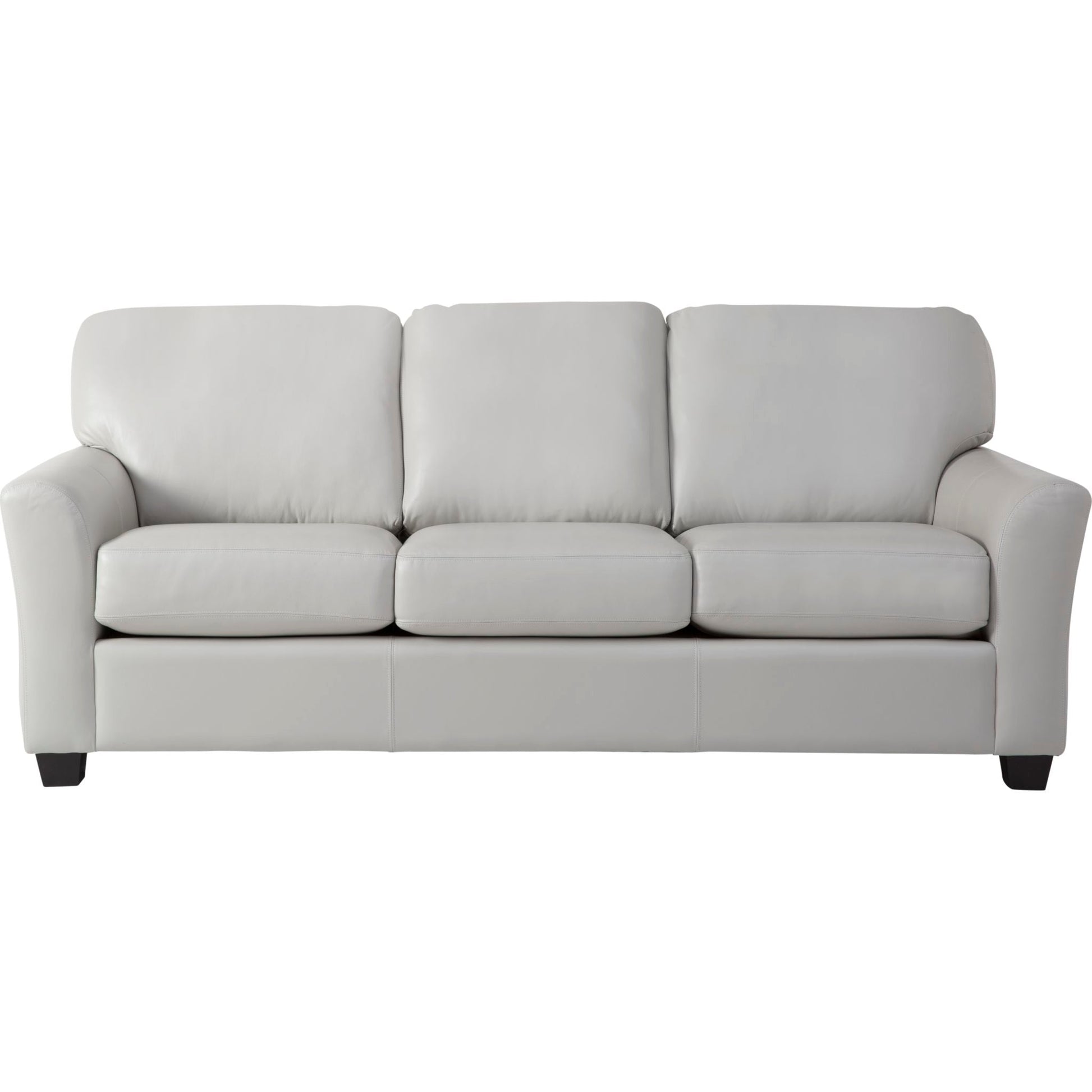 Anchor your space with the Alessandra Sofa and Make it the centrepiece of your decor. Featuring a simple silhouette with clean lines, this sofa comes in a beautiful neutral hue. The textured upholstery adds to its elegant appeal. The neutral colour and the stylish flair of this Alessandra sofa makes it a perfect addition to many settings. Espresso-finished legs with intricate details provide a decorative touch to this sofa. A plush rug with modern motifs and elegant accessories such as a minimalist floor lamp enhances the casual look of this leather sofa. The Alessandra My Custom sofa in sand has 1.9-lb. highly resilient foam that provides a firm yet comfortable seating experience. The high-density foam keeps the cushions from sagging, while a sinuous coil spring frame makes the custom sofa robust. Hardwood construction will keep this sofa in top condition for several years to come. Strong double-dowelled wood joints make this sofa durable. It's possible to customize this piece of furniture as per your own taste. Select models give you the option to personalize the feet in various shades. The Alessandra sofa features a stylish design . High-density foam provides comfortable seating . Neutral hue makes it well-suited for many decor styles. Made in Canada