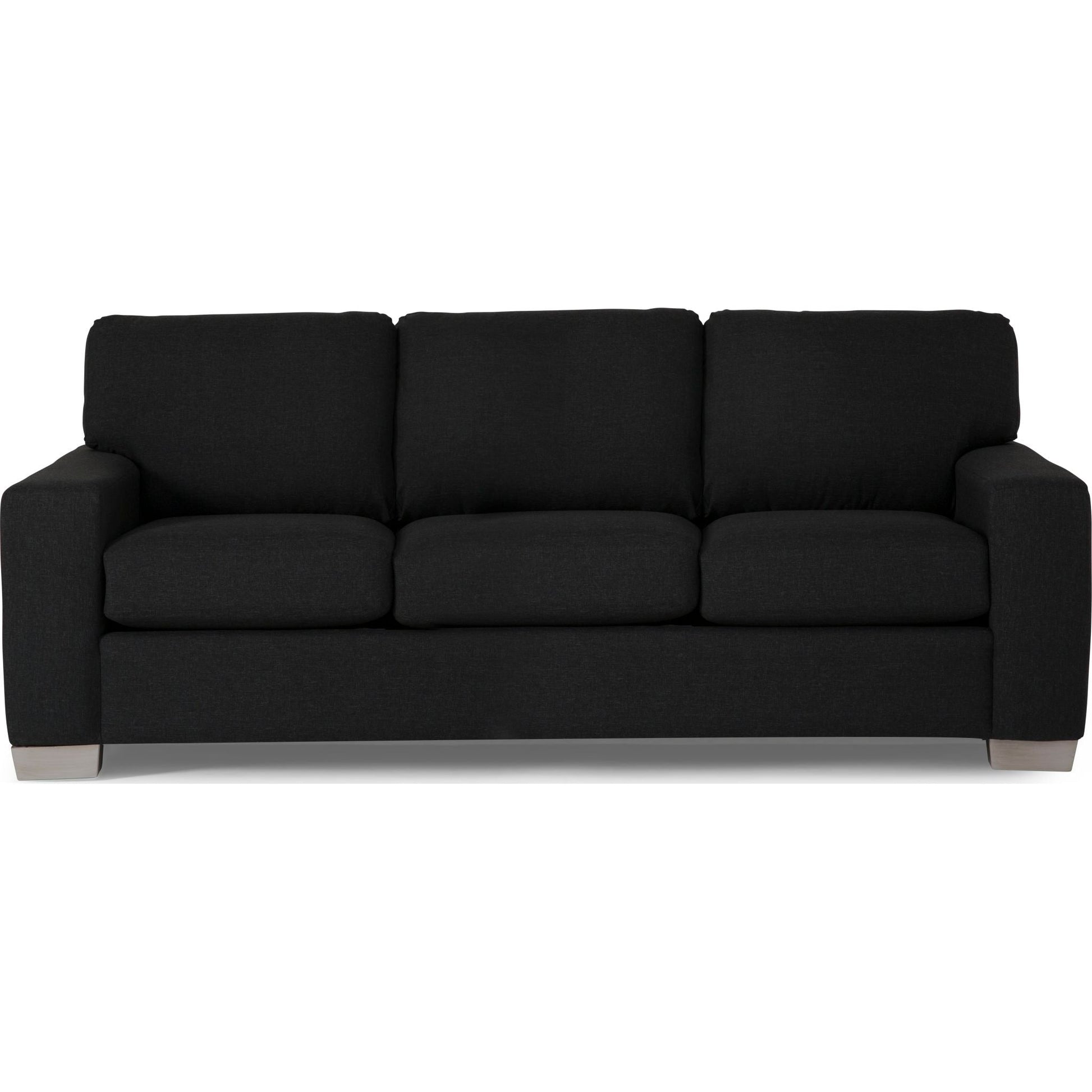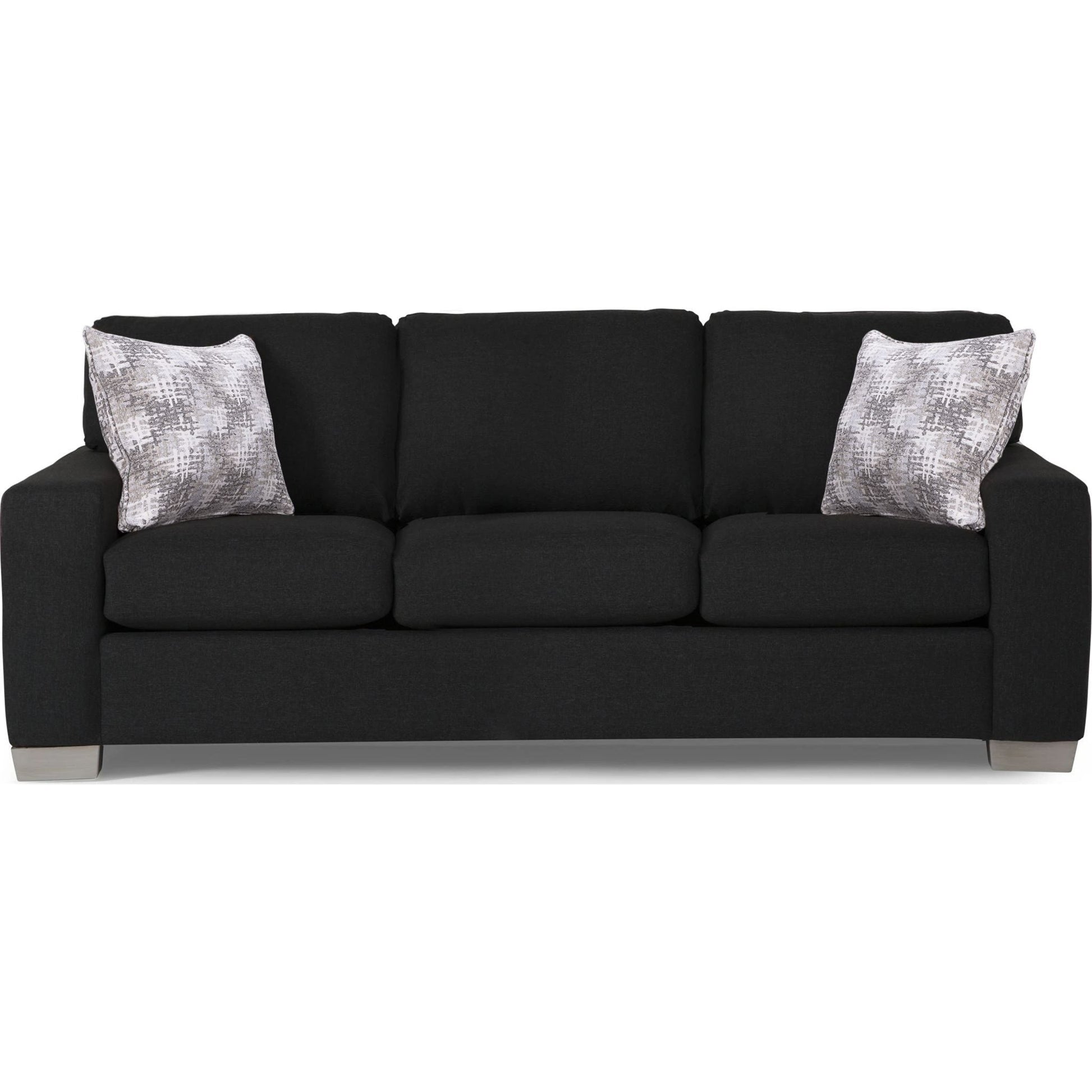 The Alessandra Sofa is customizable to fit the style of your living room. It has a classic, evergreen look to enhance the existing decor of your living room or family room. The back cushions are semi-attached, while the seat has box cushions that contain 1.9-lb high-resilience foam. The track arms let you rest your arm comfortably. The Alessandra sofa features a sturdy, sinuous spring construction to provide optimal support. You can customize its upholstery with several fabric and leather options to harmonize its design with the other decor elements in the room. There are also various leg options from which to choose. The quality waterfowl feather filling makes the 20 x 20 throw cushions comfortable and easy to fluff up. Encased in a long-lasting 100 percent cotton twill and embellished with a self-welt, they're highly durable. Their fabric cover features a practical zipper. This way, you can remove and clean the covers easily. The Alessandra sofa has many customization options available seat and back cushions feature 1.9-lb dense foam for long-lasting comfort Semi-attached cushions on the back, box cushions on the seat. The throw cushions have 100 percent cotton twill casing. Made in Canada