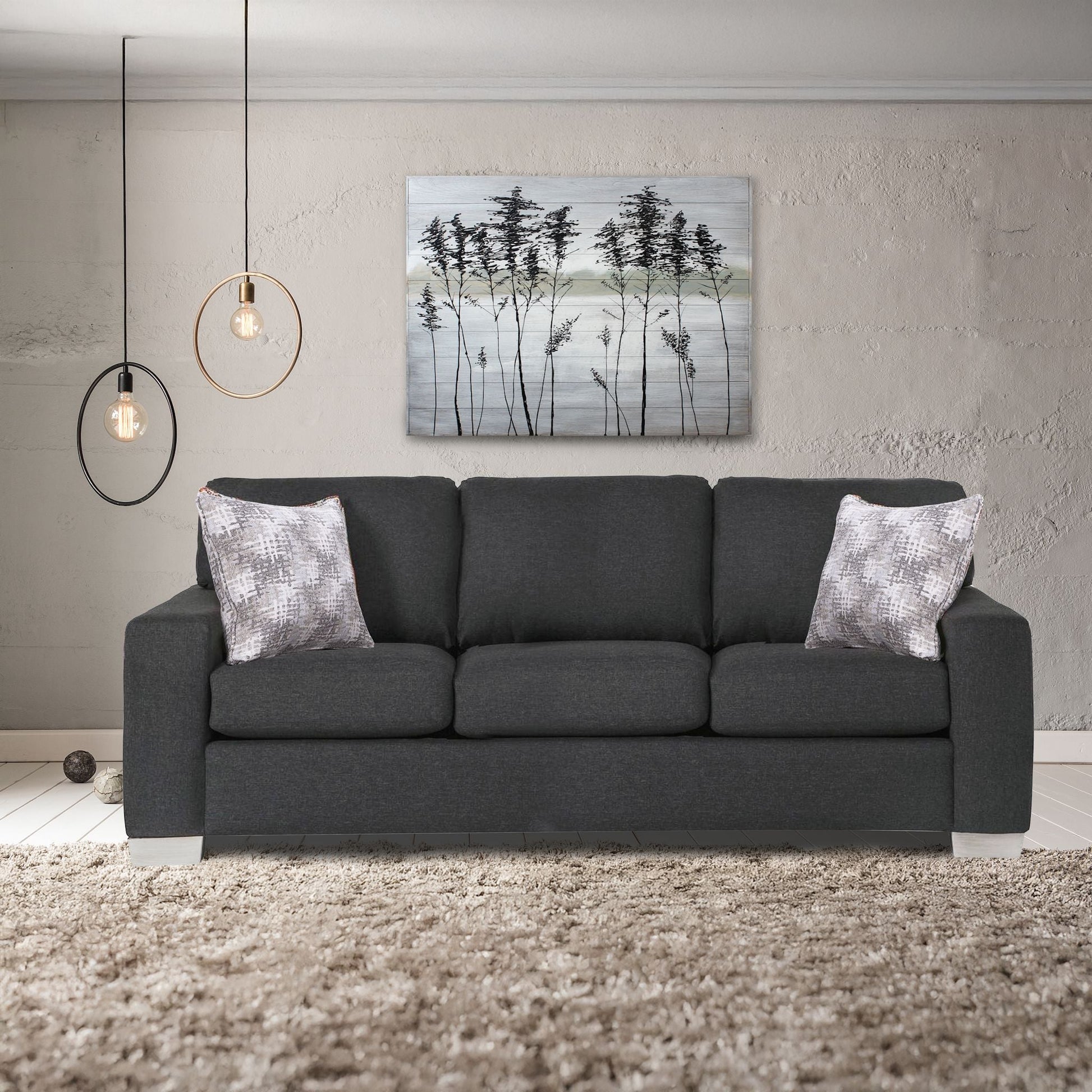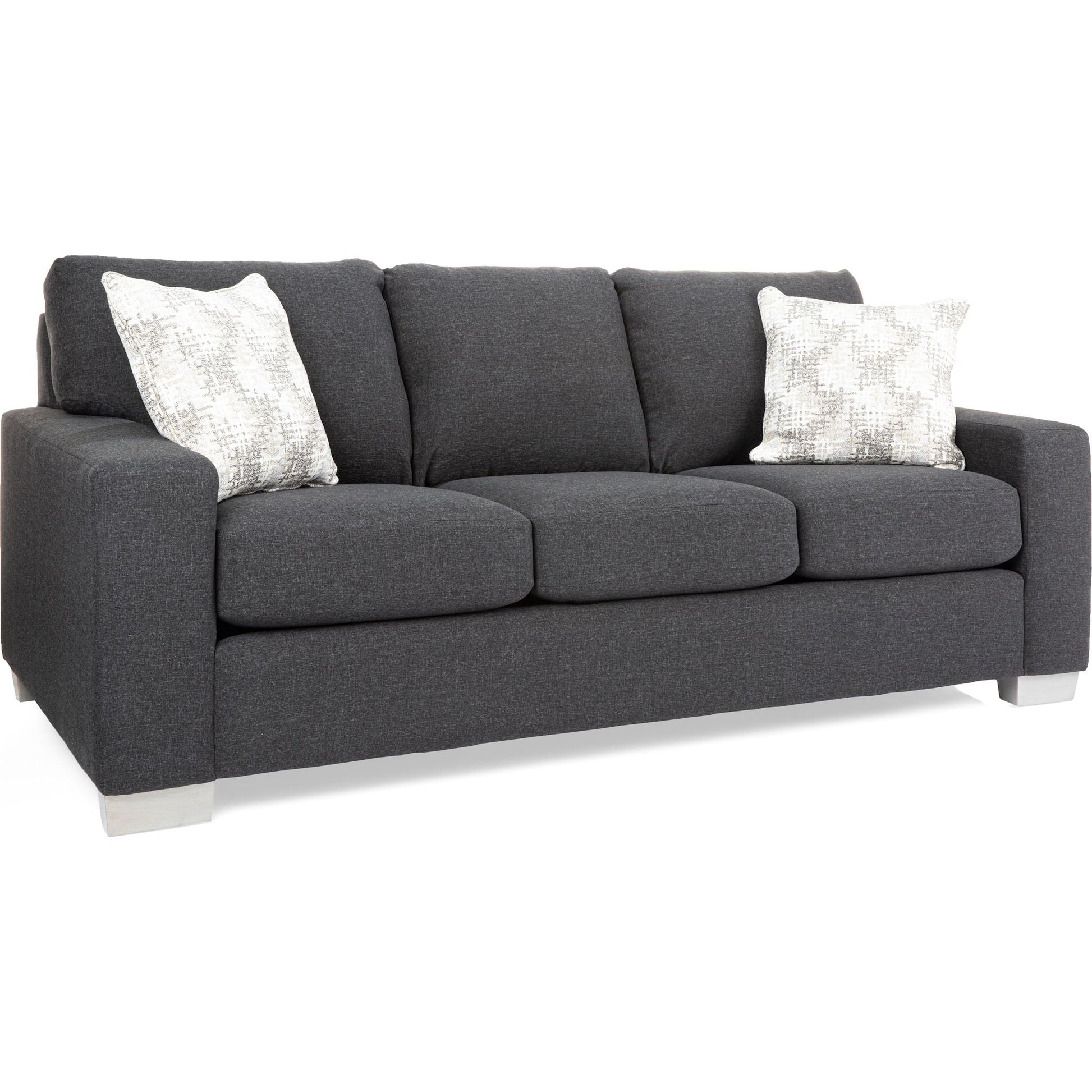 The Alessandra Sofa is customizable to fit the style of your living room. It has a classic, evergreen look to enhance the existing decor of your living room or family room. The back cushions are semi-attached, while the seat has box cushions that contain 1.9-lb high-resilience foam. The track arms let you rest your arm comfortably. The Alessandra sofa features a sturdy, sinuous spring construction to provide optimal support. You can customize its upholstery with several fabric and leather options to harmonize its design with the other decor elements in the room. There are also various leg options from which to choose. The quality waterfowl feather filling makes the 20 x 20 throw cushions comfortable and easy to fluff up. Encased in a long-lasting 100 percent cotton twill and embellished with a self-welt, they're highly durable. Their fabric cover features a practical zipper. This way, you can remove and clean the covers easily. The Alessandra sofa has many customization options available seat and back cushions feature 1.9-lb dense foam for long-lasting comfort Semi-attached cushions on the back, box cushions on the seat. The throw cushions have 100 percent cotton twill casing. Made in Canada