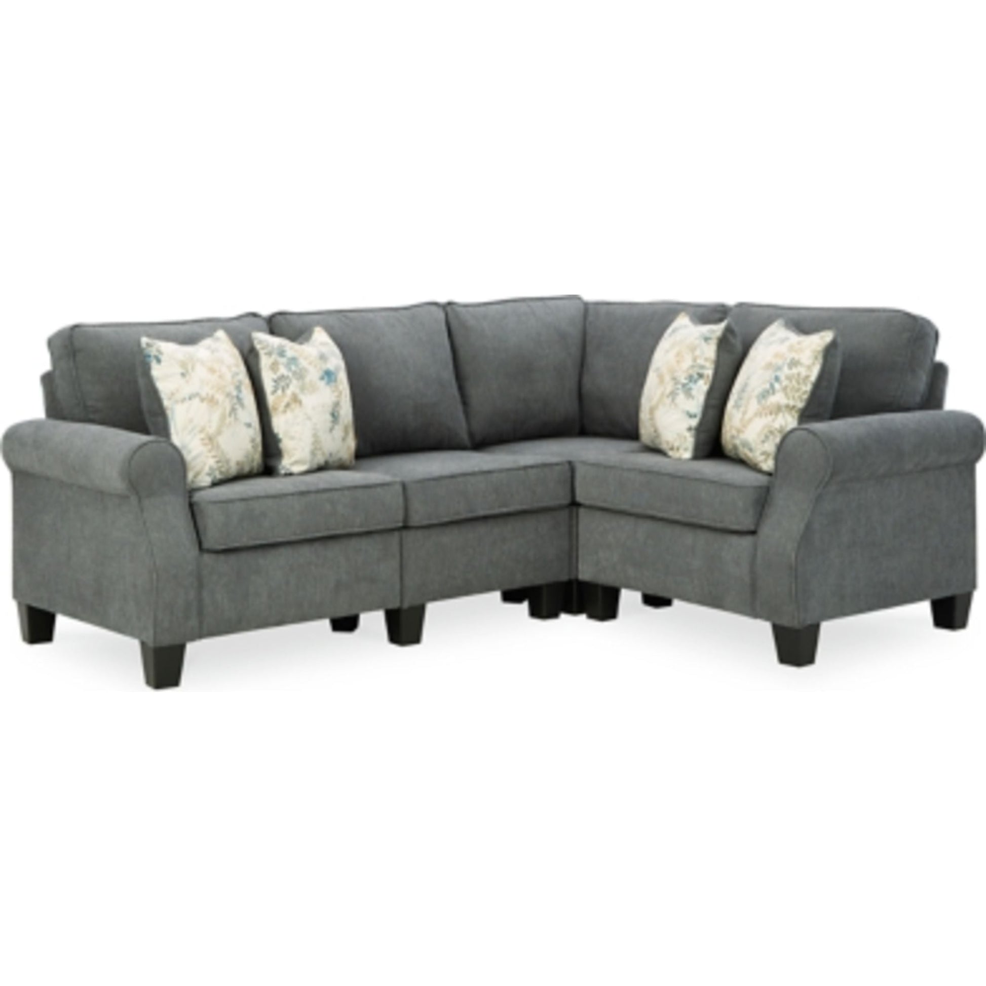 Whether your home is adorned with contemporary or American classic furnishings, this sectional has a timeless sense of elegance that's sure to fit right in. Signature elements include roll arms and cutaway side profiling for added flair. Richly neutral and soft to the touch, the charcoal gray fabric is a brilliant reflection of your good taste. Rounded cornering adds a softened, tailored aesthetic to the box cushions, making this a great transitional sectional.