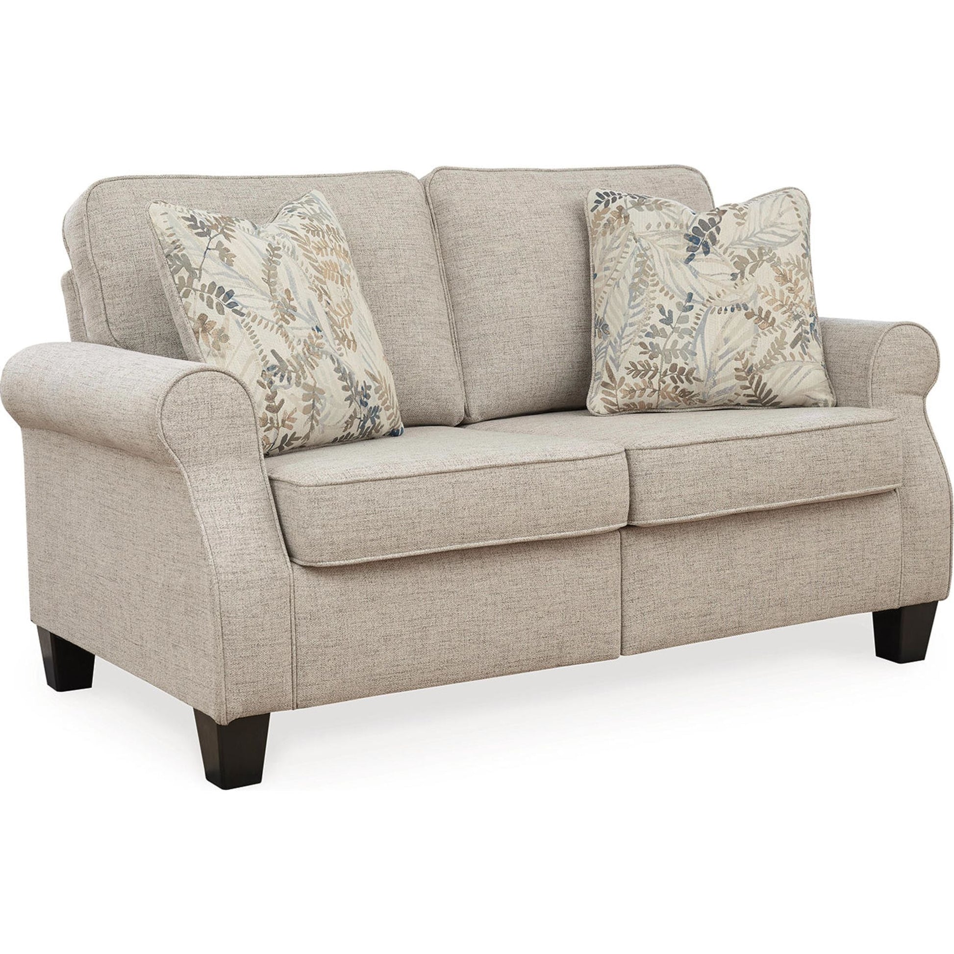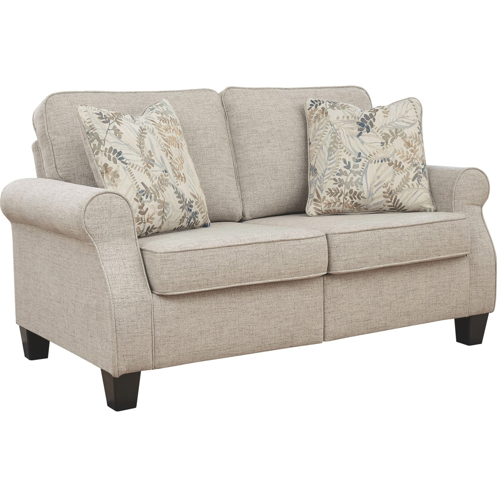 Whether your home is adorned with contemporary or American classic furnishings, this loveseat has a timeless sense of elegance that’s sure to fit right in. Signature elements include roll arms and cutaway side profiling for added flair. Ultra neutral and plush to the touch, the sesame-hued fabric is a brilliant reflection of your good taste. Rounded cornering gives the box cushions a softened, tailored aesthetic.