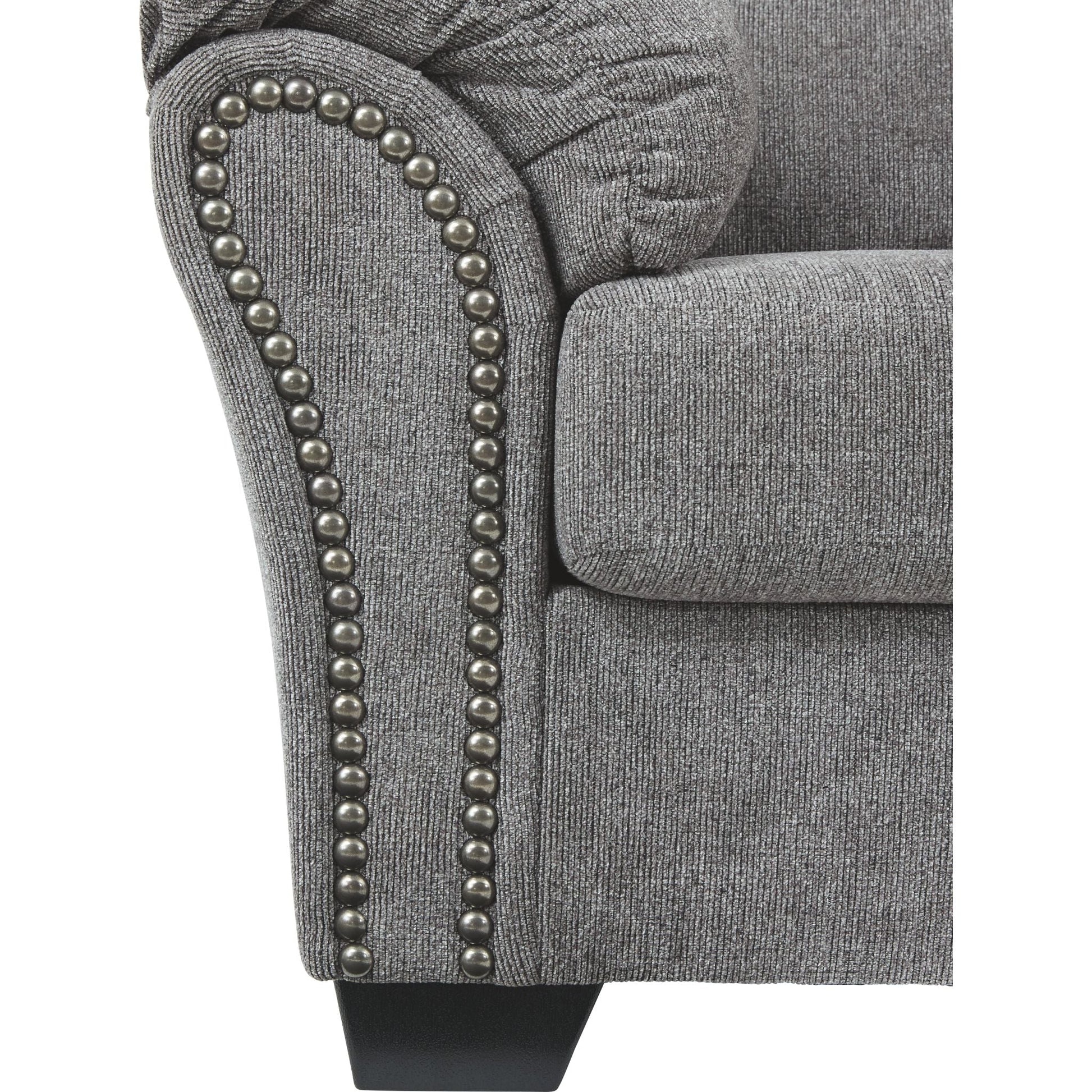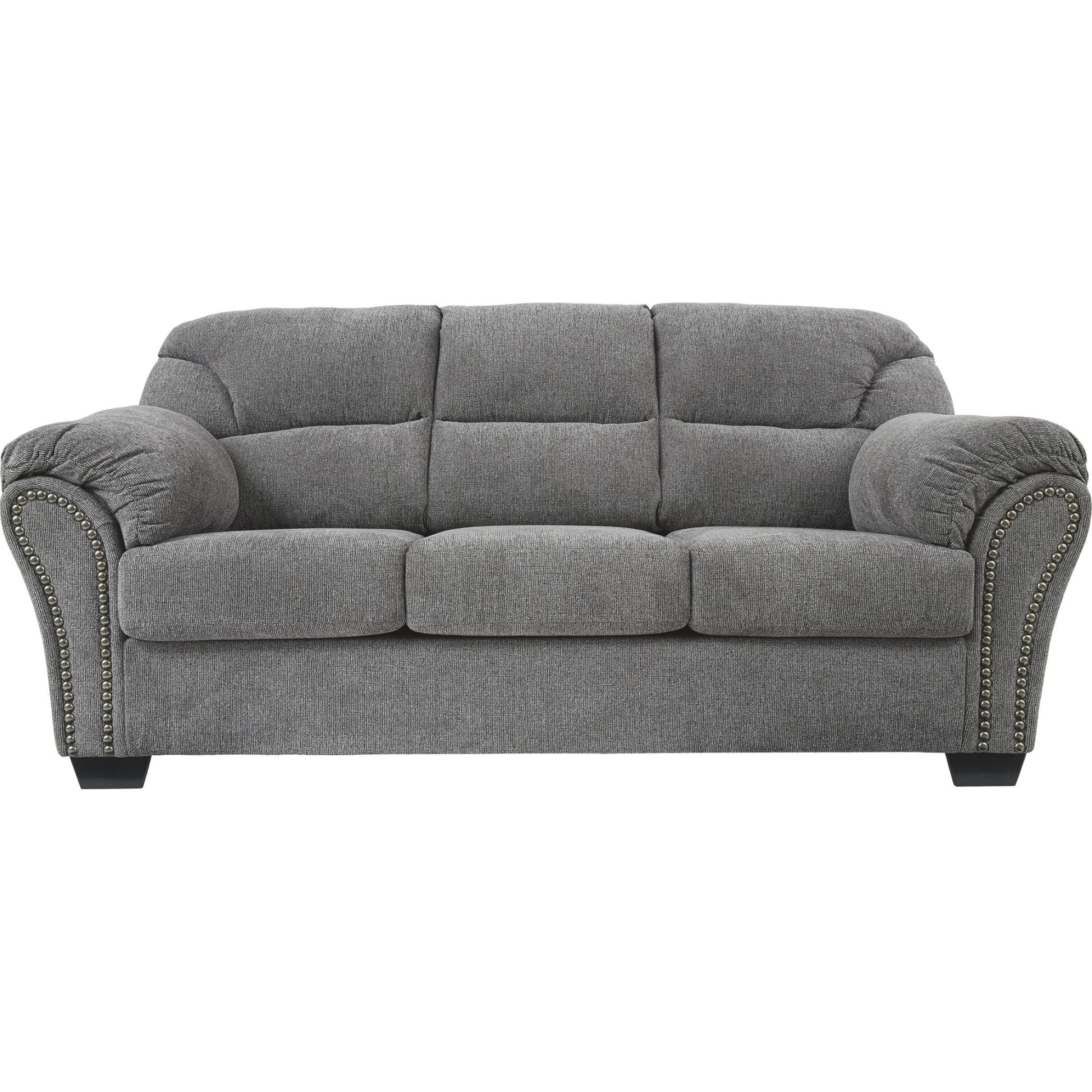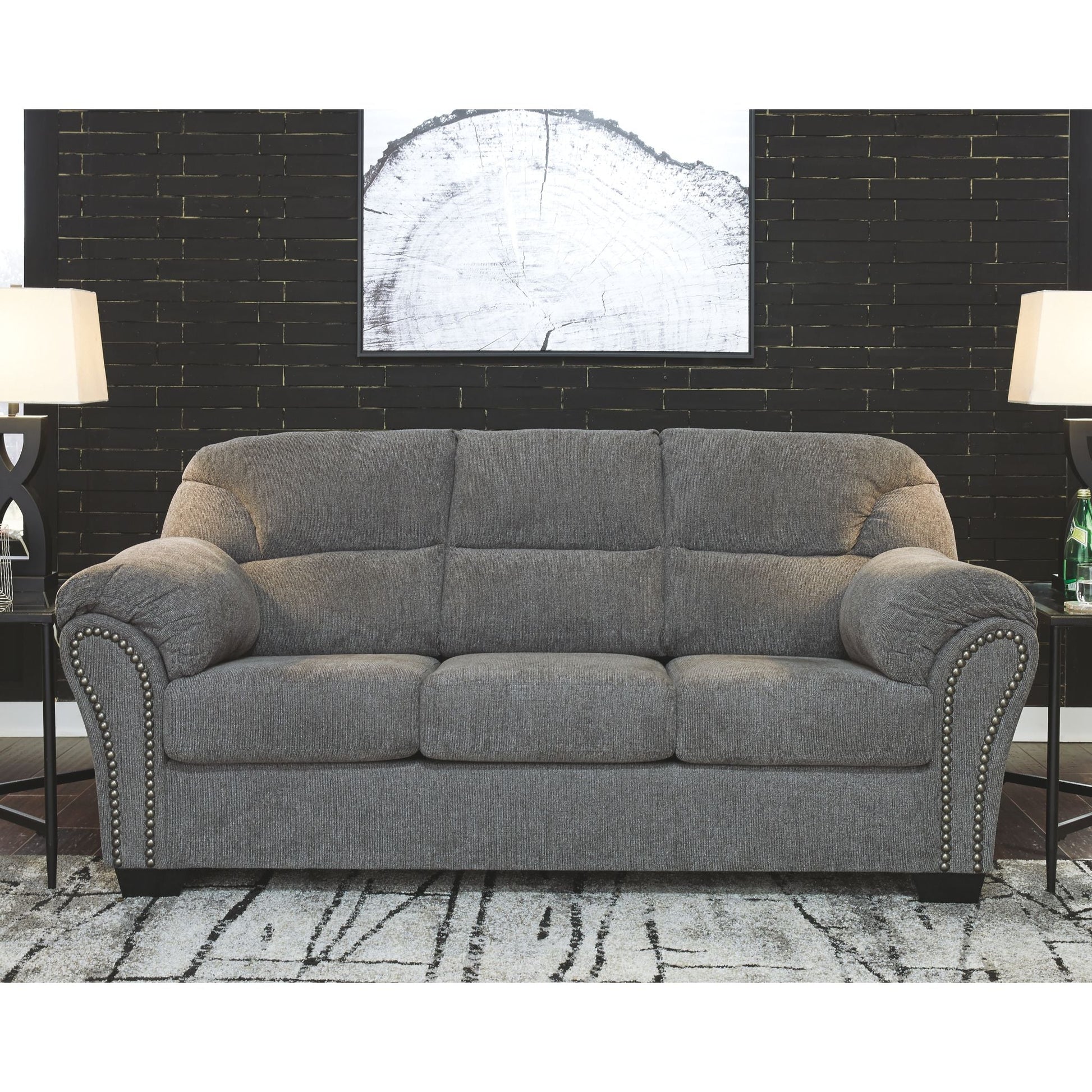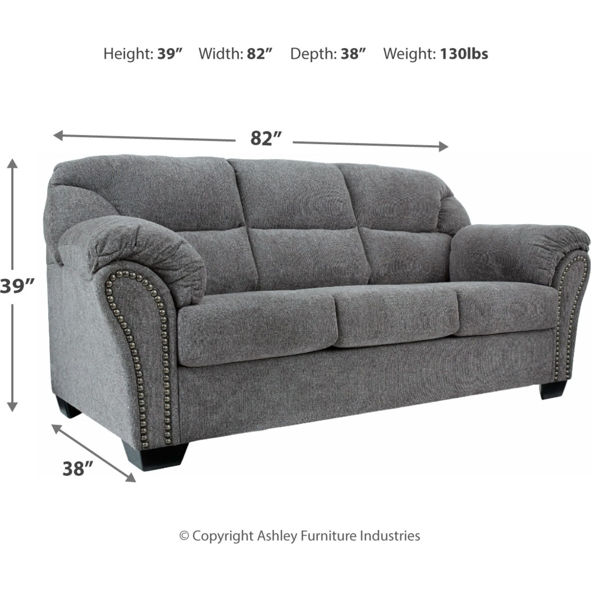Why sacrifice comfort for style (or style for comfort) when you can have the best of both in this sofa in pewter gray. Elements include a chic divided-back design and pillow top wrapped armrests that make nodding off all too easy. Calling attention to the elegantly flared armrests—black nickel-tone nailhead trim for a punch of cool character.