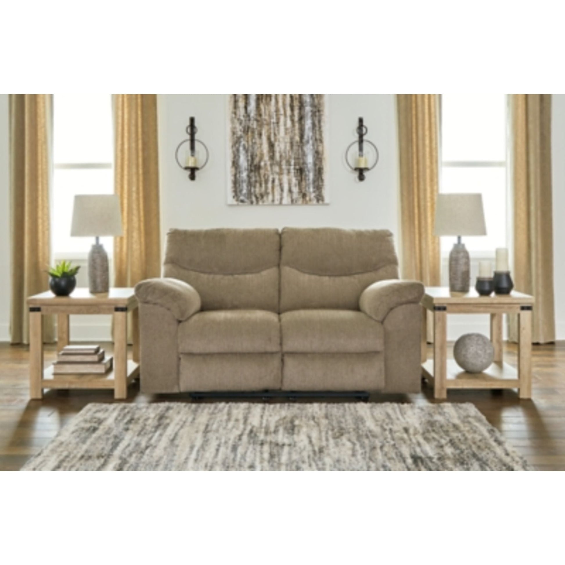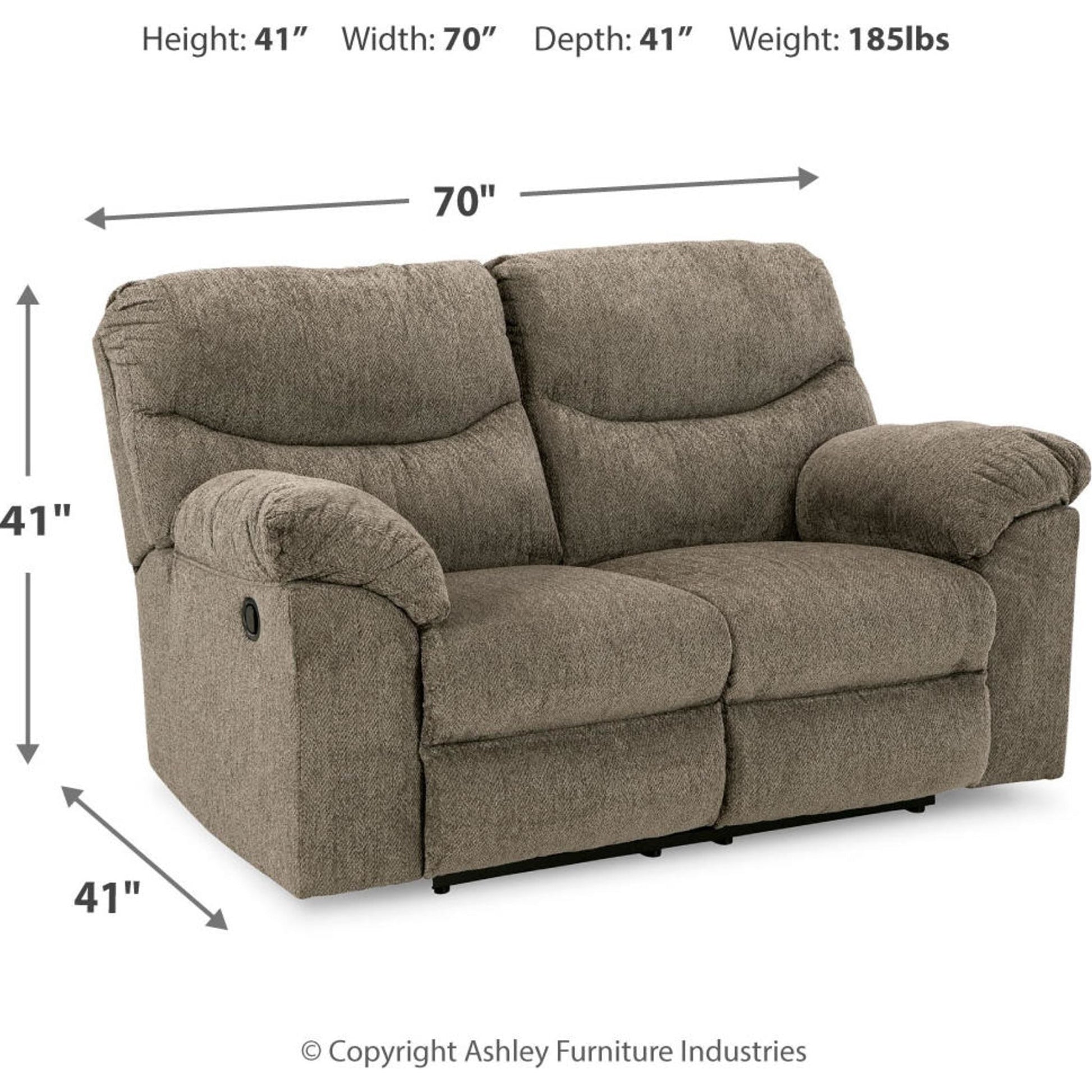 Sincere in its styling, this reclining loveseat invites a relaxed sensibility into your space. Its neutral upholstery has a universal appeal, with pull-tab reclining making it easy to kick back in comfort. Providing high-quality functionality at an affordable price, this loveseat marries well with a myriad of design aesthetics.