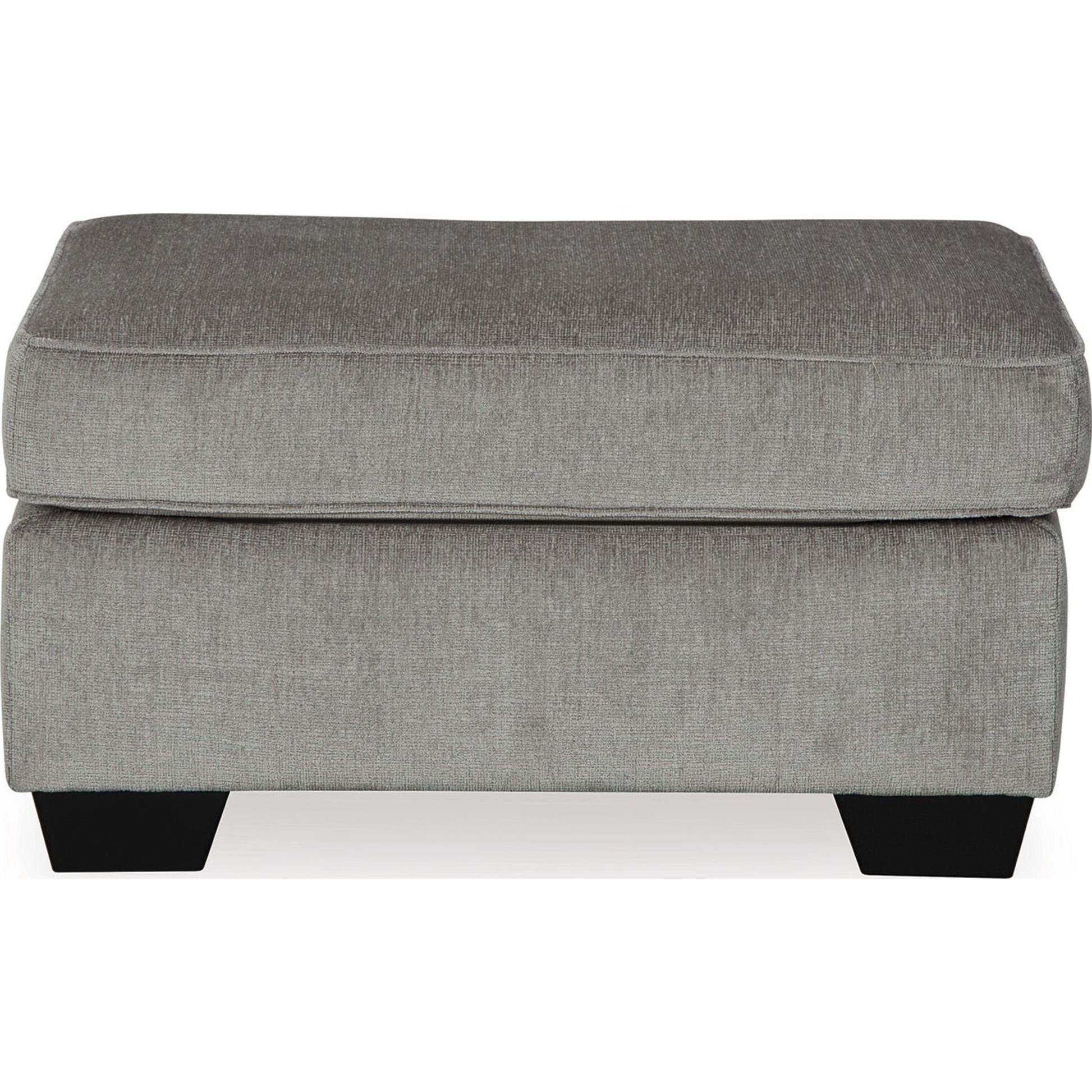 If style is the question, then this ottoman is the answer. Its decidedly contemporary profile is enhanced with plump cushioning and a chenille-feel upholstery, so pleasing to the touch. Rest assured, this ottoman in slate gray is sure to play well with so many color schemes.