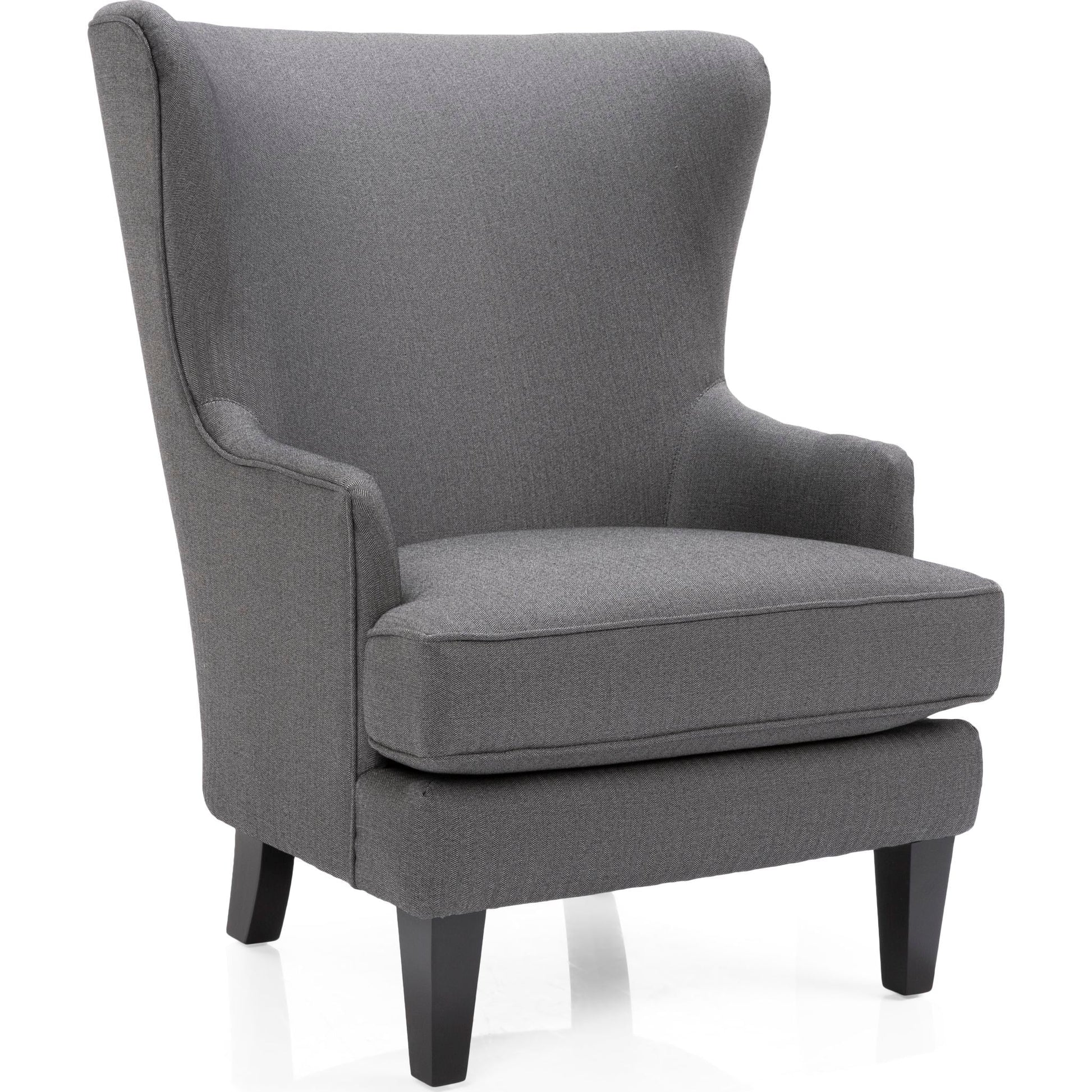 This chair is timeless and dramatic. Slight wing, slender inviting arm and exaggerated curved back. Available with 2-tone fabric selection and optional nail studs to add to this chair's dramatic flair.