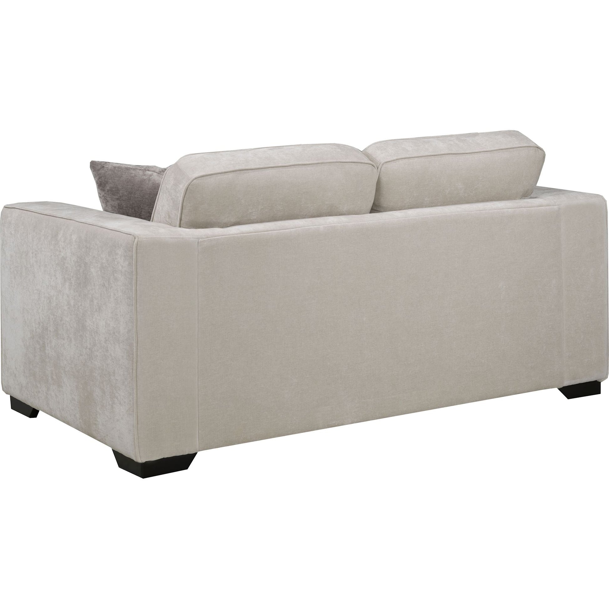 Bring both comfort and contemporary style into your home with this spacious loveseat. Featuring a clean, structured design, this piece offers ample seating with plush cushions and soft fabric upholstery. Its clean lines and subtle stitching details create a sophisticated look, while its neutral tone effortlessly blends with any décor. Ideal for entertaining or unwinding, this loveseat is a must-have for modern living spaces.