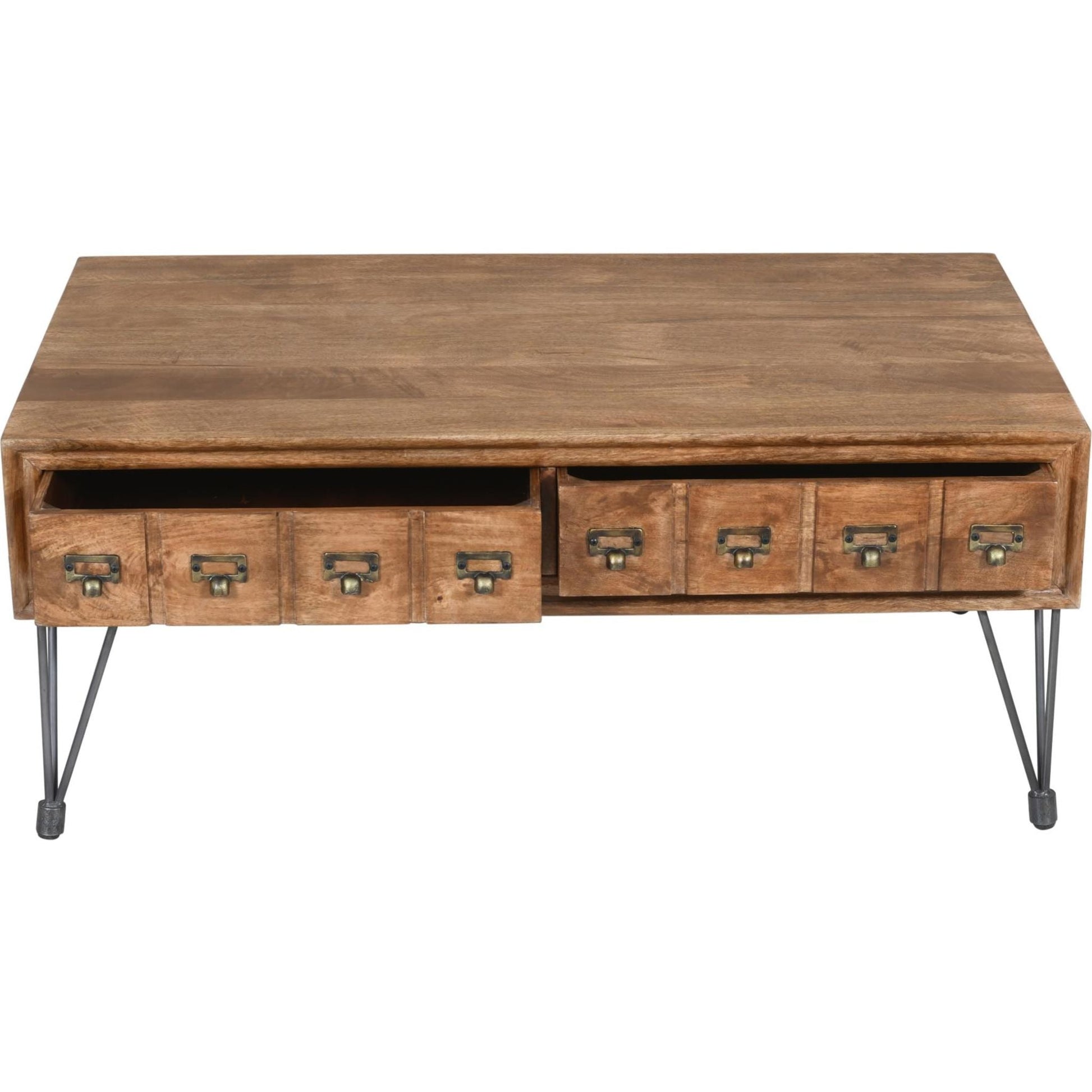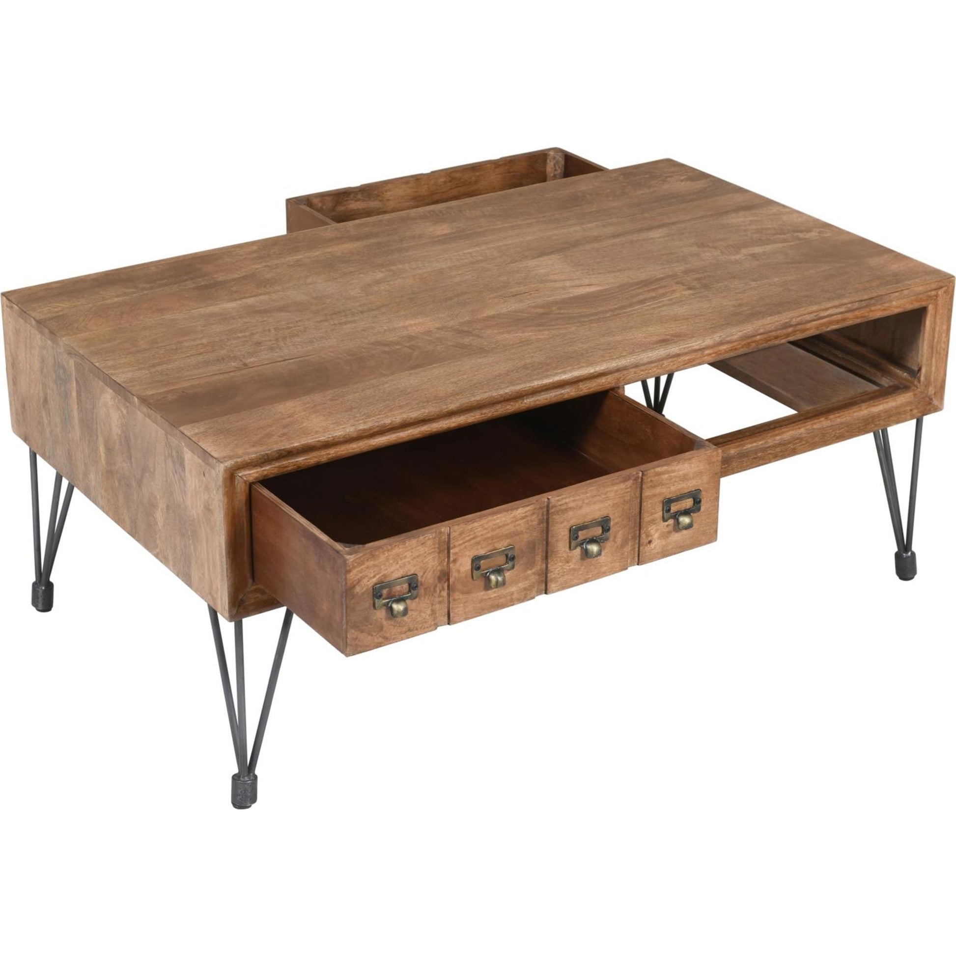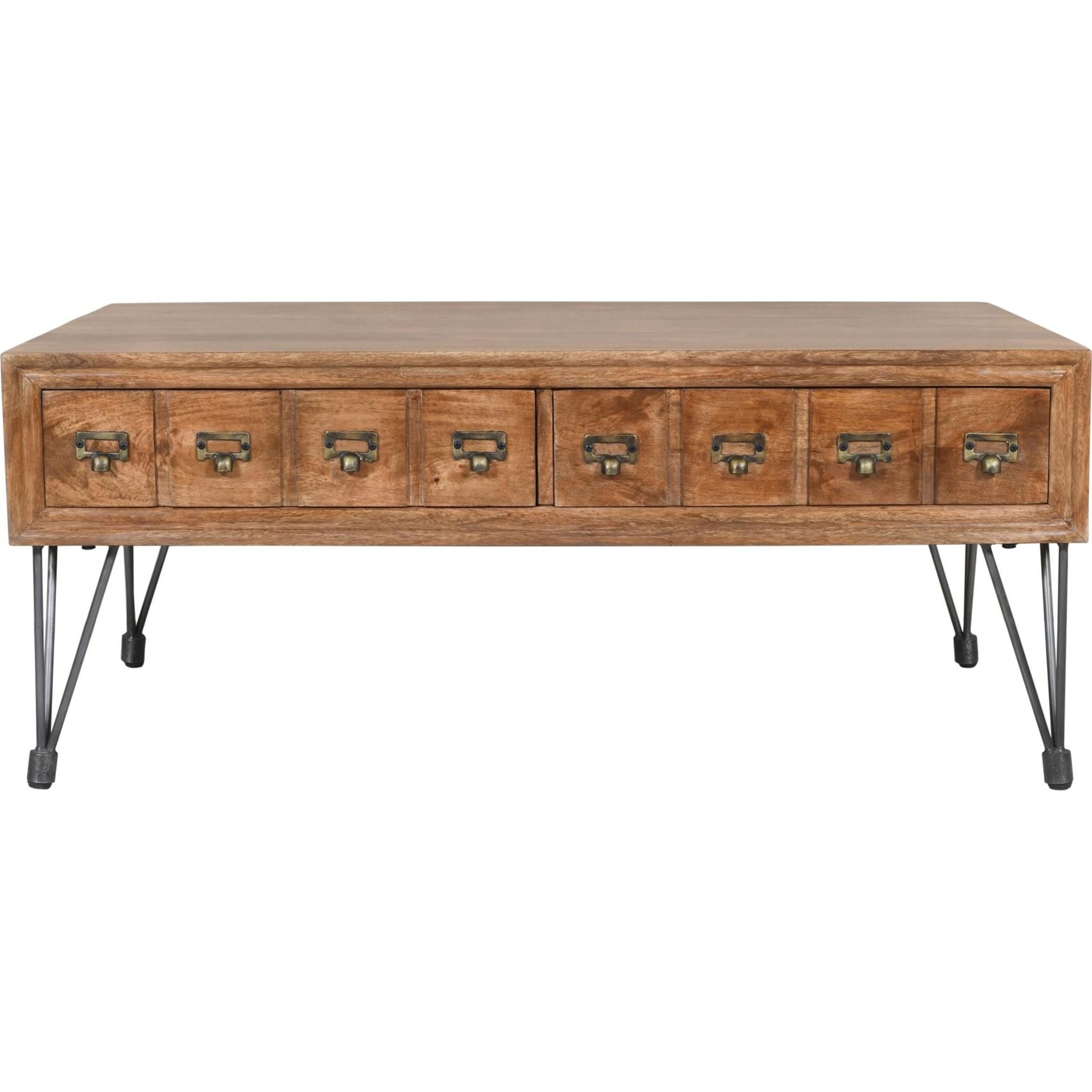 Introducing the American Vintage Coffee Table, where solid craftsmanship meets industrial chic. This stunning piece is part of our American Vintage collection, featuring solid, kiln-dried mango wood paired with sleek industrial hairpin legs and apothecary details. With its functional design and timeless appeal, this coffee table is a perfect addition to any living space.