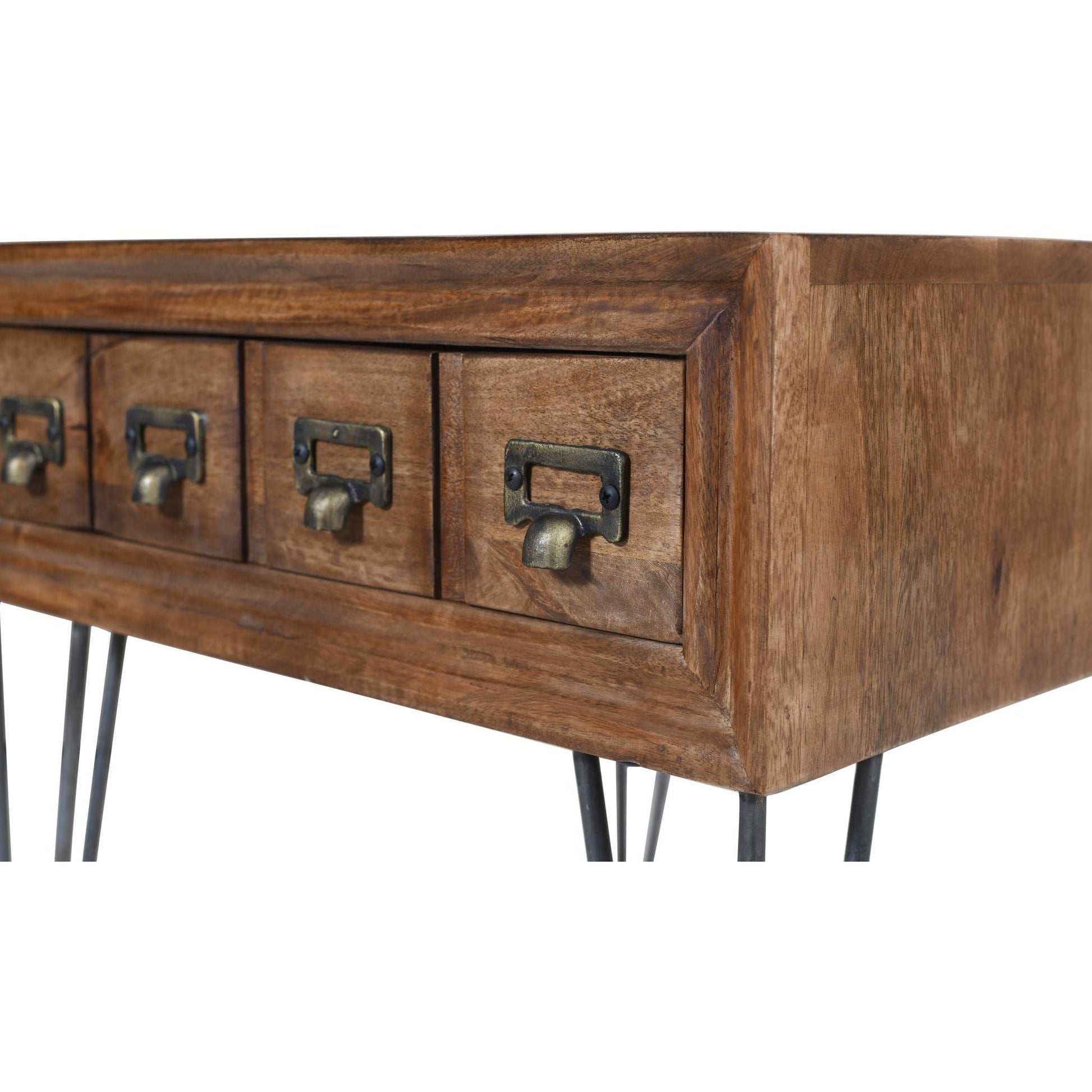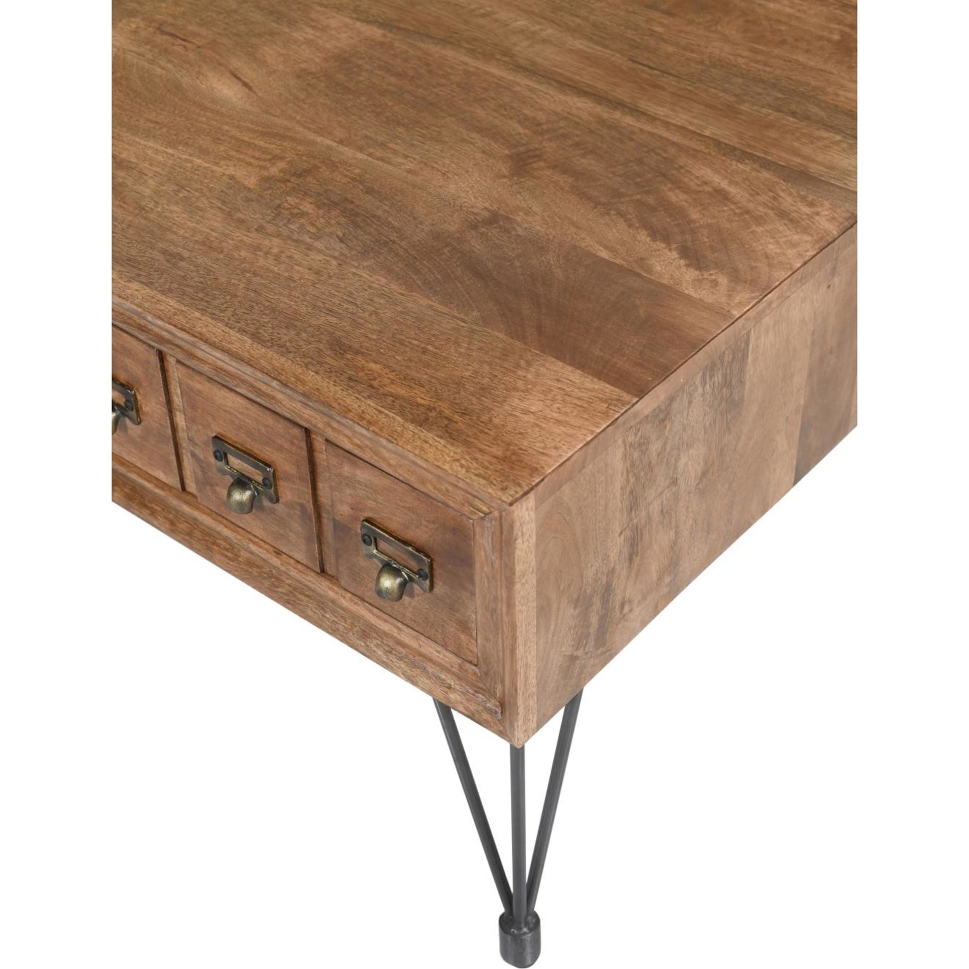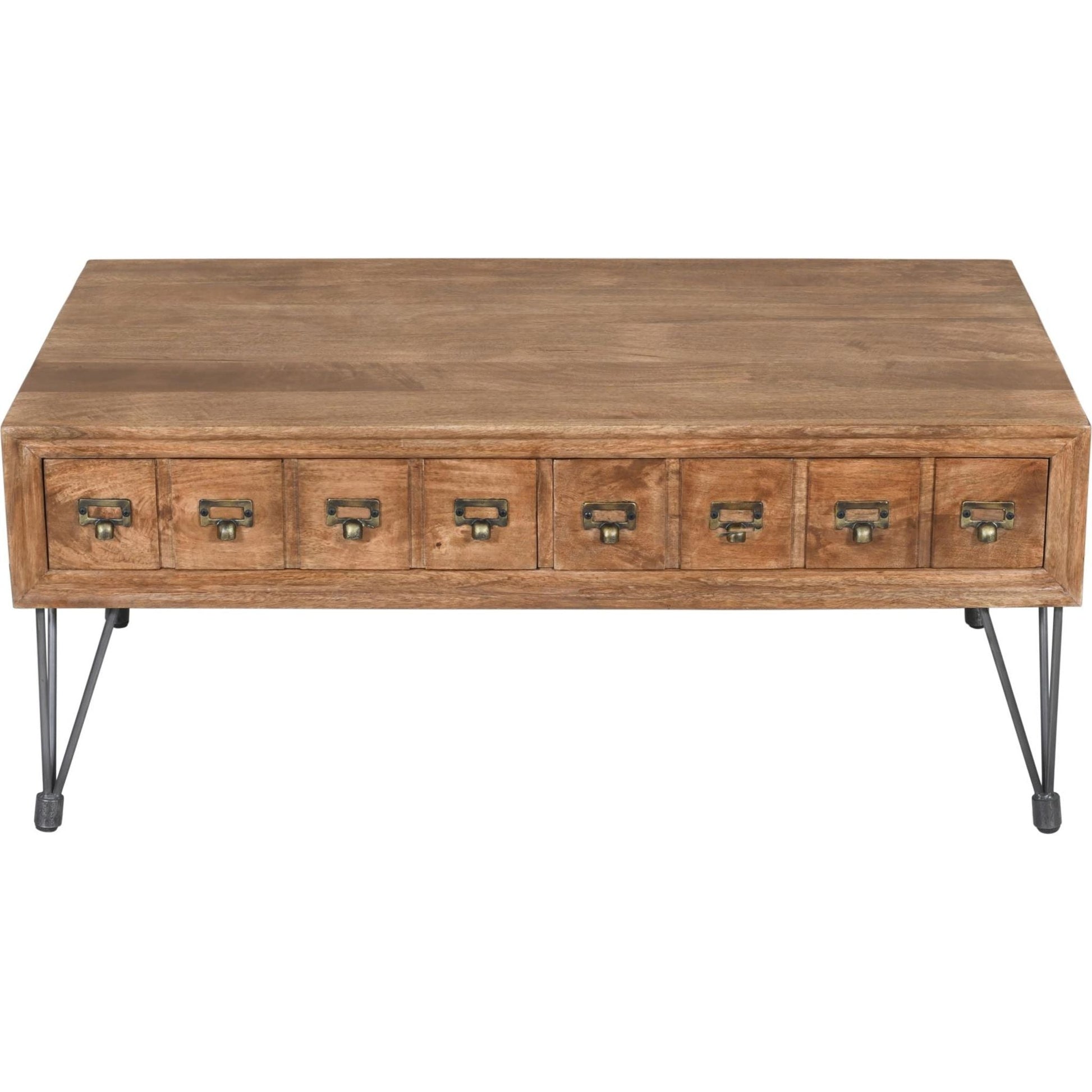 Introducing the American Vintage Coffee Table, where solid craftsmanship meets industrial chic. This stunning piece is part of our American Vintage collection, featuring solid, kiln-dried mango wood paired with sleek industrial hairpin legs and apothecary details. With its functional design and timeless appeal, this coffee table is a perfect addition to any living space.