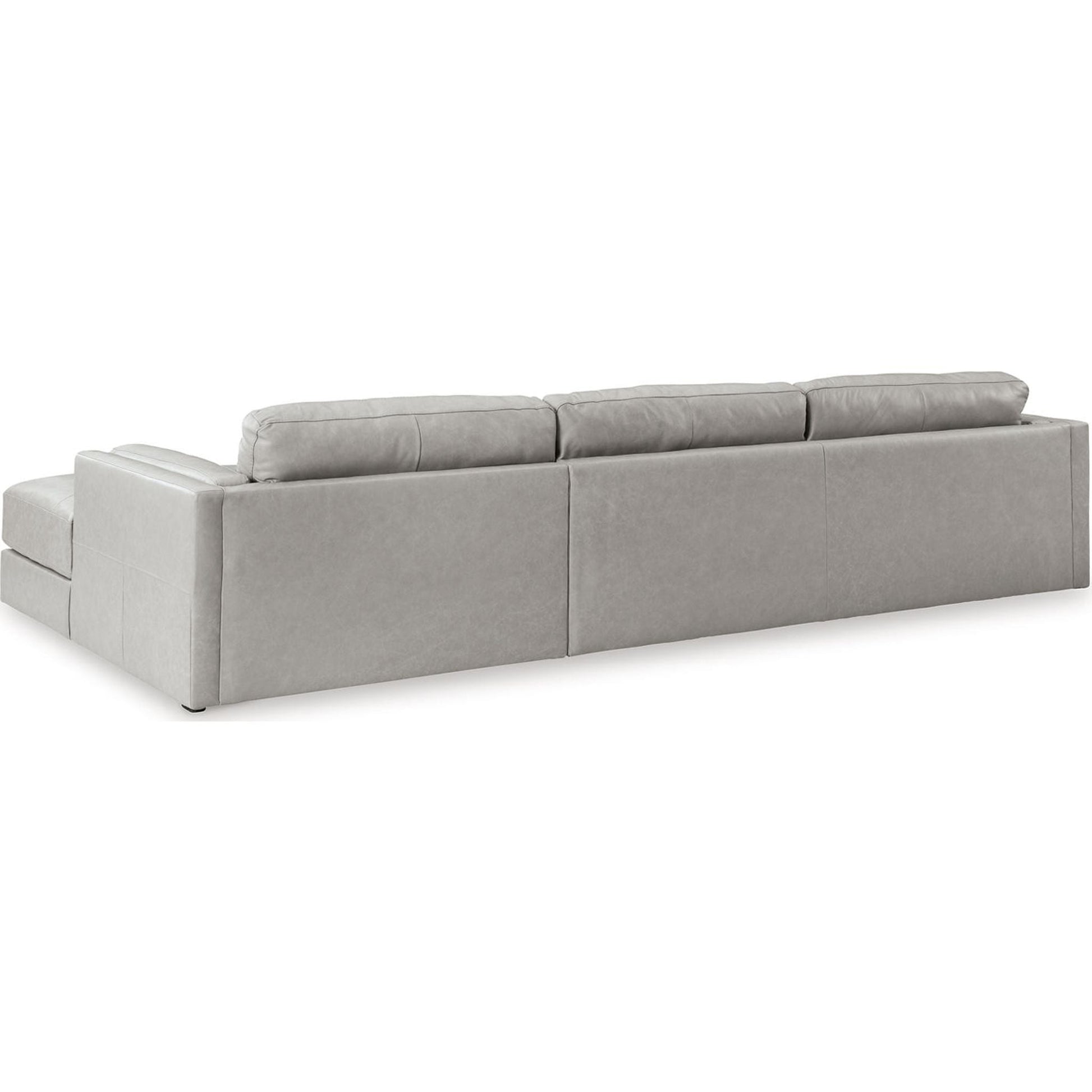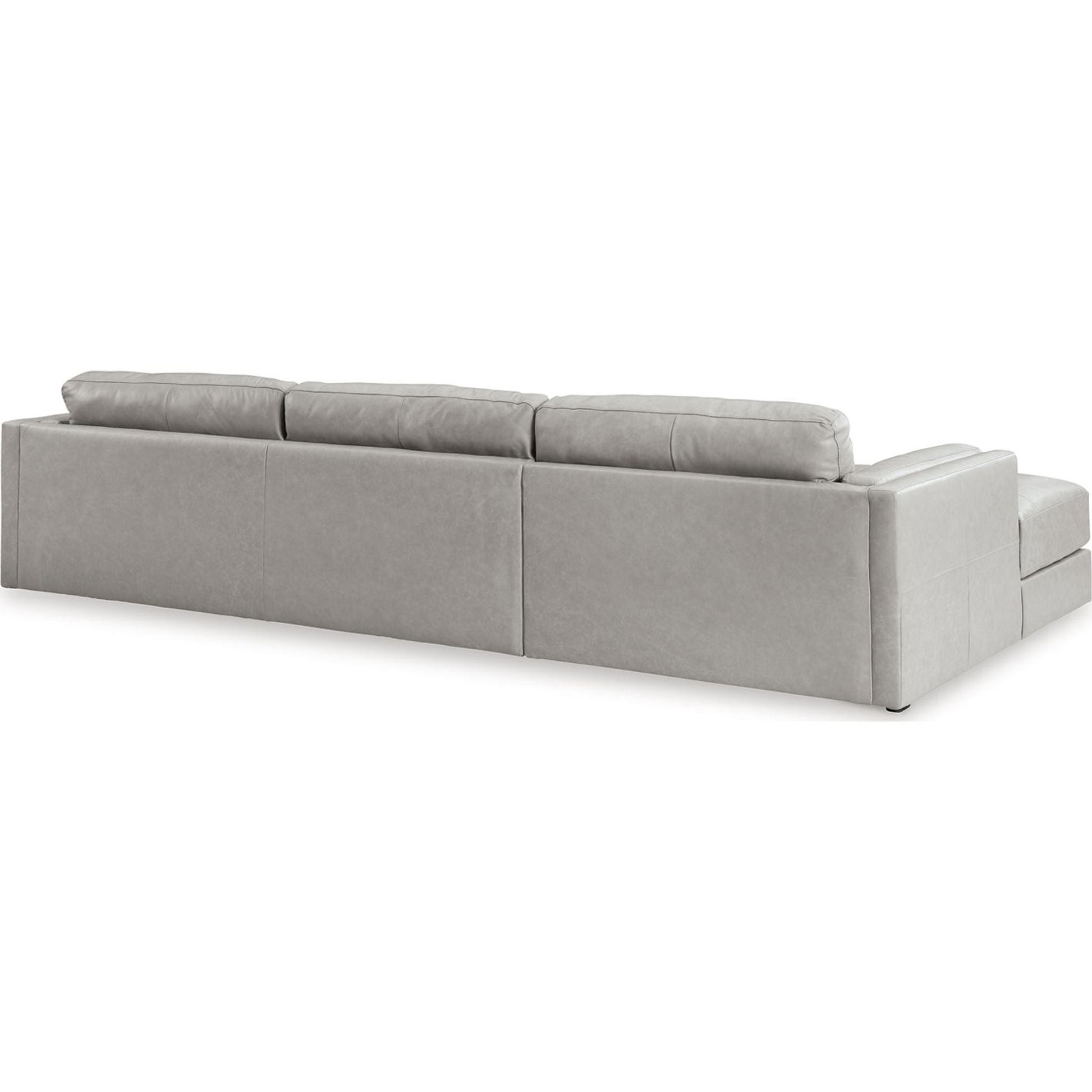 Keen on crisp, contemporary design? Adore the pleasure of leather? Look no further. This sectional with chaise satisfies on every level. Richly textured and decadently supple, the plush cushions are wrapped with leather match upholstery in an on-trend neutral tone. Sleek double-padded arms and a low, clean-lined profile complete this spacious sectional's simply chic appeal.