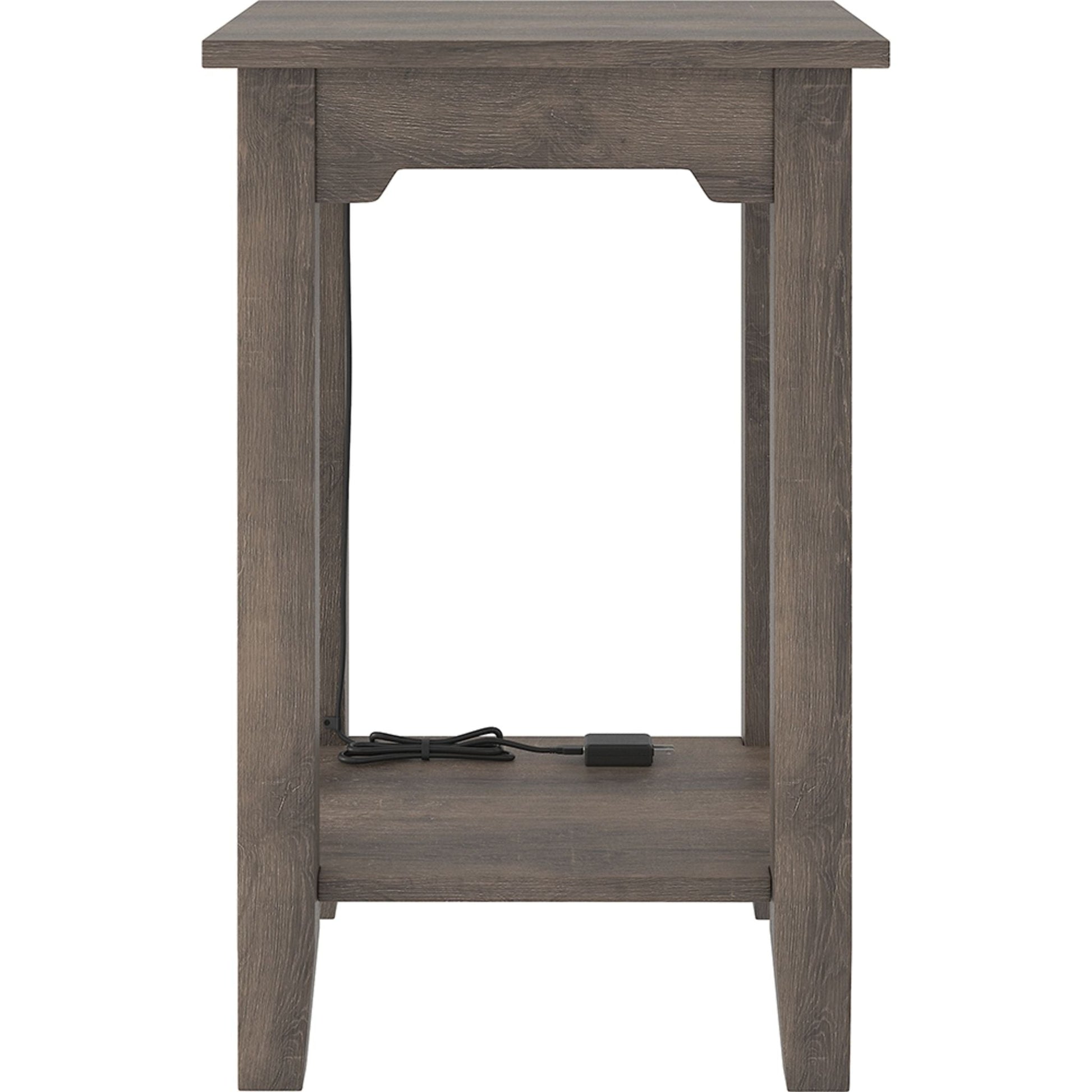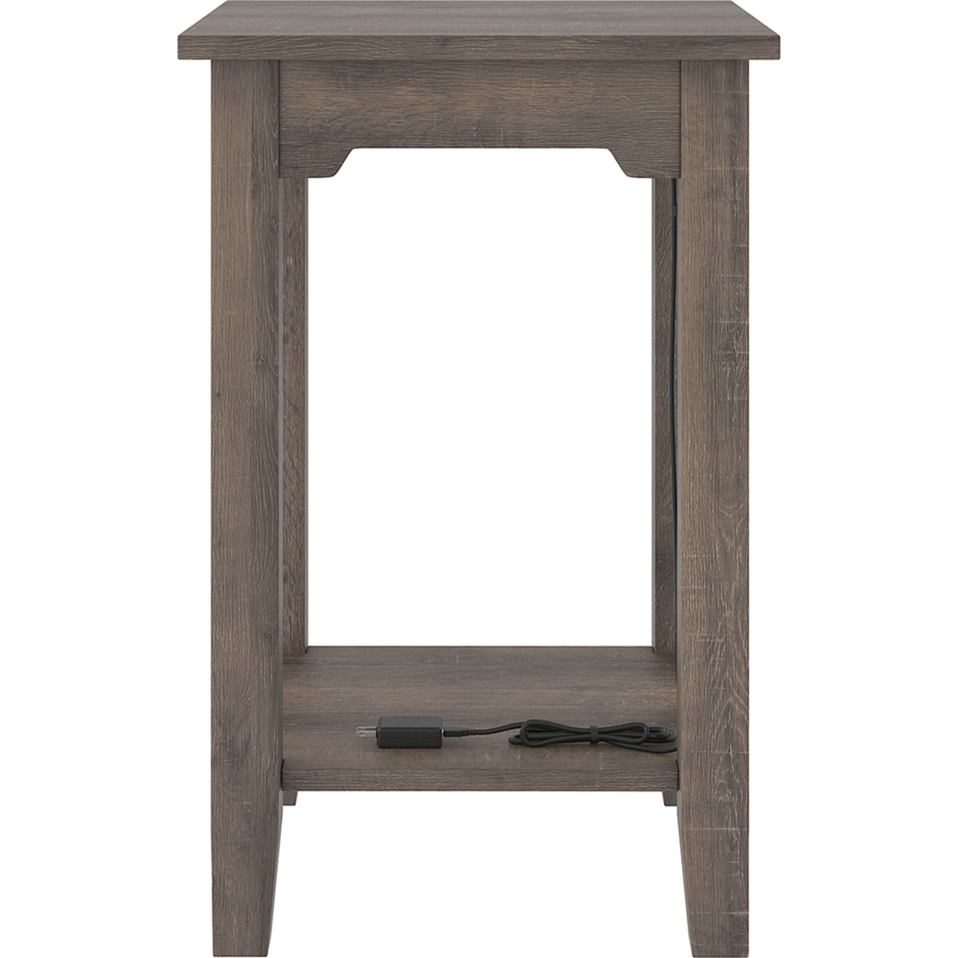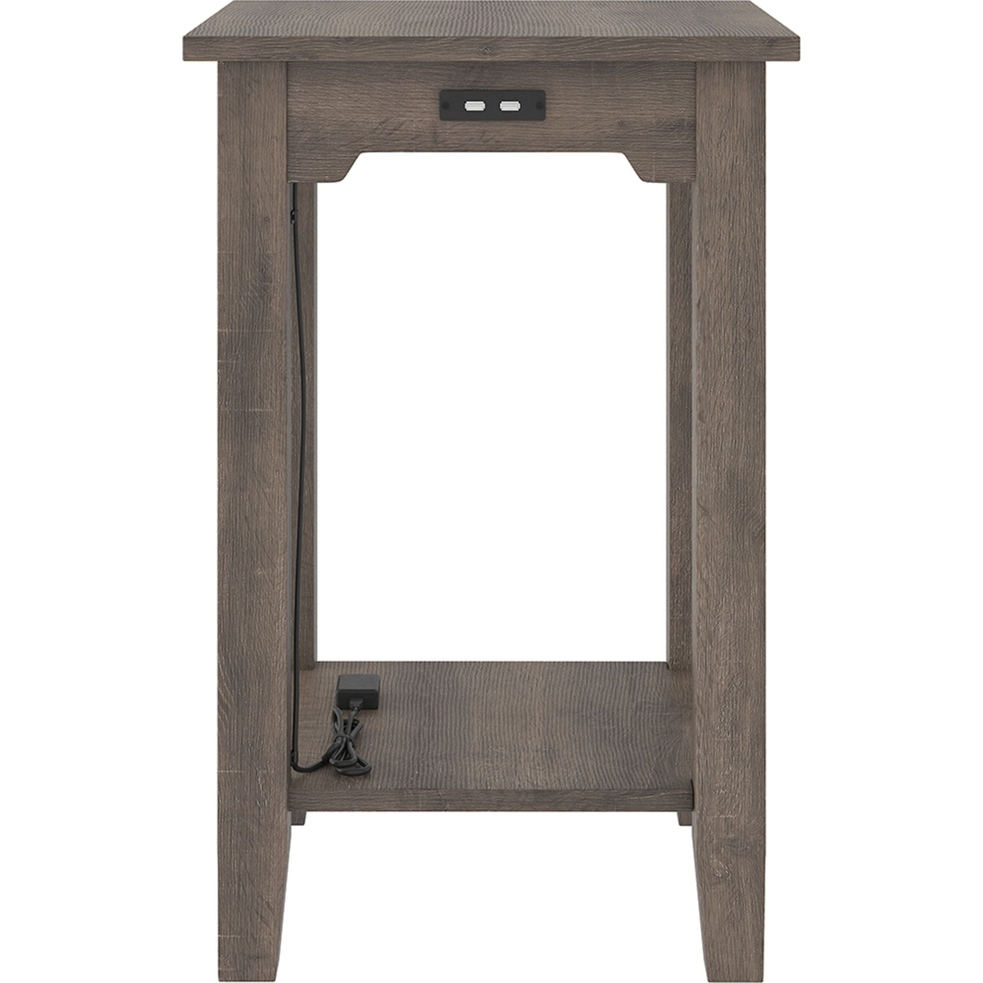 Raise the bar on modern farmhouse design with this stylish powered side table. Sporting a handsome weathered oak effect, this piece offers dual USB ports to help you power through your evenings. Bring a refined sense of functional design to your living room.