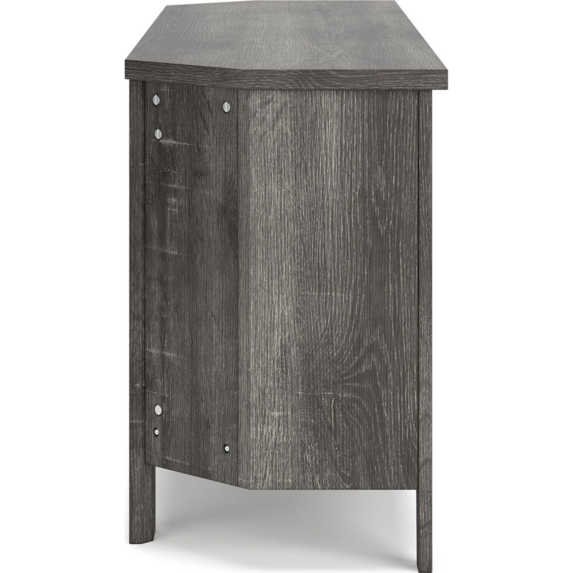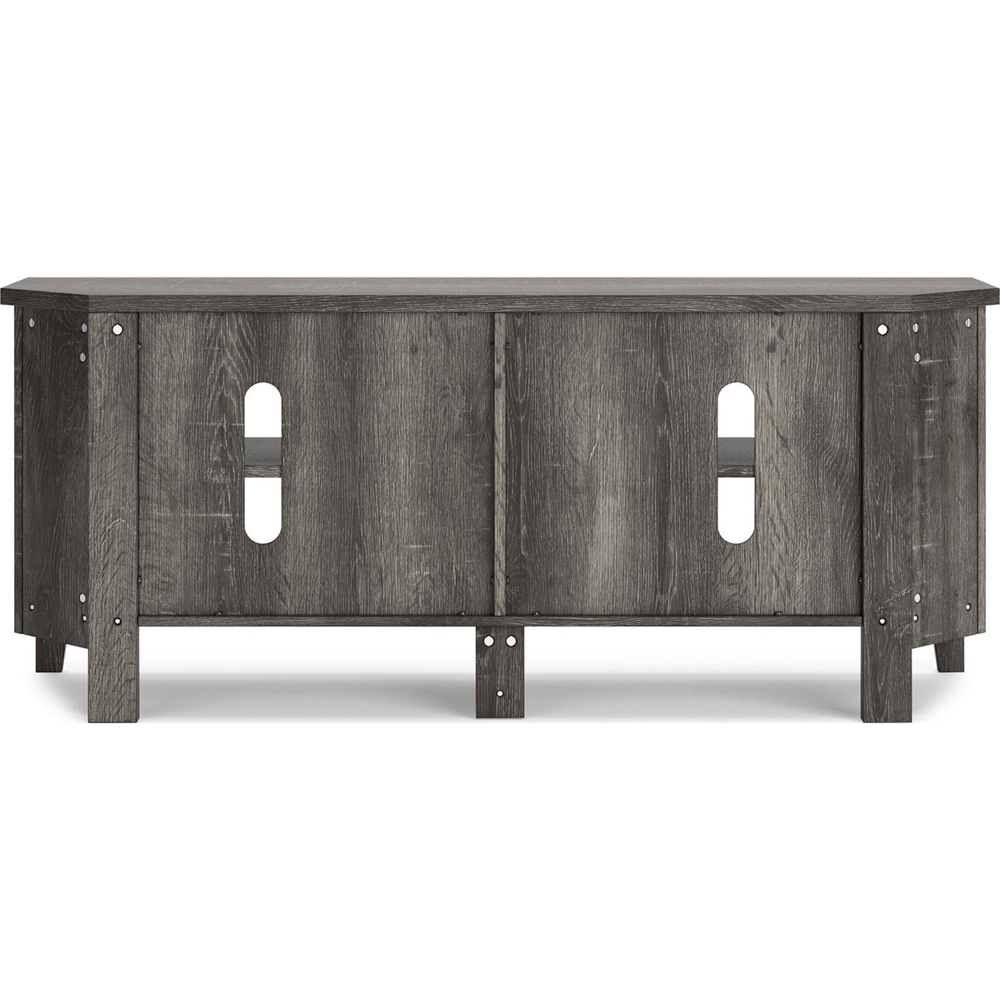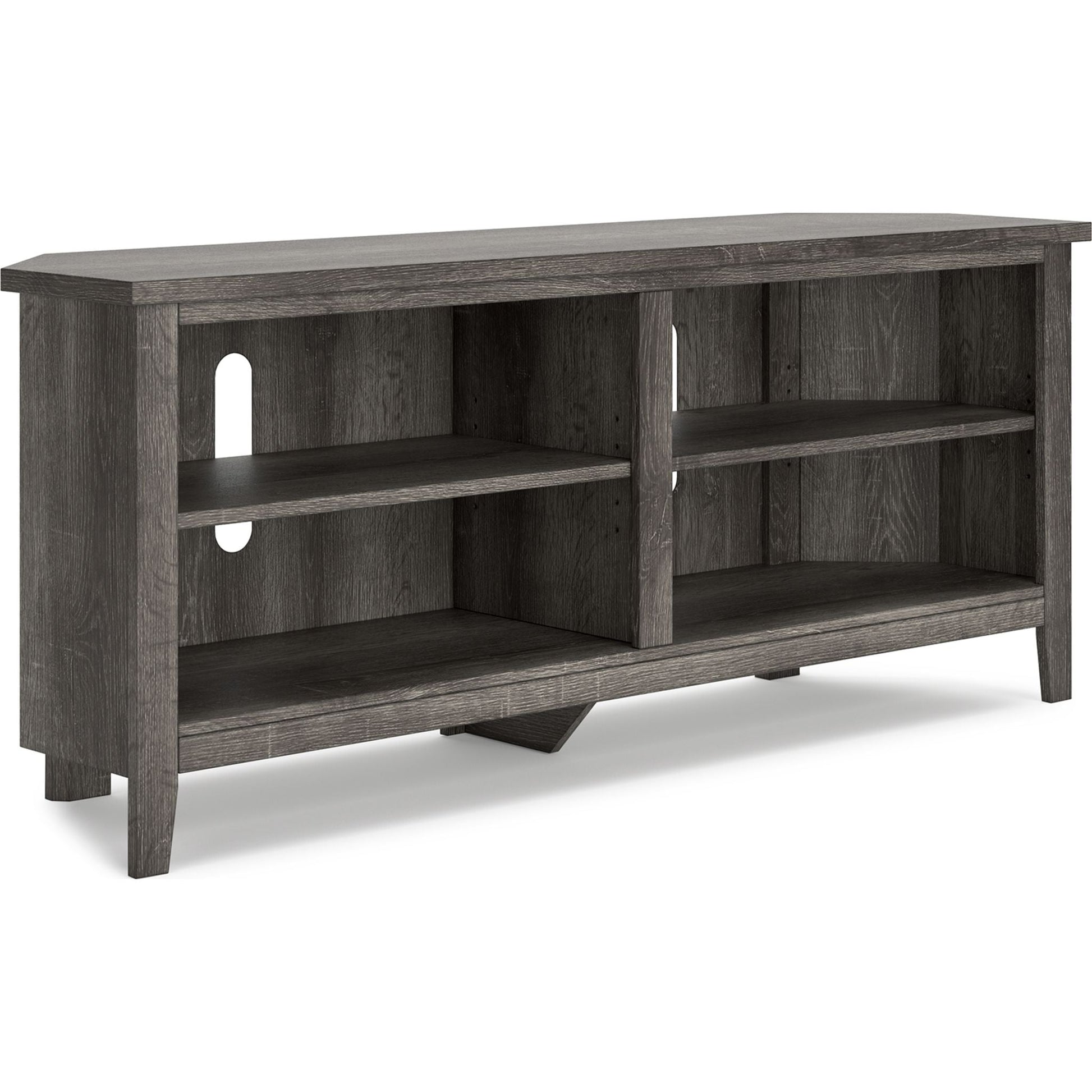 With its replicated weathered oak finish and authentic charm, this corner TV stand is right in tune with your relaxed approach to high style. Beautifully shaped to nestle into any corner, it’s well equipped with shelving and cutouts for wire management. What a mastery in modern farmhouse living for small spaces.