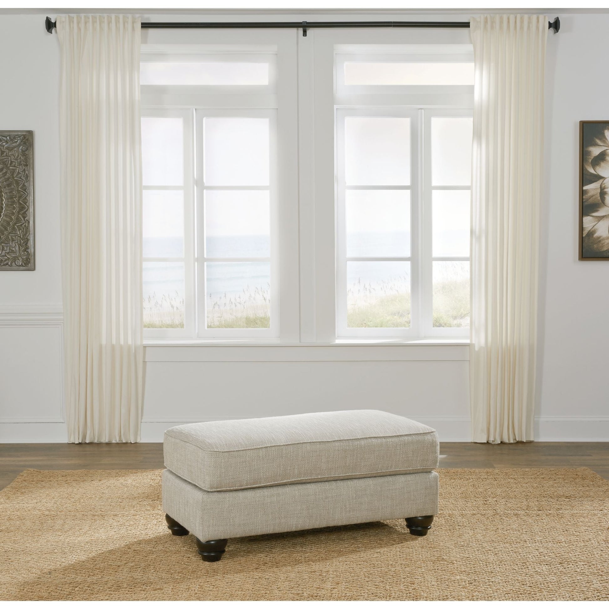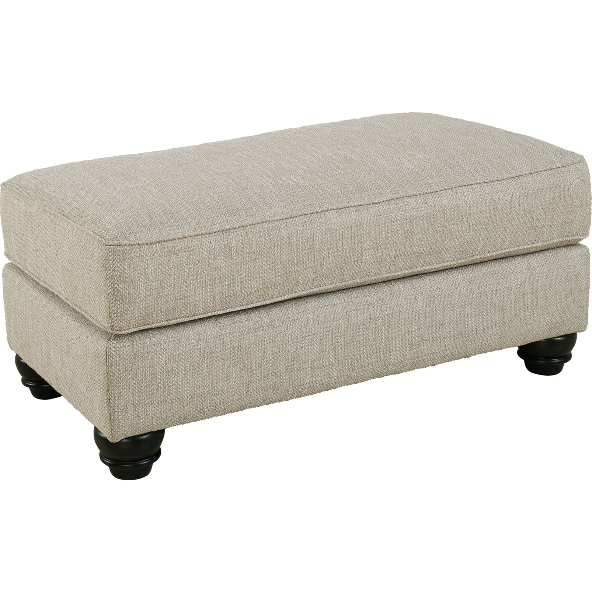 Blending comfort and style, this ottoman cradles your tired feet at the end of a long day. The distinctive look of heavily textured fabric in a light, neutral hue is enhanced by lighter flax peeking through. Whether paired with another piece or used on its own, this ottoman looks and feels right at home.