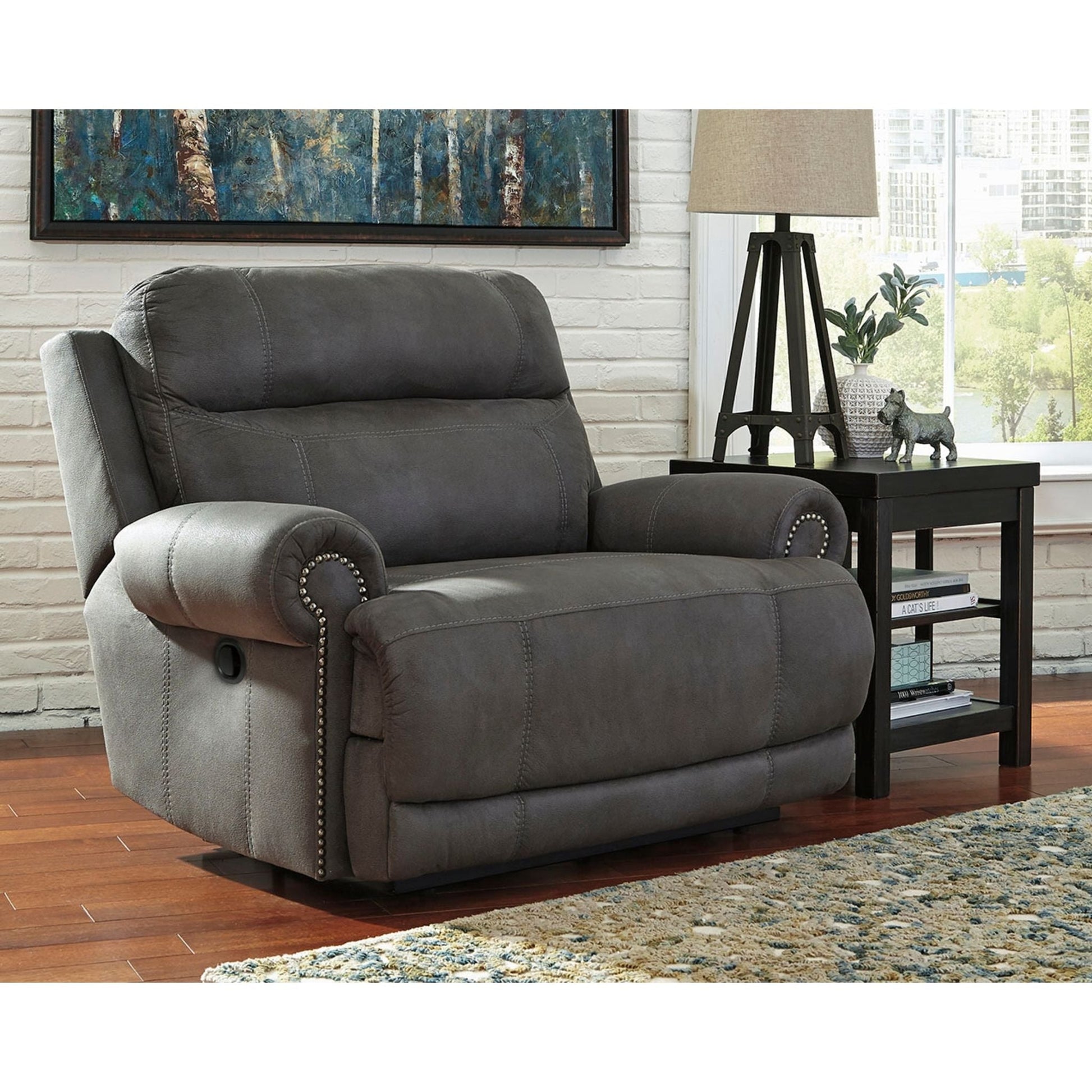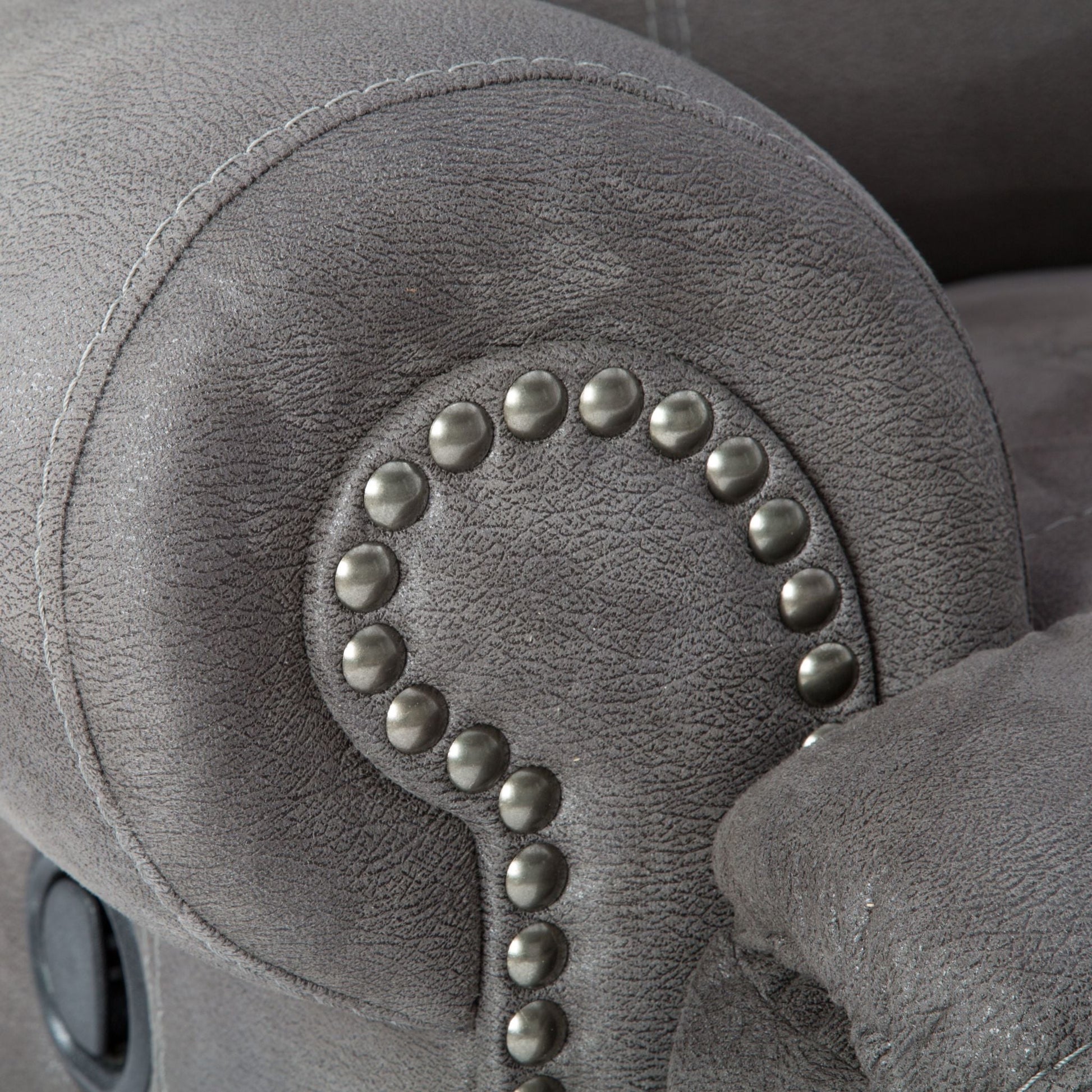 While minimizing space requirements and sparing that 'puffy' look you might expect from a recliner, this zero wall recliner doesn't hold back when it comes to contemporary style. Subtle touches such as sporty jumbo stitching, nailhead trim and a 'weather worn' effect on the upholstery give this handsome piece a buttoned-up appeal and fresh feel.