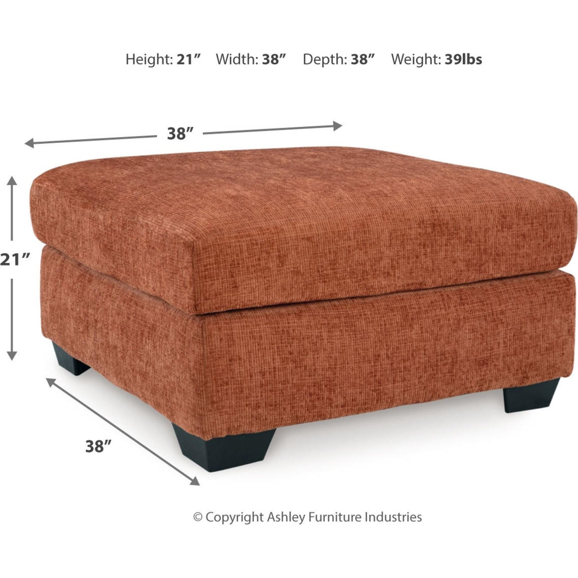 Looking to make a bold statement with color? Liven up your living room with this oversized ottoman. Its trend-right burnt orange upholstery adds a playful pop of color to your decor. Pairing posh style with everyday comfort, this piece is a welcome addition to contemporary spaces.