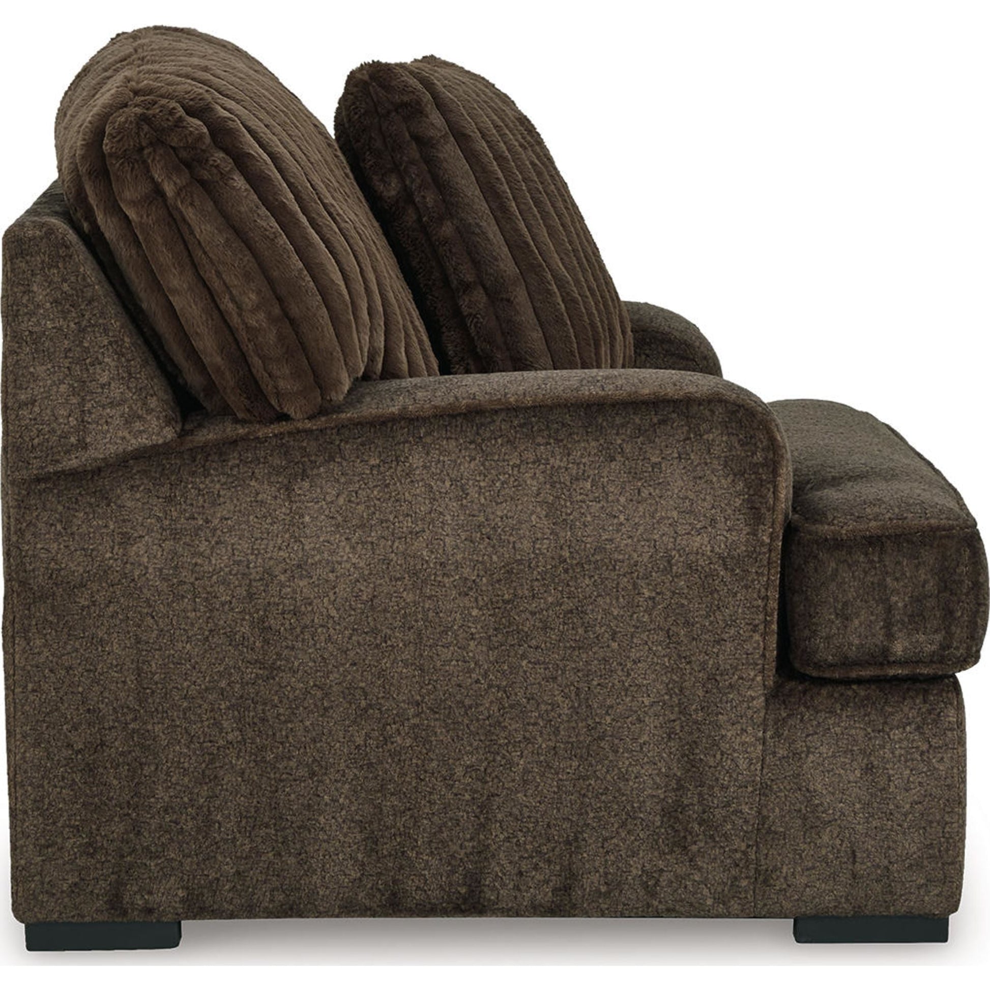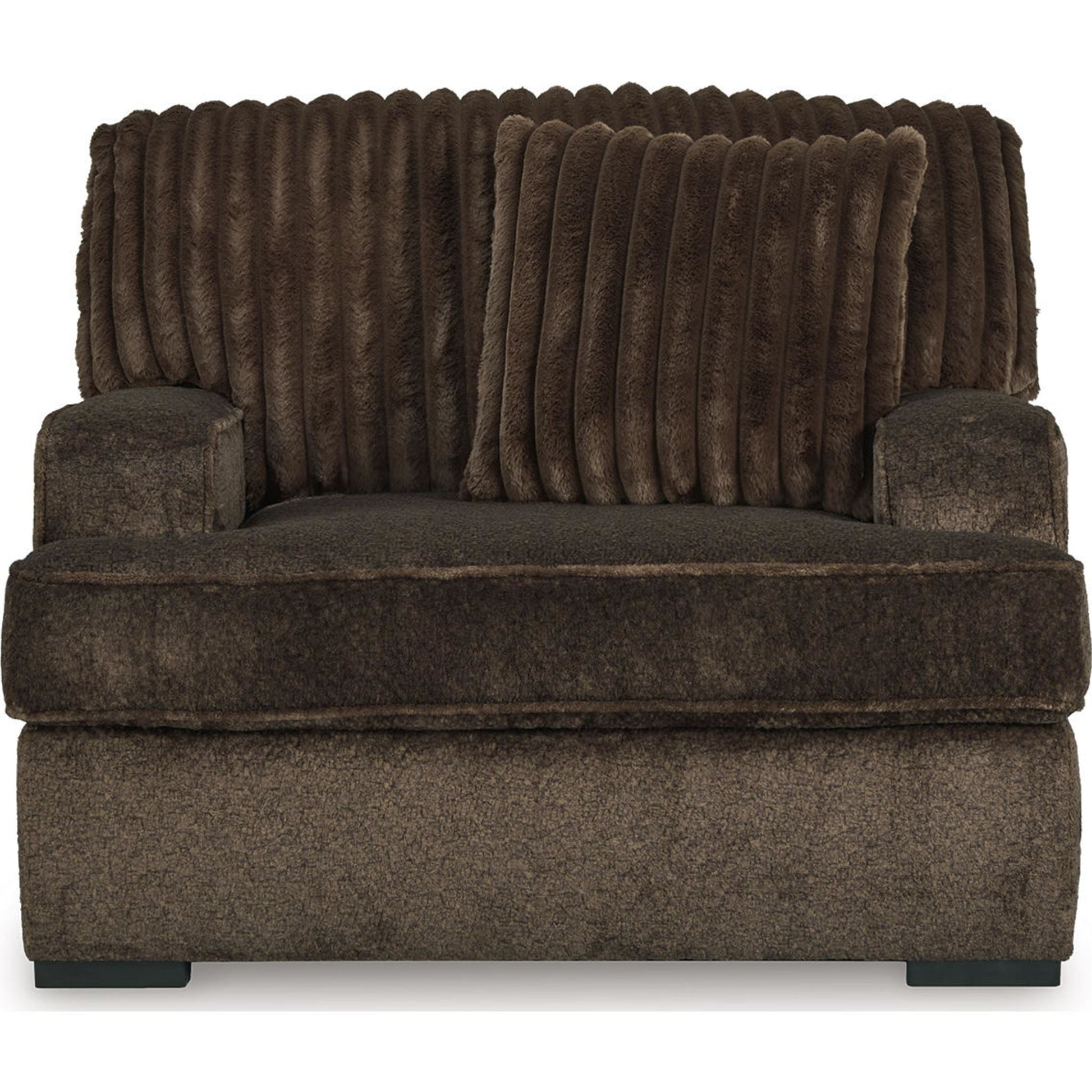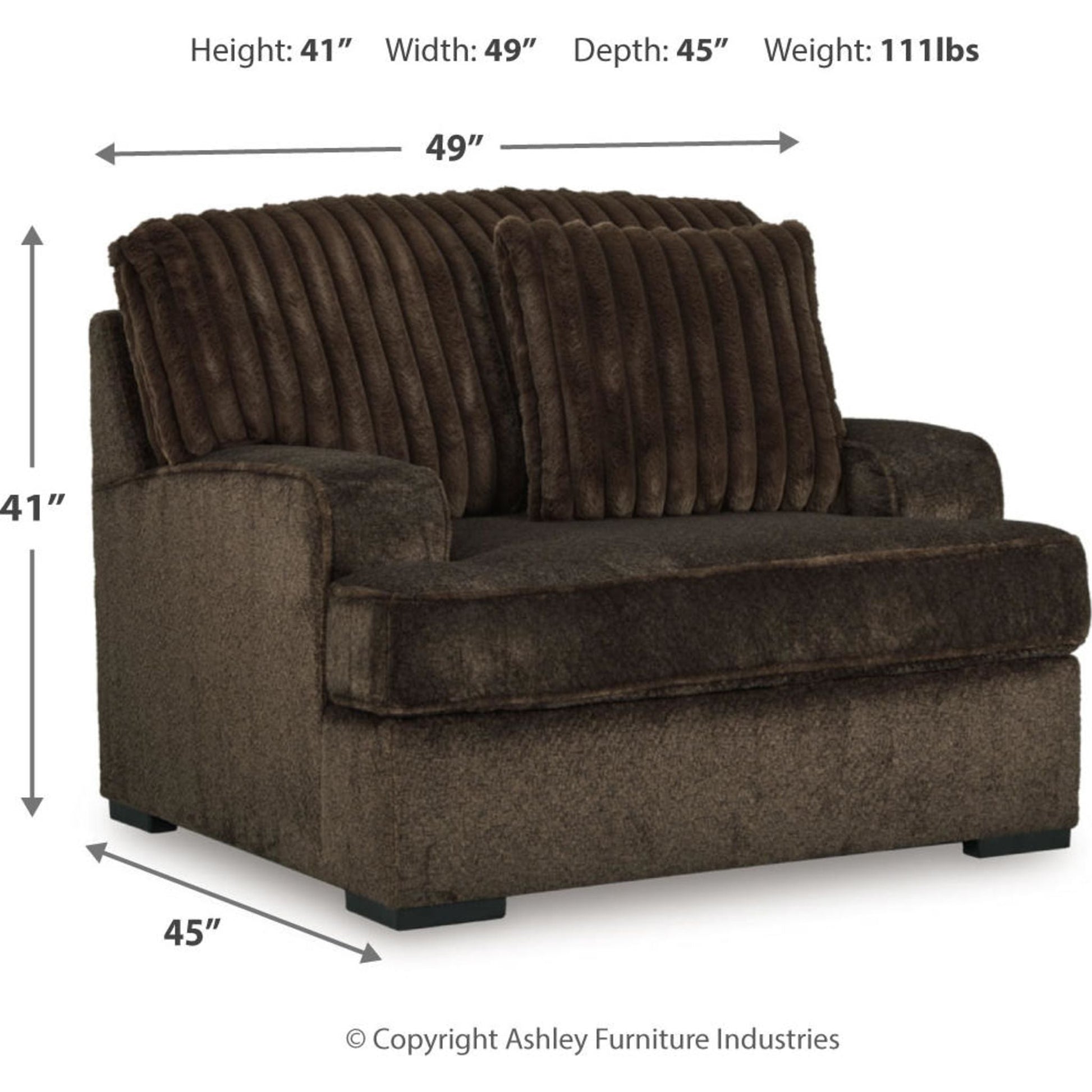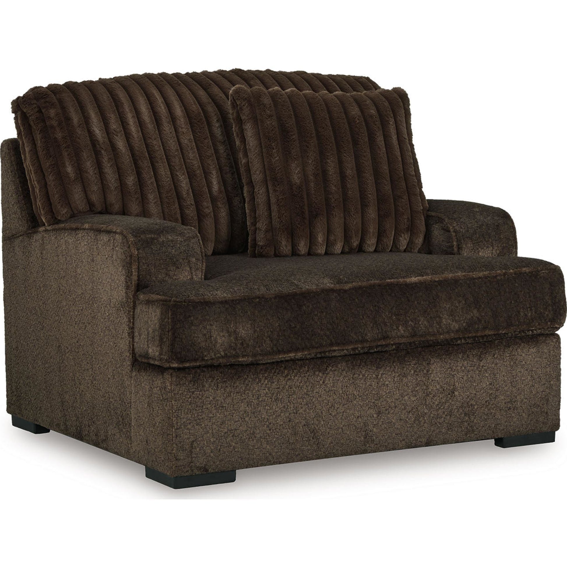 If you’re looking for a blend of extraordinary comfort and contemporary style, the extra-roomy Aylesworth oversized chair stacks up beautifully. It’s a modern yet ultra-soft look pairing plush textured and on-trend corduroy cushions that feel as great as they look. The rich chocolate color is simply smart and practical. And pretty sweet.