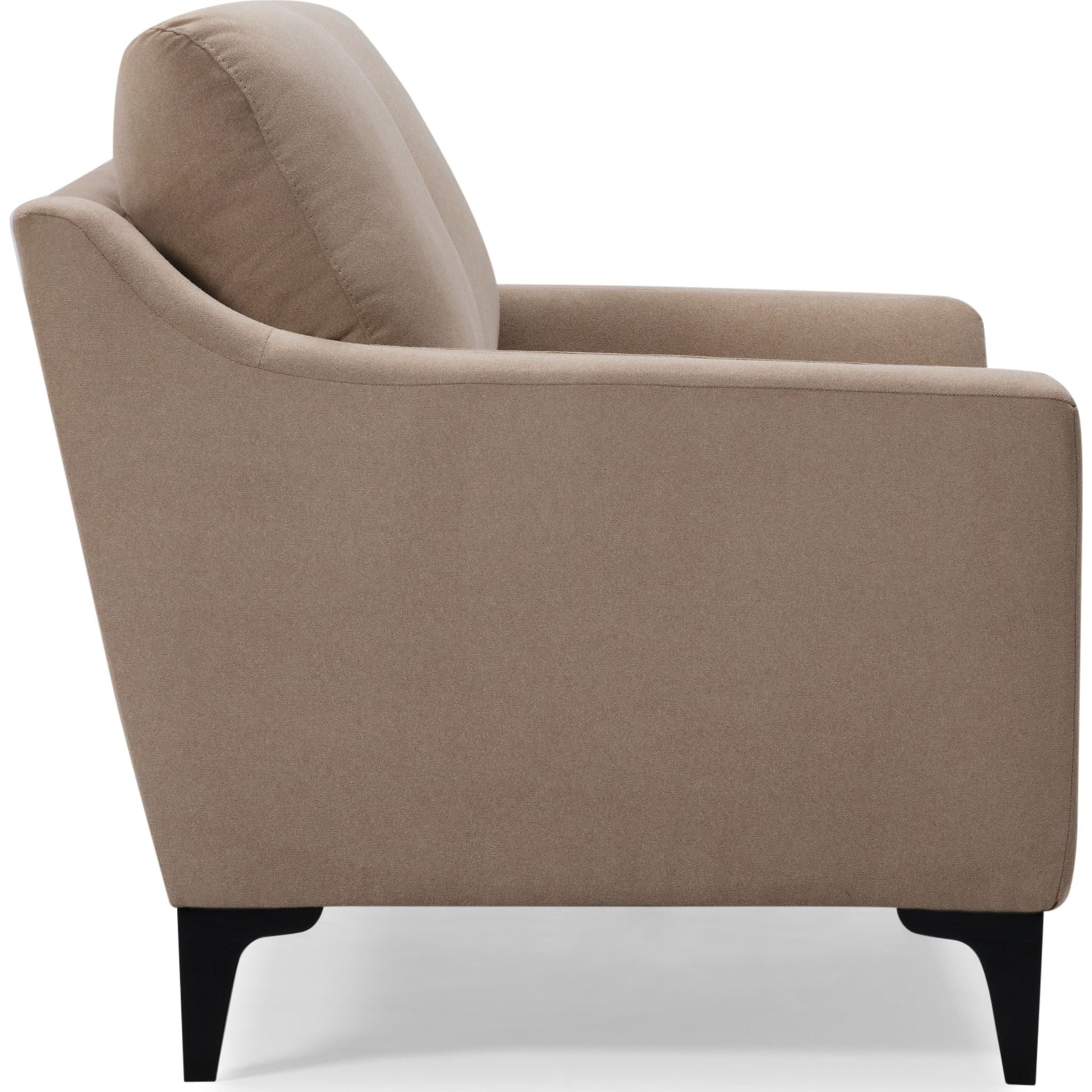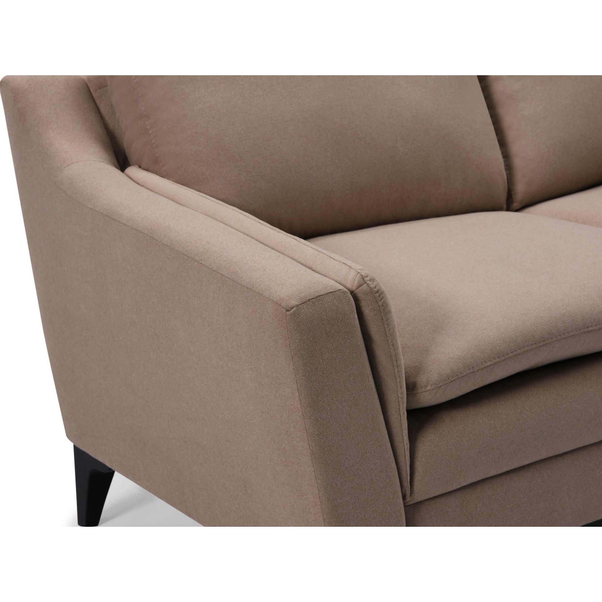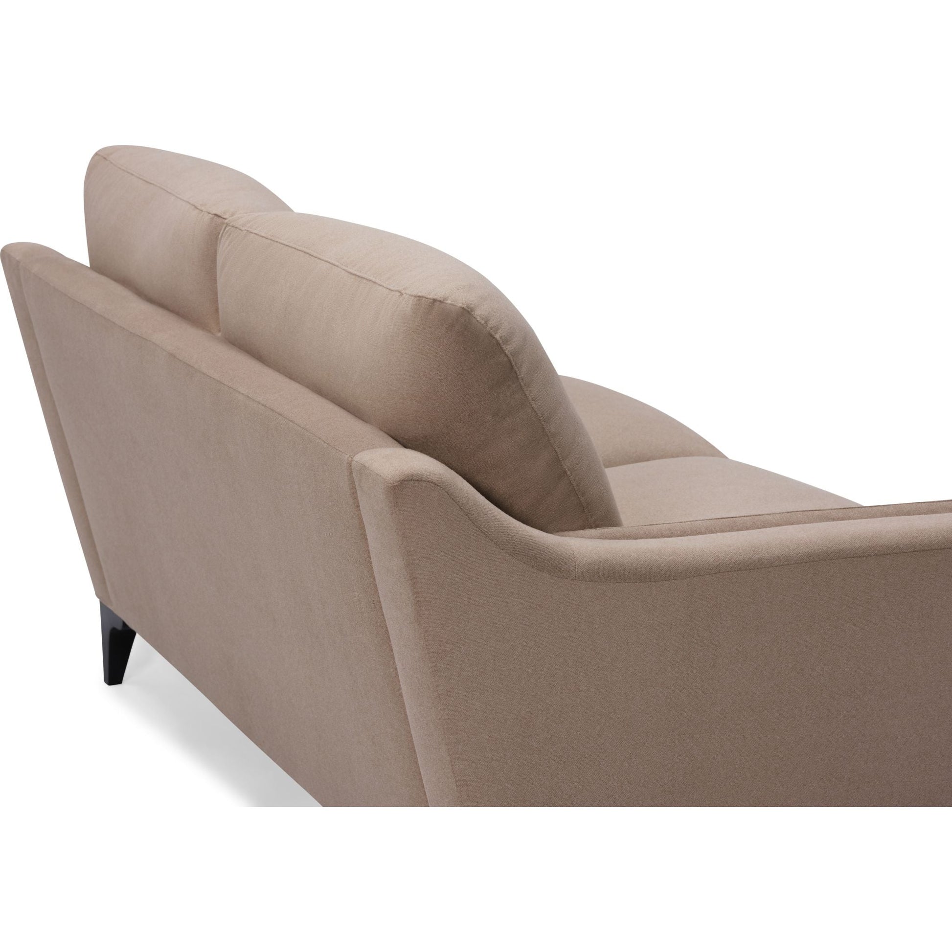 The Balmoral collection showcases a refined, contemporary design. With a slightly flared arm and a thin cushion profile throughout, the Balmoral feels plush yet appears sleek and slender. Designed for comfort, each arm is padded for lounging and the soft blown-fibre back cushions allow you to sink into the seat. Modern stitching and a solid wood leg in an espresso finish highlight the Balmoral's frame and emphasize the sleek appeal of its design. The Balmoral delivers comfort without the bulk, but allows plenty of room for relaxing with company in both modern or traditional homes alike.