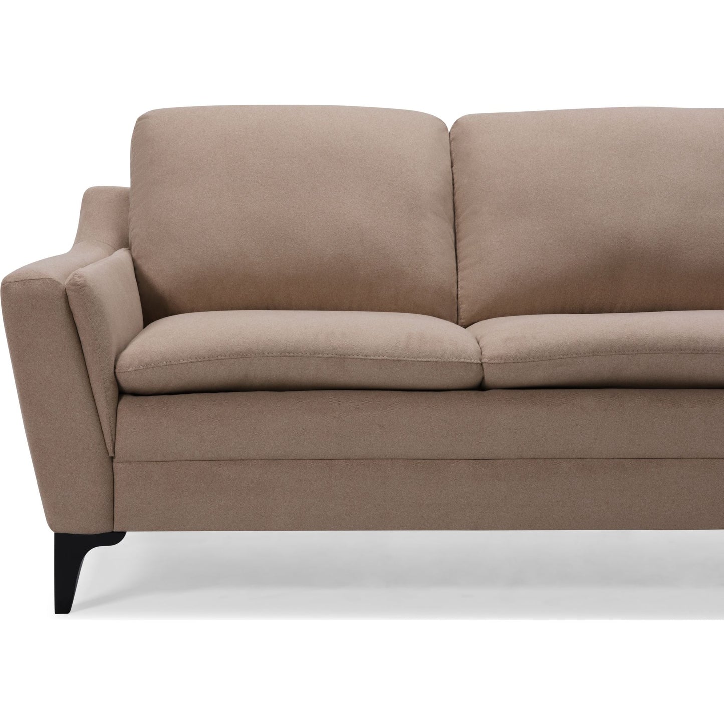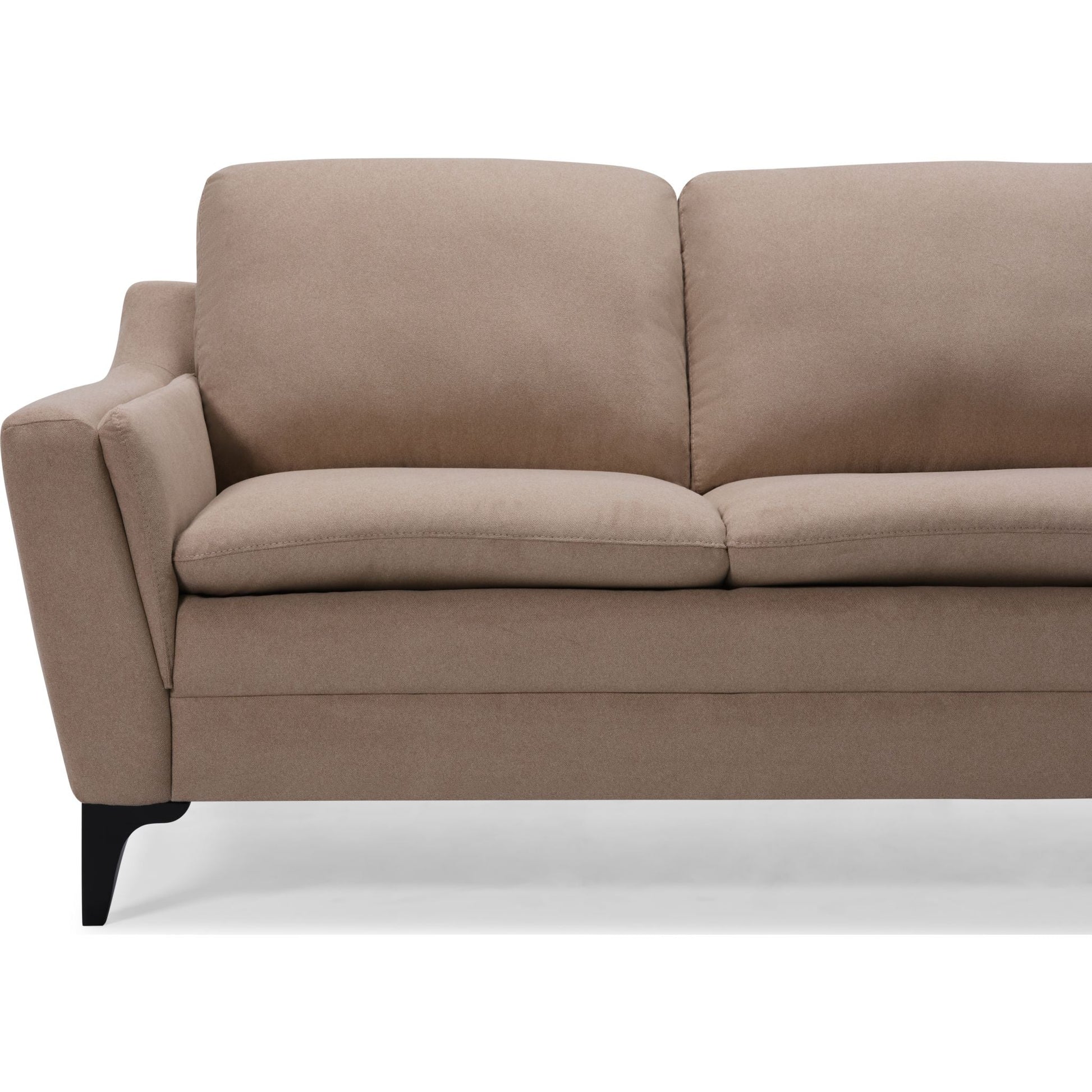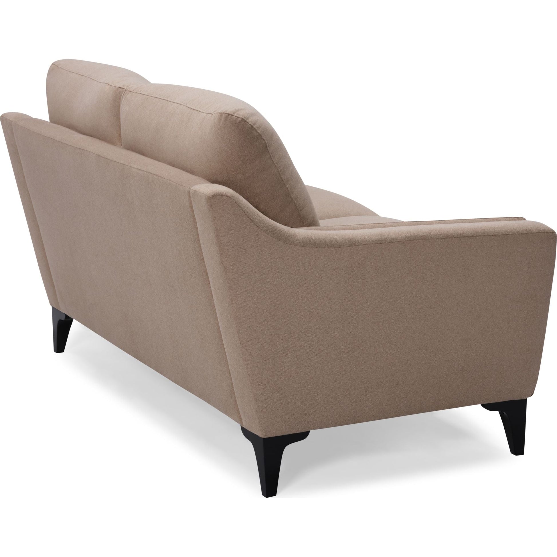 The Balmoral collection showcases a refined, contemporary design. With a slightly flared arm and a thin cushion profile throughout, the Balmoral feels plush yet appears sleek and slender. Designed for comfort, each arm is padded for lounging and the soft blown-fibre back cushions allow you to sink into the seat. Modern stitching and a solid wood leg in an espresso finish highlight the Balmoral's frame and emphasize the sleek appeal of its design. The Balmoral delivers comfort without the bulk, but allows plenty of room for relaxing with company in both modern or traditional homes alike.
