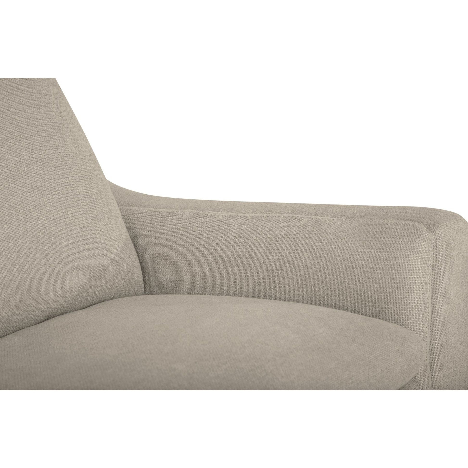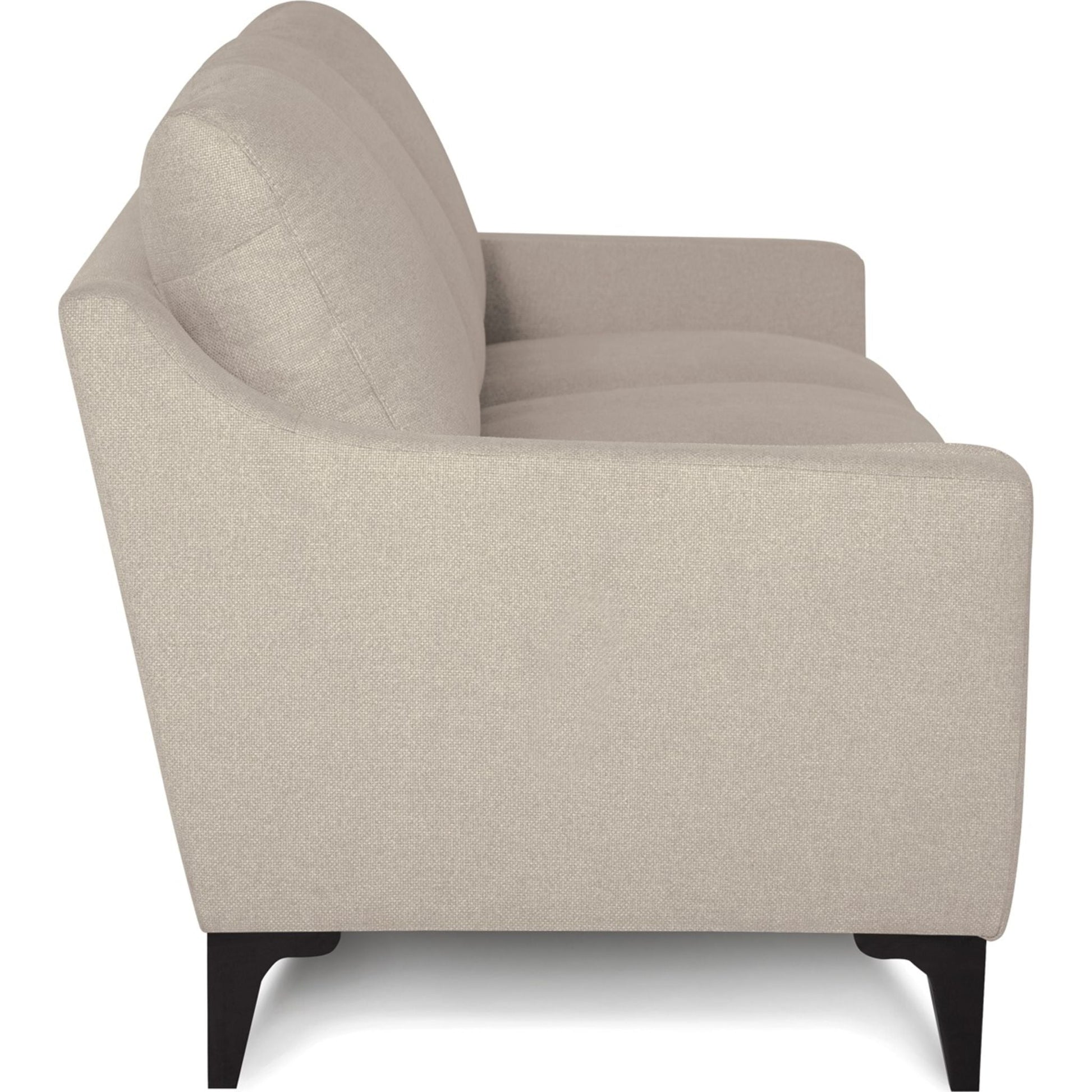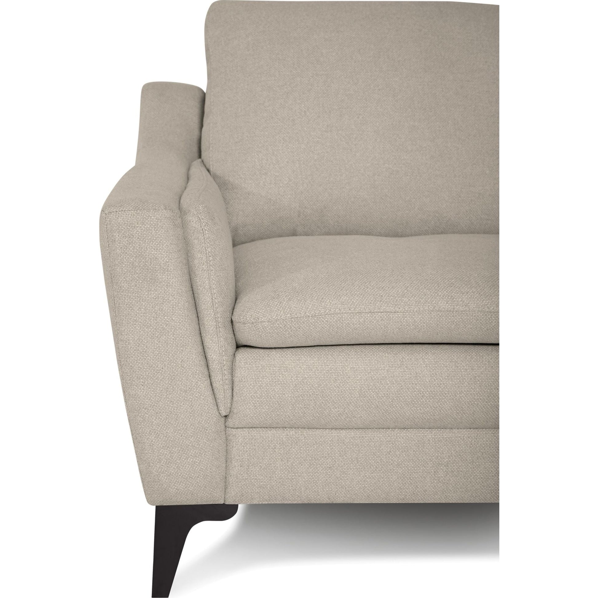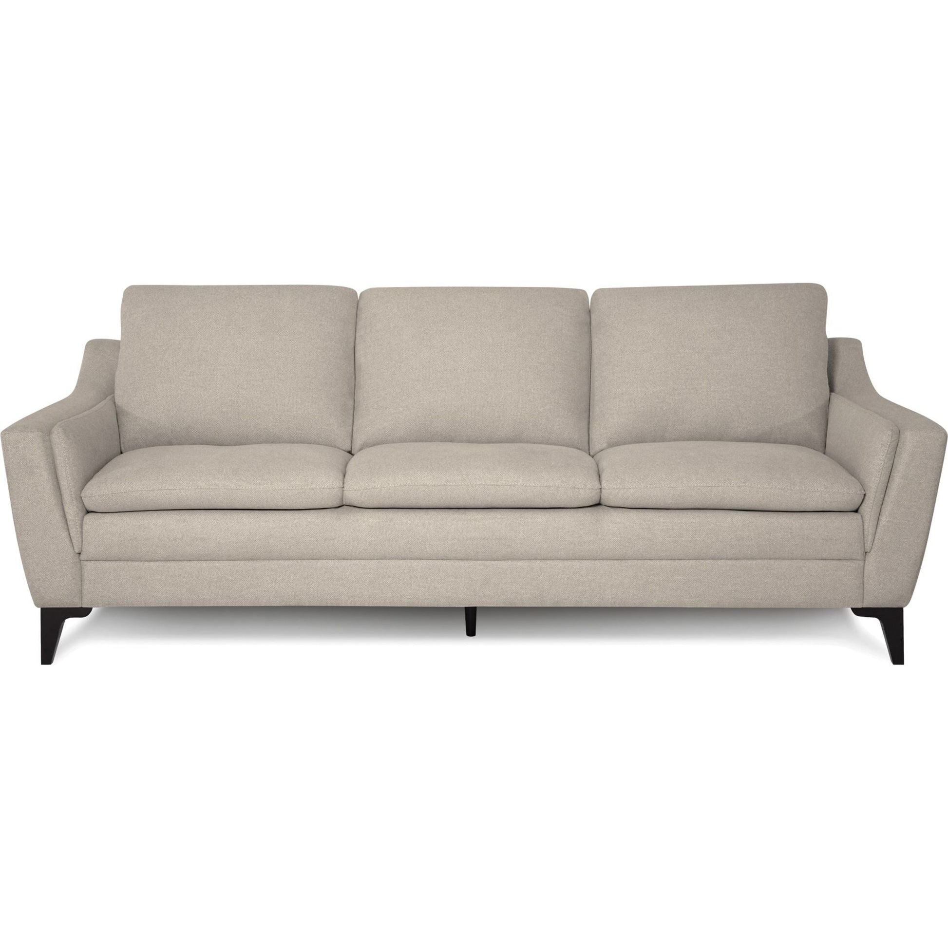 The Balmoral collection showcases a refined, contemporary design. With a slightly flared arm and a thin cushion profile throughout, the Balmoral feels plush yet appears sleek and slender. Designed for comfort, each arm is padded for lounging and the soft blown-fibre back cushions allow you to sink into the seat. Modern stitching and a solid wood leg in an espresso finish highlight the Balmoral's frame and emphasize the sleek appeal of its design. The Balmoral delivers comfort without the bulk, but allows plenty of room for relaxing with company in both modern or traditional homes alike.