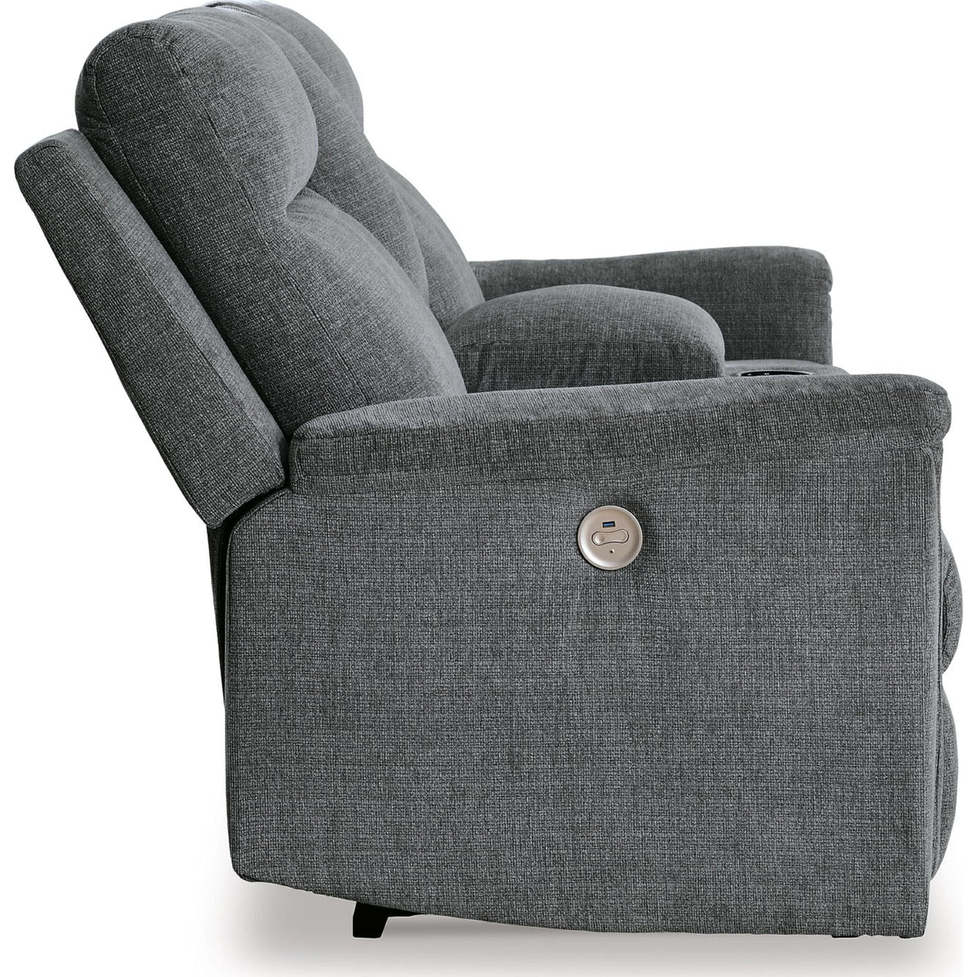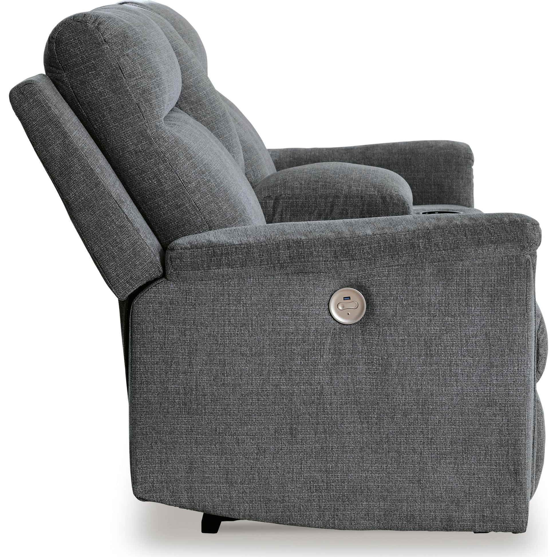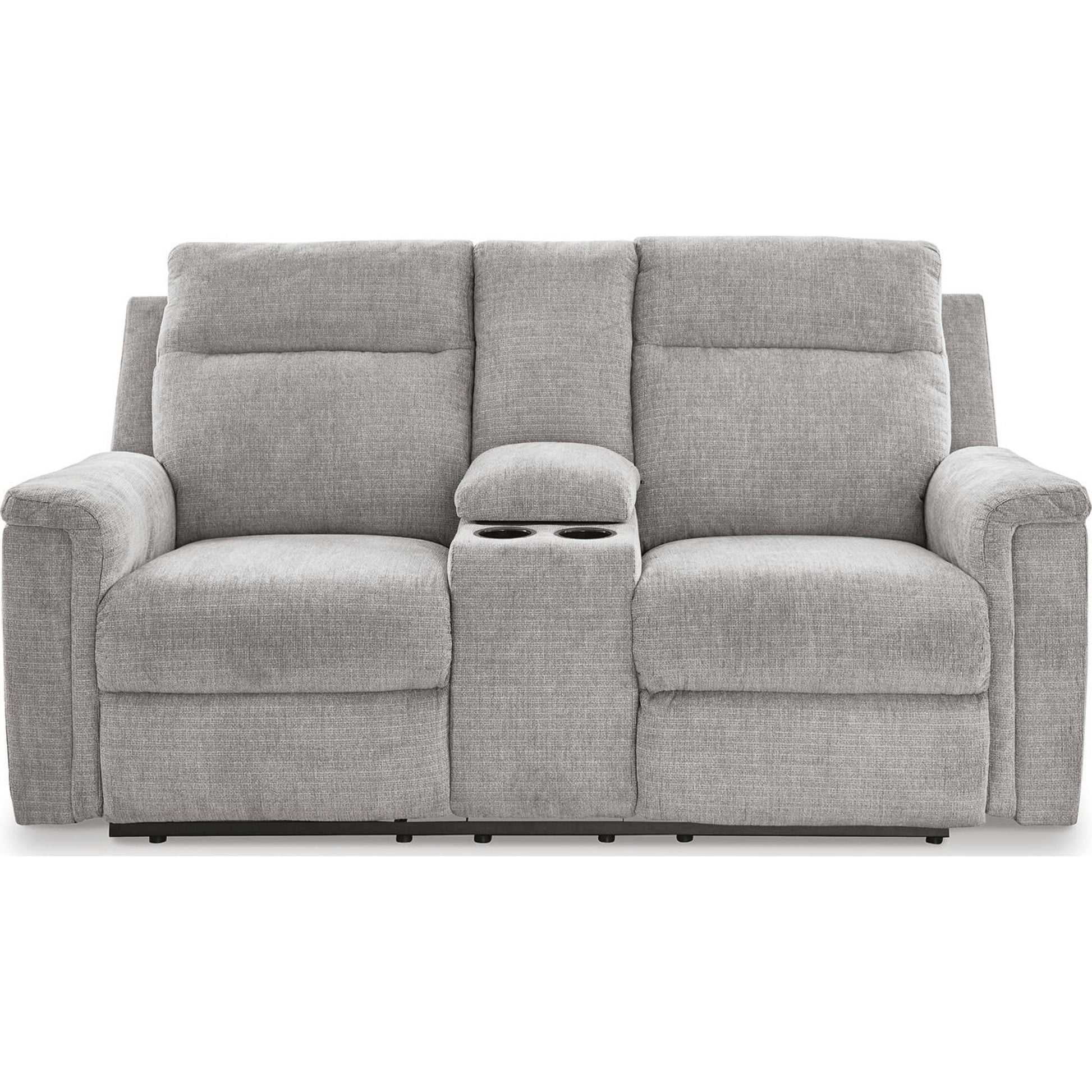 The ability to go from fully upright to relaxed and stretched out, all at the touch of a button, awaits. A beautiful blend of plush upholstery and casual style, this power reclining loveseat with console invites you to sink into ultimate comfort. Easily tuck away remotes or gaming controllers and keep drinks close by with its handy console. Whether you're hosting guests or lounging alone, you’ll find it hard to leave your living room—that’s a given.