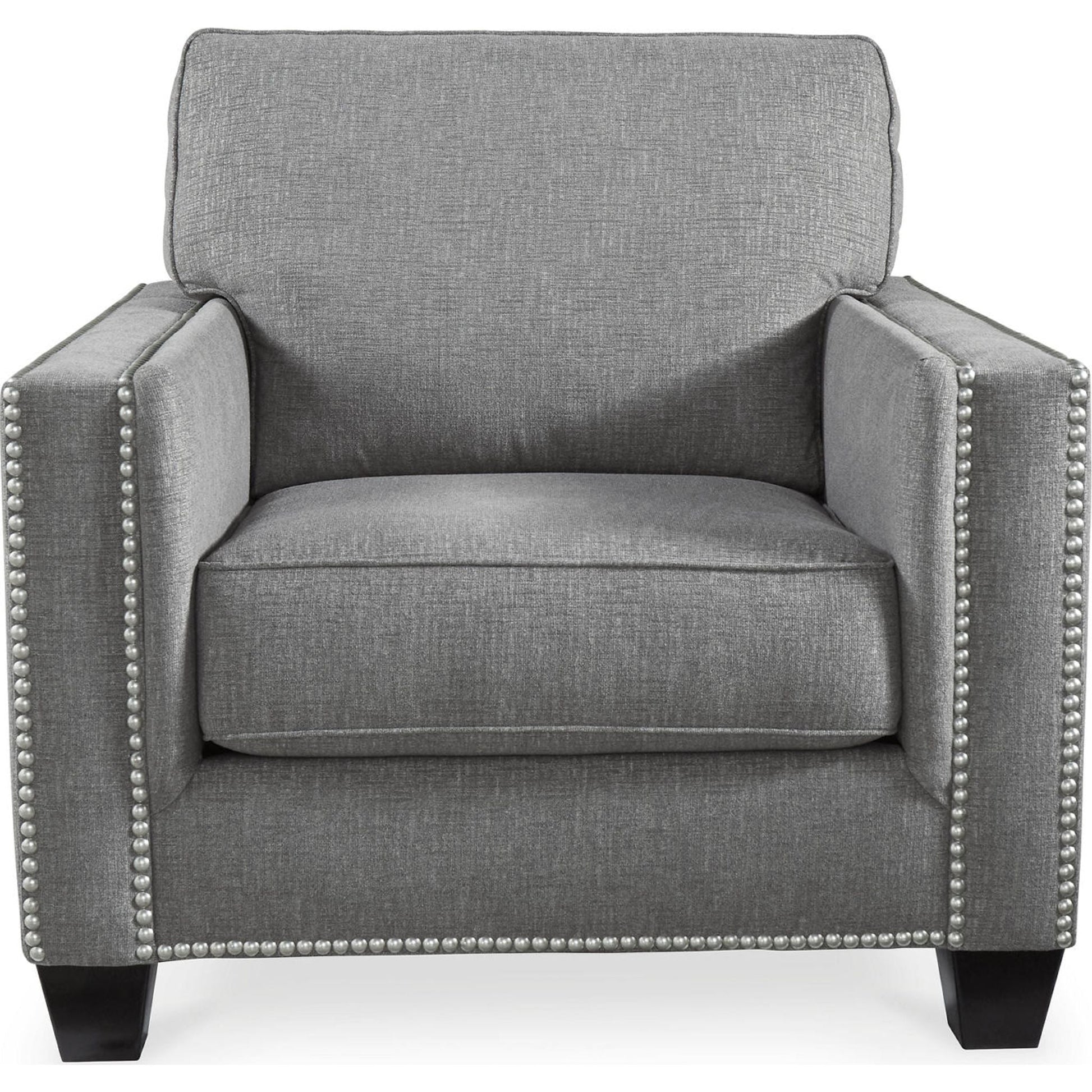 First impressions are everything, and this chair sets the bar. Chenille gray fabric turns heads with its plushness—simply fabulous from top to bottom. Clean lines speak to a fresh aesthetic, accentuated by nickel-tone nailhead trim for the wow effect. This chair is a stunning ode to all that is fashion.