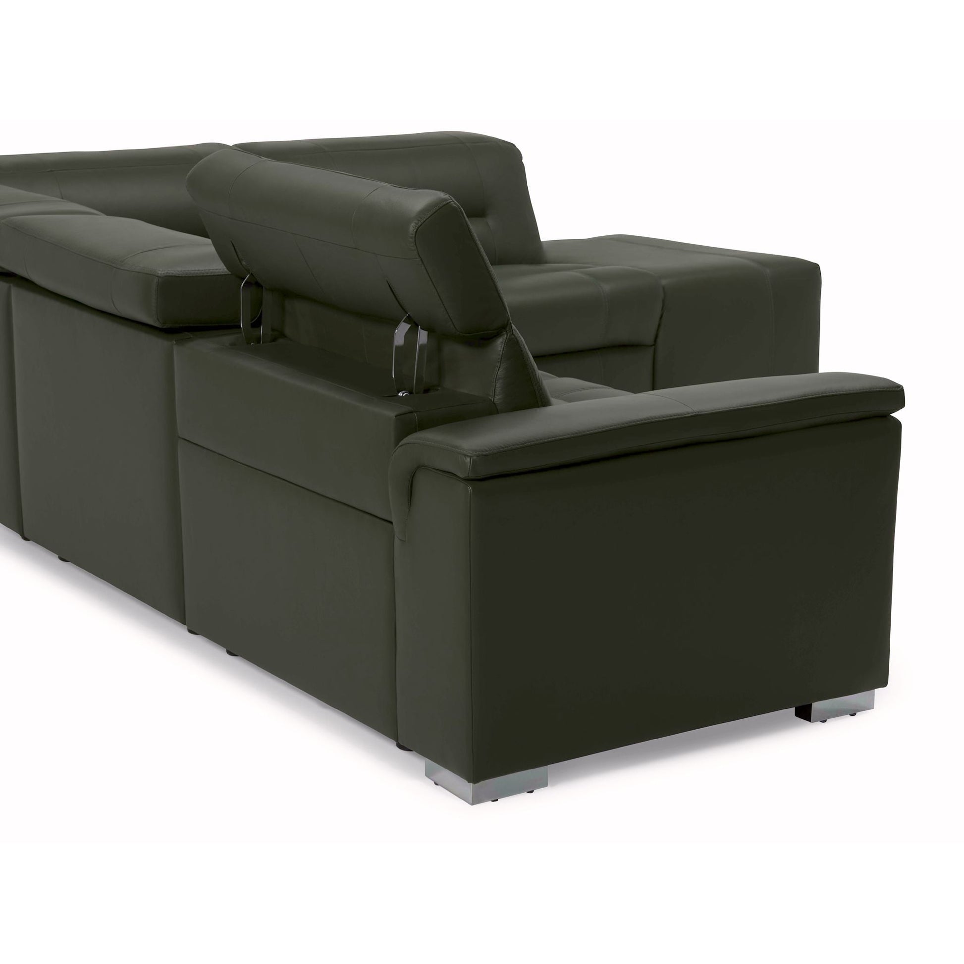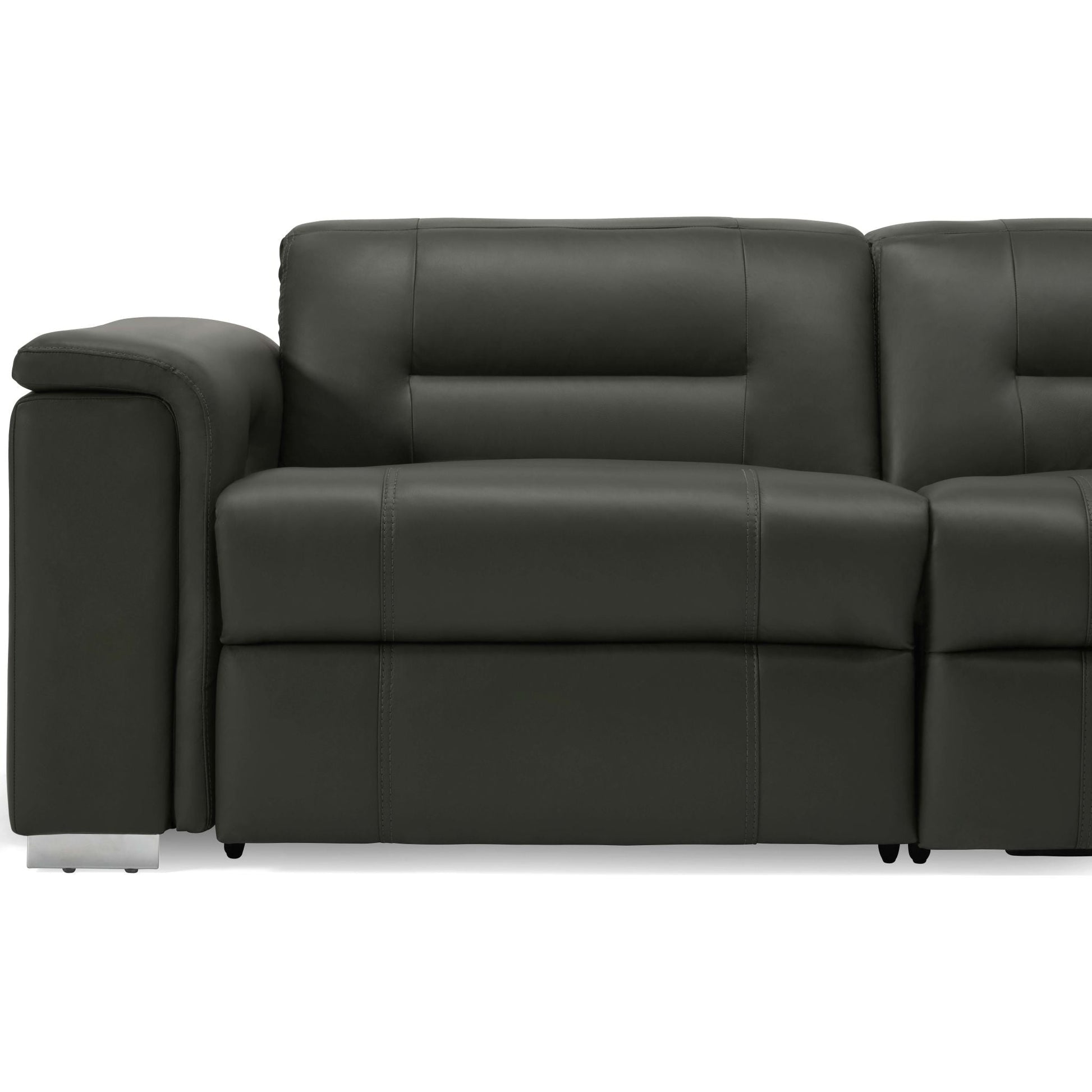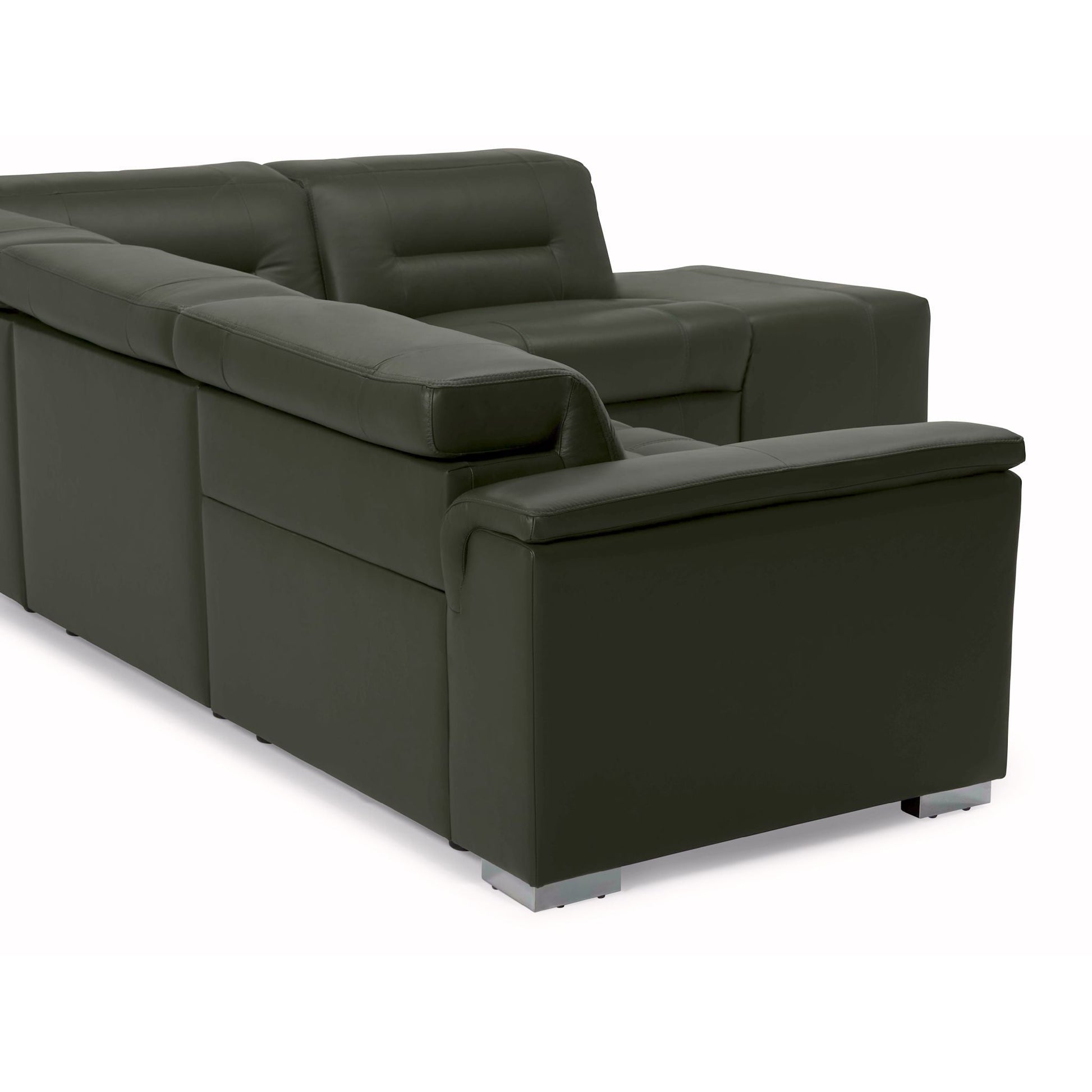 The Basil offers a relaxed, inviting take on modern motion seating. A wide, low frame and padded inner arms that extend to the floor create a casual profile that invites lounging. Power recline and power headrest are activated at the touch of a button and provide infinitely adjustable, personalized support. Make it your own with a selection of modular sectional SKUs and a choice of over 200 leathers and fabrics.