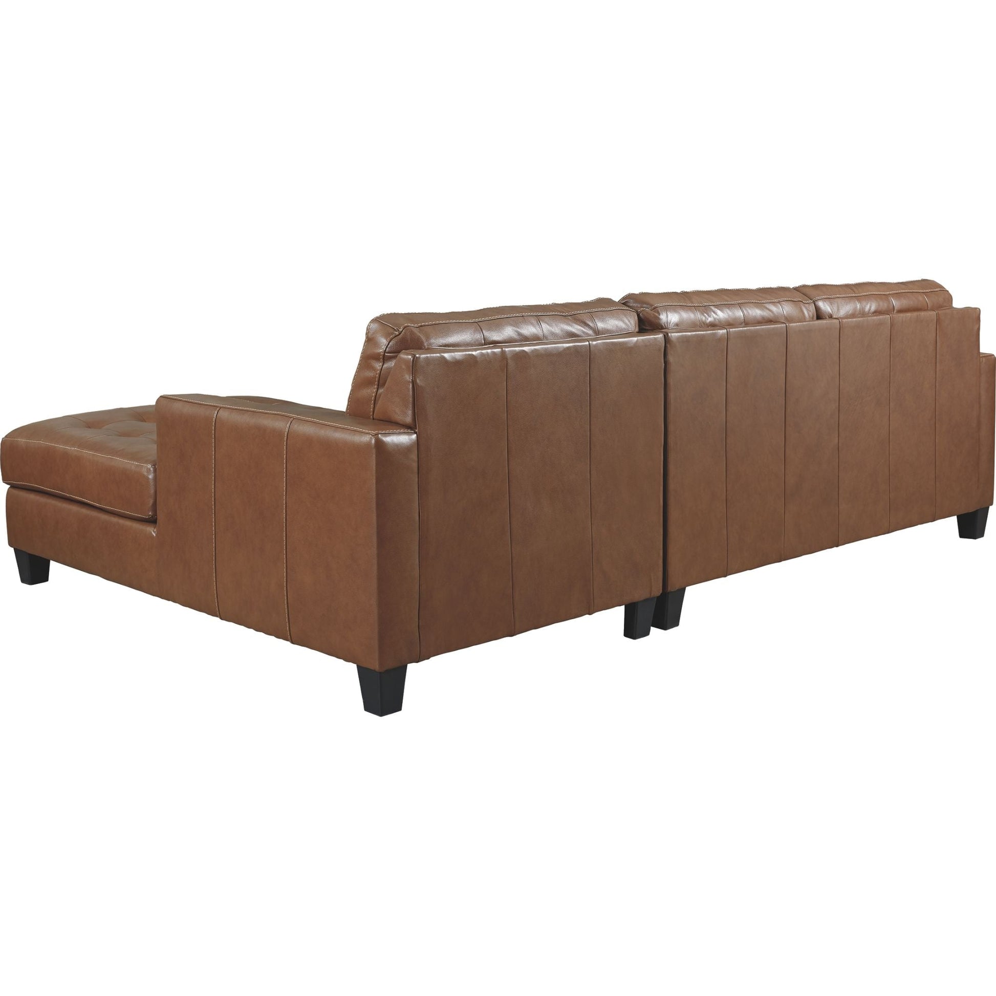 Bask in the beauty of this sectional. Reserved exclusively for those with an eye for fine contemporary design, this generously scaled sectional in auburn brown is dressed to impress in every way. Leather match upholstery provides incomparable comfort where it counts. Sleek track armrests, tufted box cushions and a sumptuous chaise are the embodiment of luxury.
