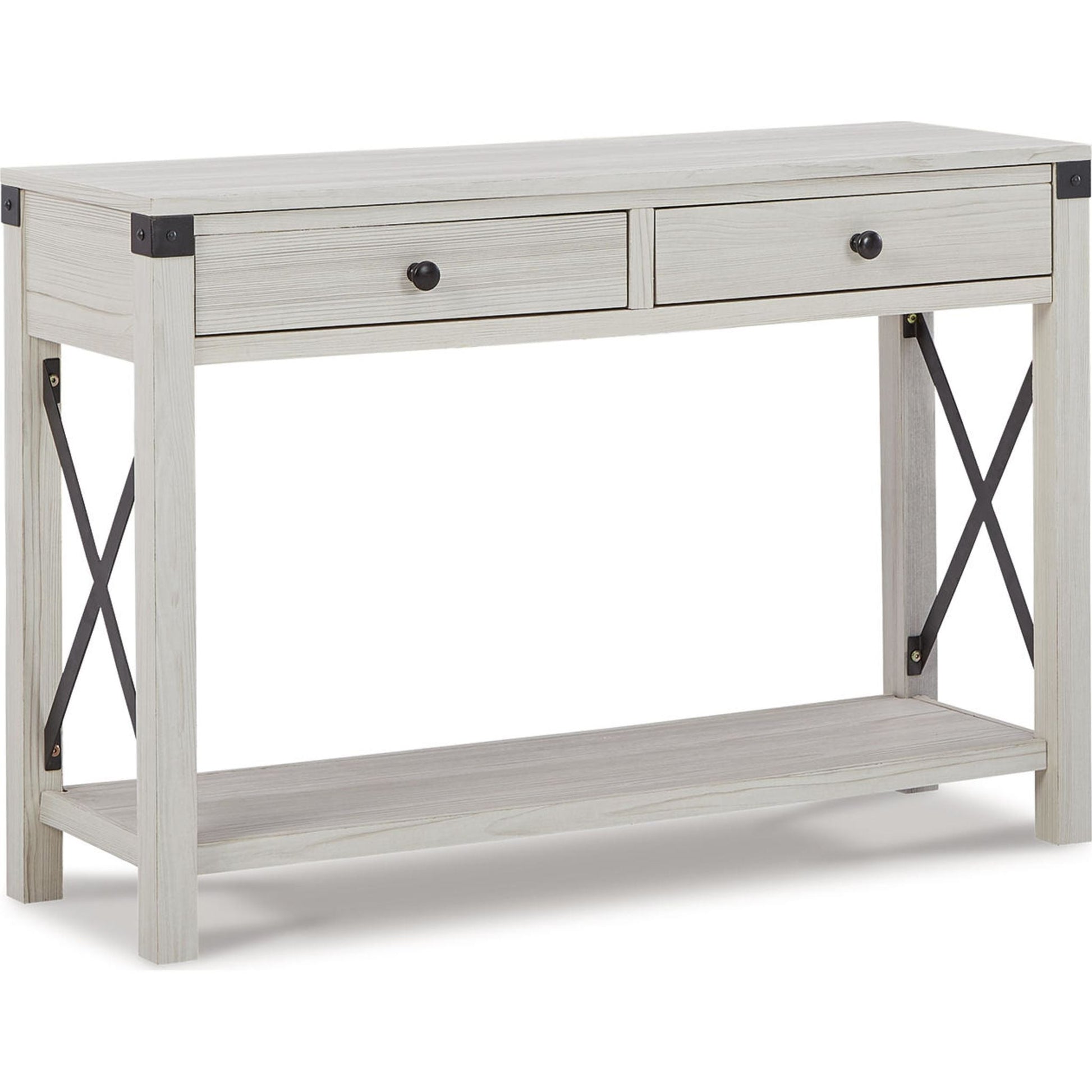 If you’re going for a simply striking addition to your space, this console table really makes a statement, creating an openly elegant place to showcase your style. With its replicated vintage barn wood effect in a subtly whitewashed color tone, this piece is decidedly understated yet rich with character. Metal crossbuck accents give it just enough flair.