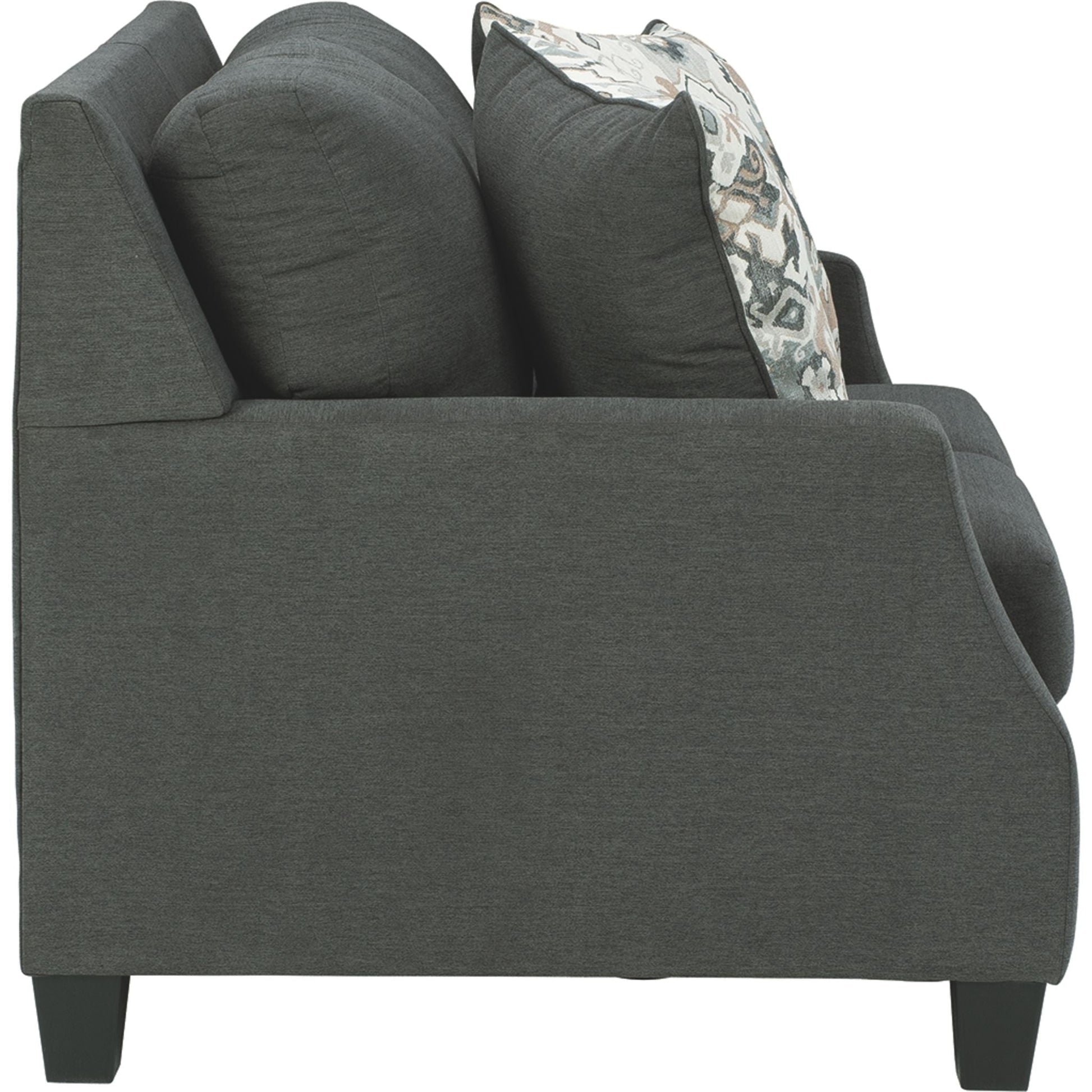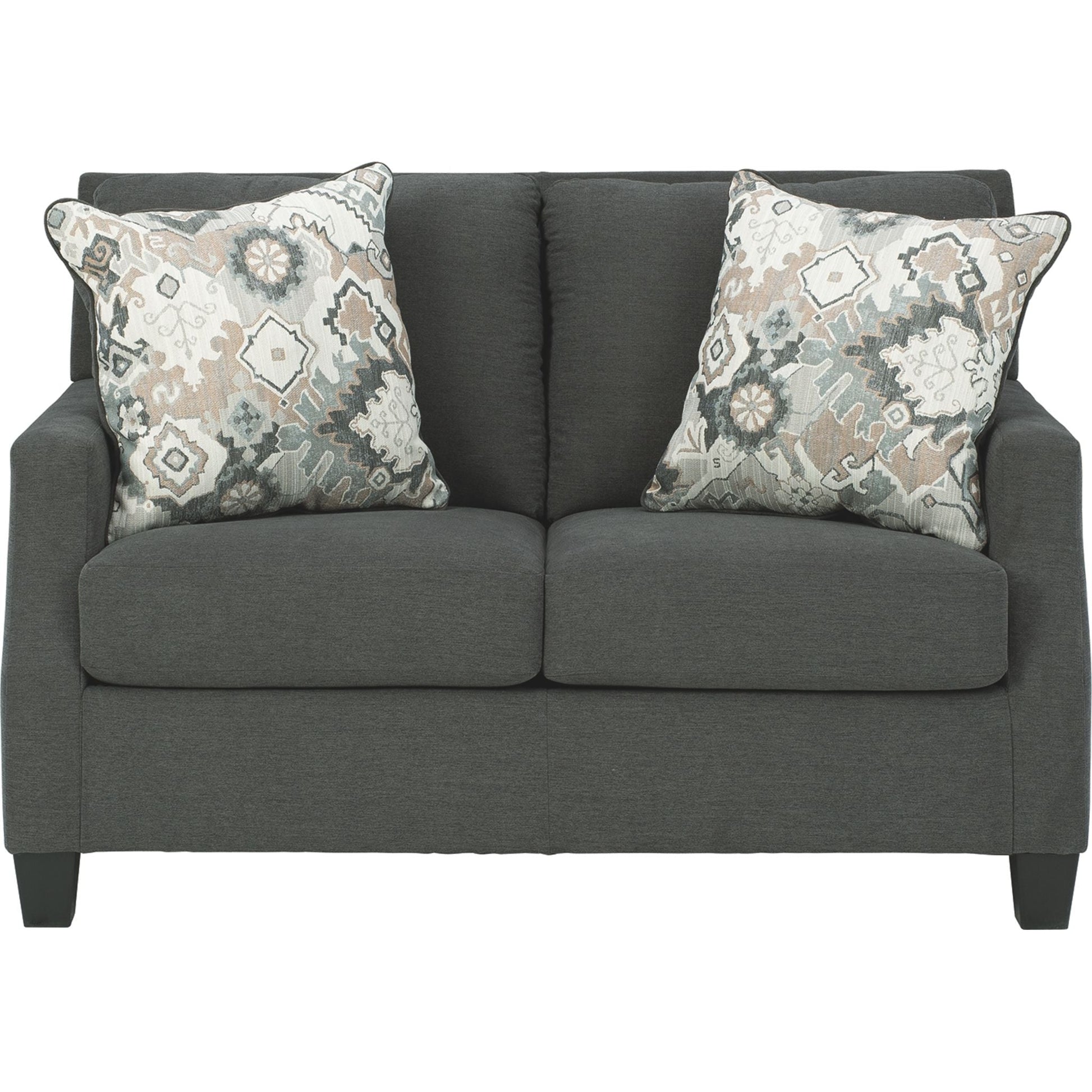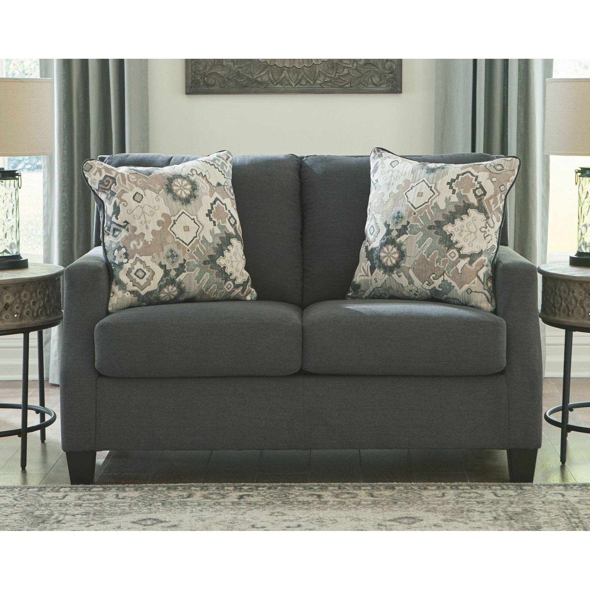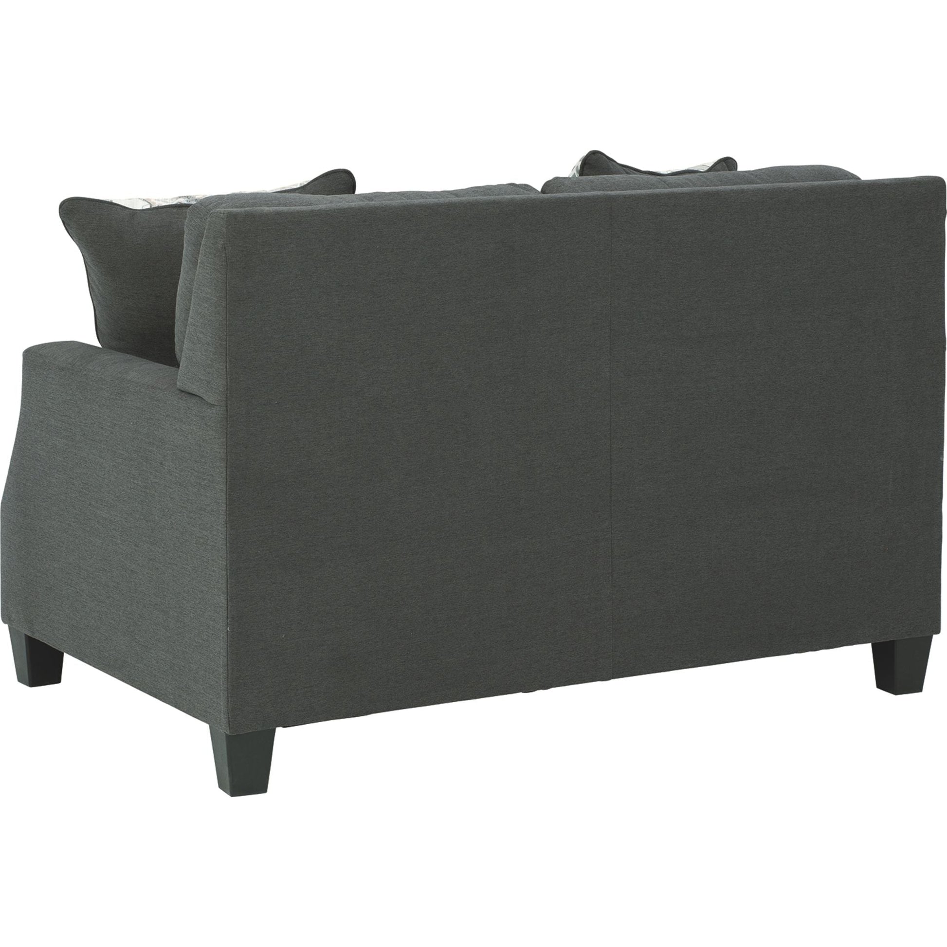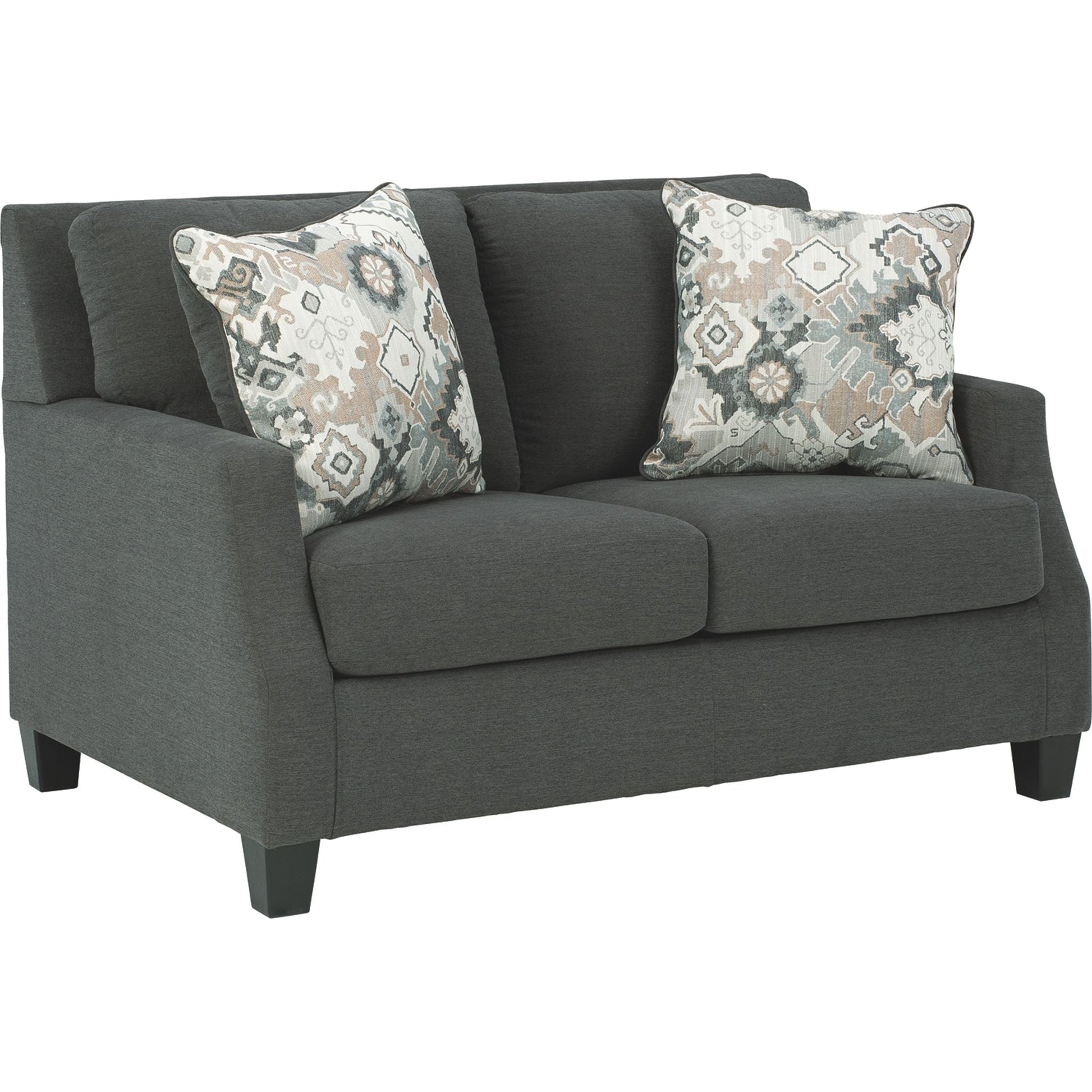 Dressed to impress with distinctive cutaway arms, this loveseat is an above-and-beyond choice for your fashionable abode. Wrapped in a soft flatwoven charcoal fabric that’s naturally on trend, this designer loveseat is sure to suit contemporary spaces and modern farmhouse places—and look right at home with classic and eclectic furnishings. That’s the beauty of a great transitional piece of furniture. That’s the beauty of this brilliantly done loveseat.
