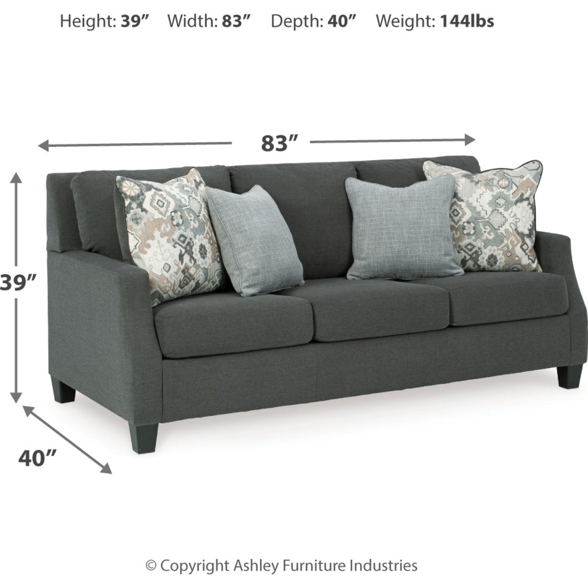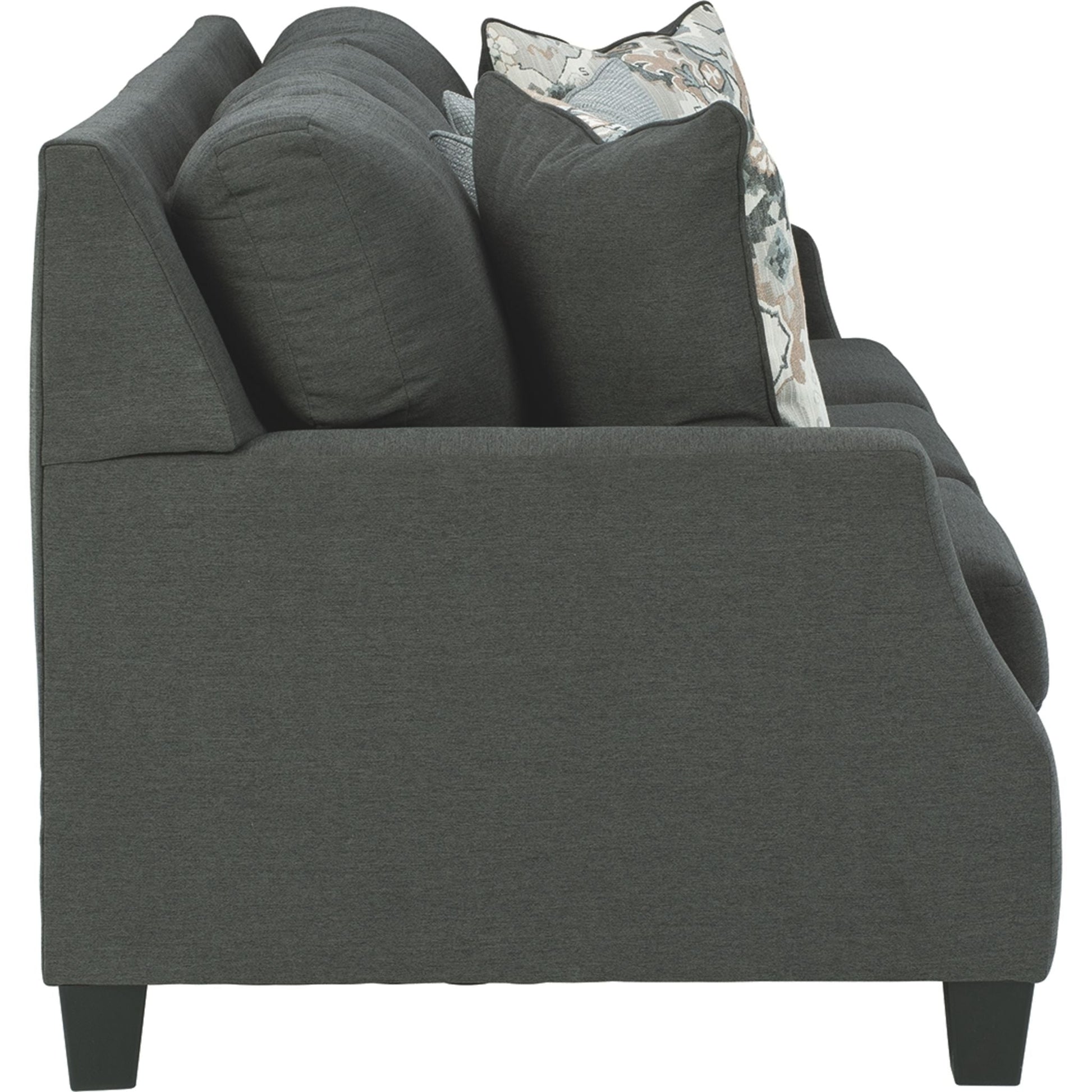 Dressed to impress with distinctive cutaway arms, this sofa is an above-and-beyond choice for your fashionable abode. Wrapped in a soft flatwoven charcoal fabric that’s naturally on trend, this designer sofa is sure to suit contemporary spaces and modern farmhouse places—and look right at home with classic and eclectic furnishings. That’s the beauty of a great transitional piece of furniture. That’s the beauty of this brilliantly done sofa.