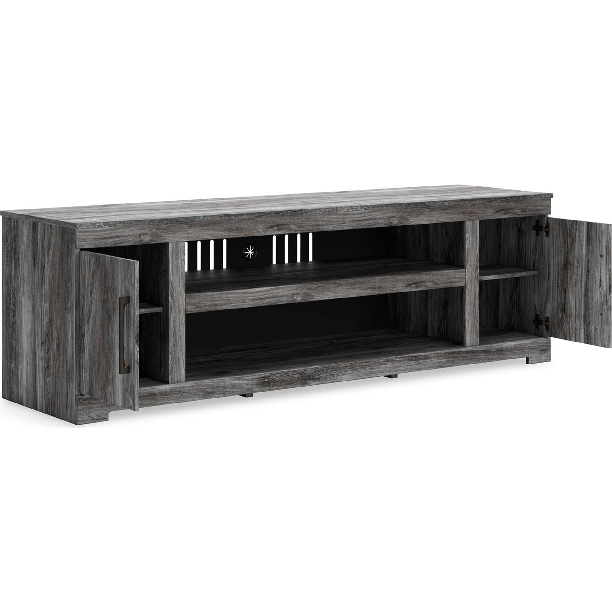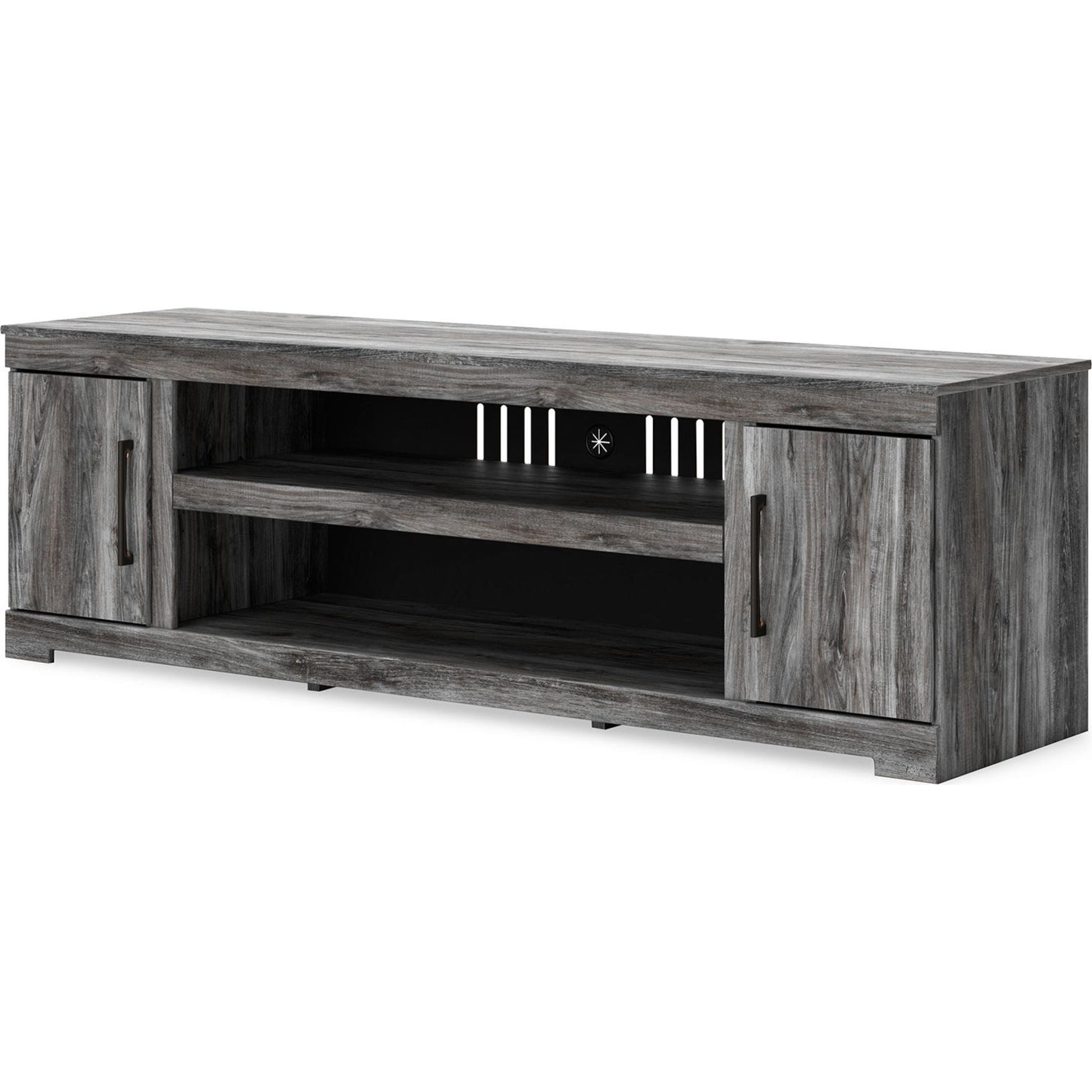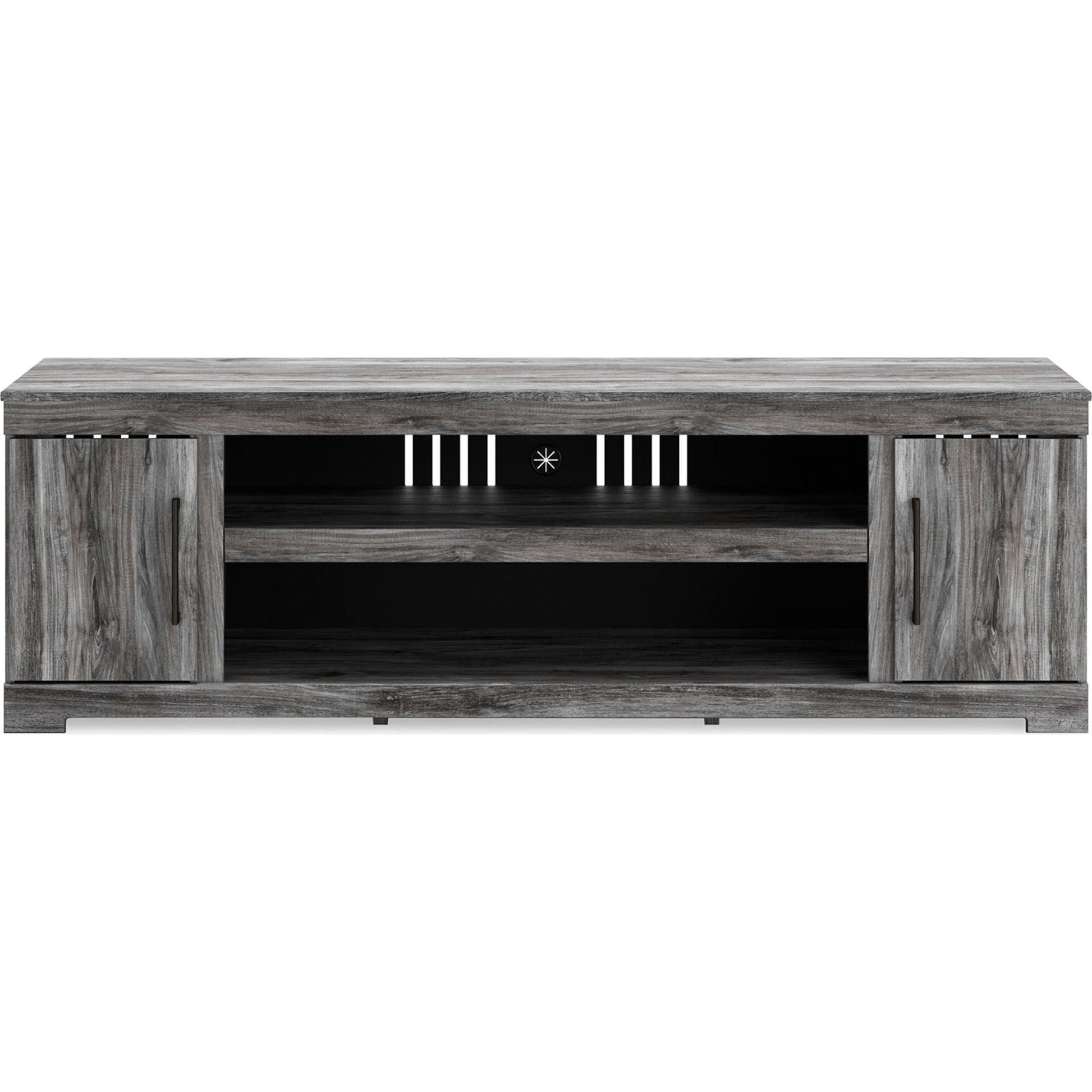 Effortless contemporary style and must-have living room function go hand in hand with this TV stand. Easy-to access media storage brings another layer of function to the clean-lined design. Big on space without being bulky, it accommodates larger flat screens with ease.