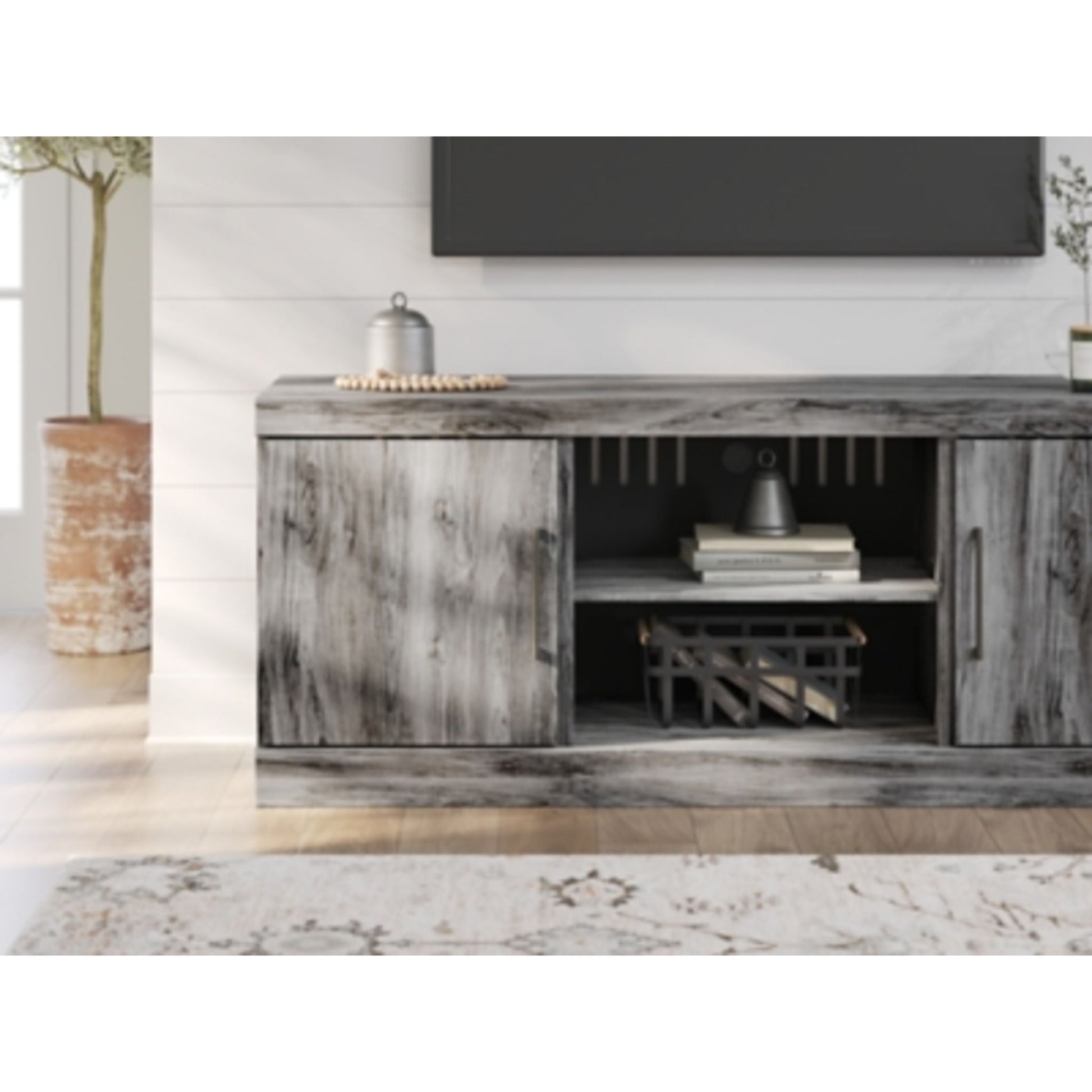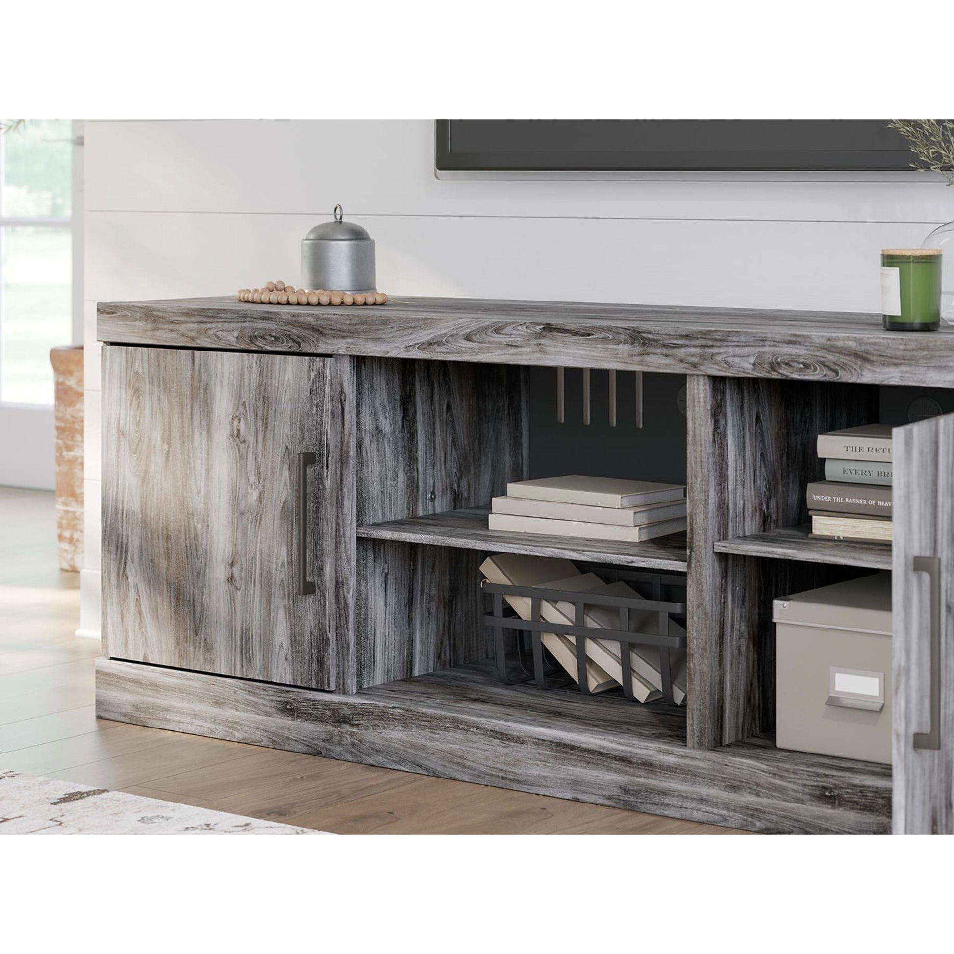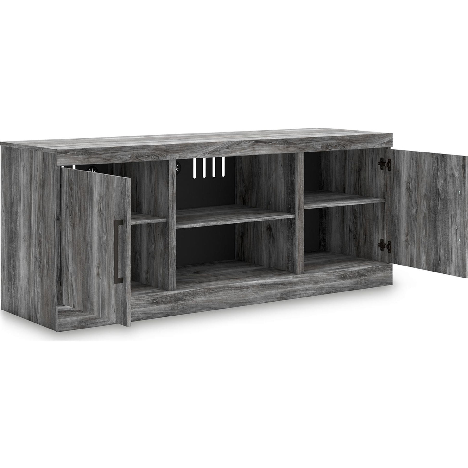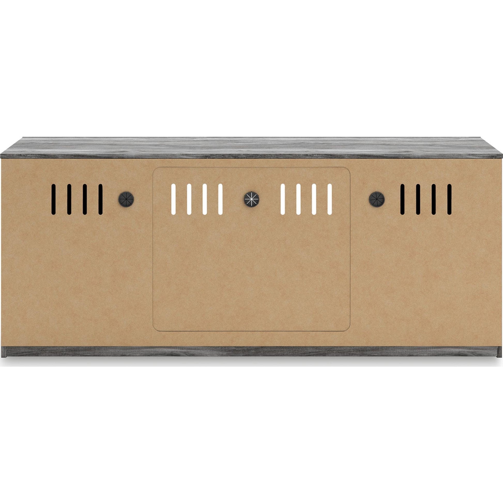 Effortless contemporary style and must-have entertainment space go hand in hand with this TV stand. Its easy-to-access media storage brings another layer of function to the clean-lined design. Big on space without being bulky, the stand accommodates flat screens with ease. Consider the optional fireplace insert (sold separately) for ambiance, warmth or both.