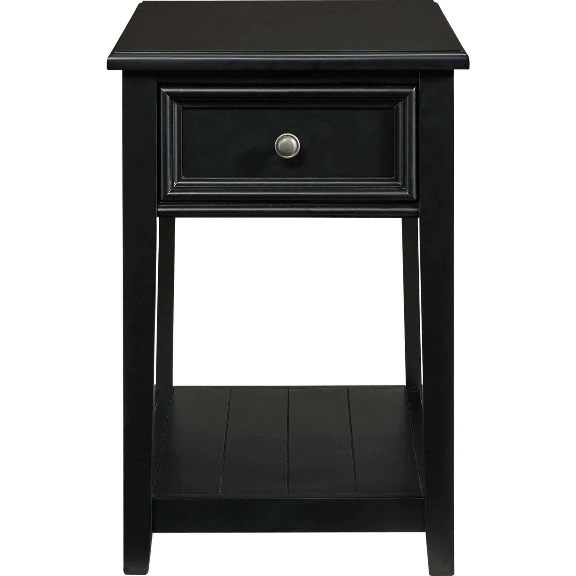 Keep chairside essentials within reach with this end table. The decorative drawer mouldings and tapered legs add an elegant look, while the open shelf and storage drawer help you achieve a carefully crafted clutter-free aesthetic.