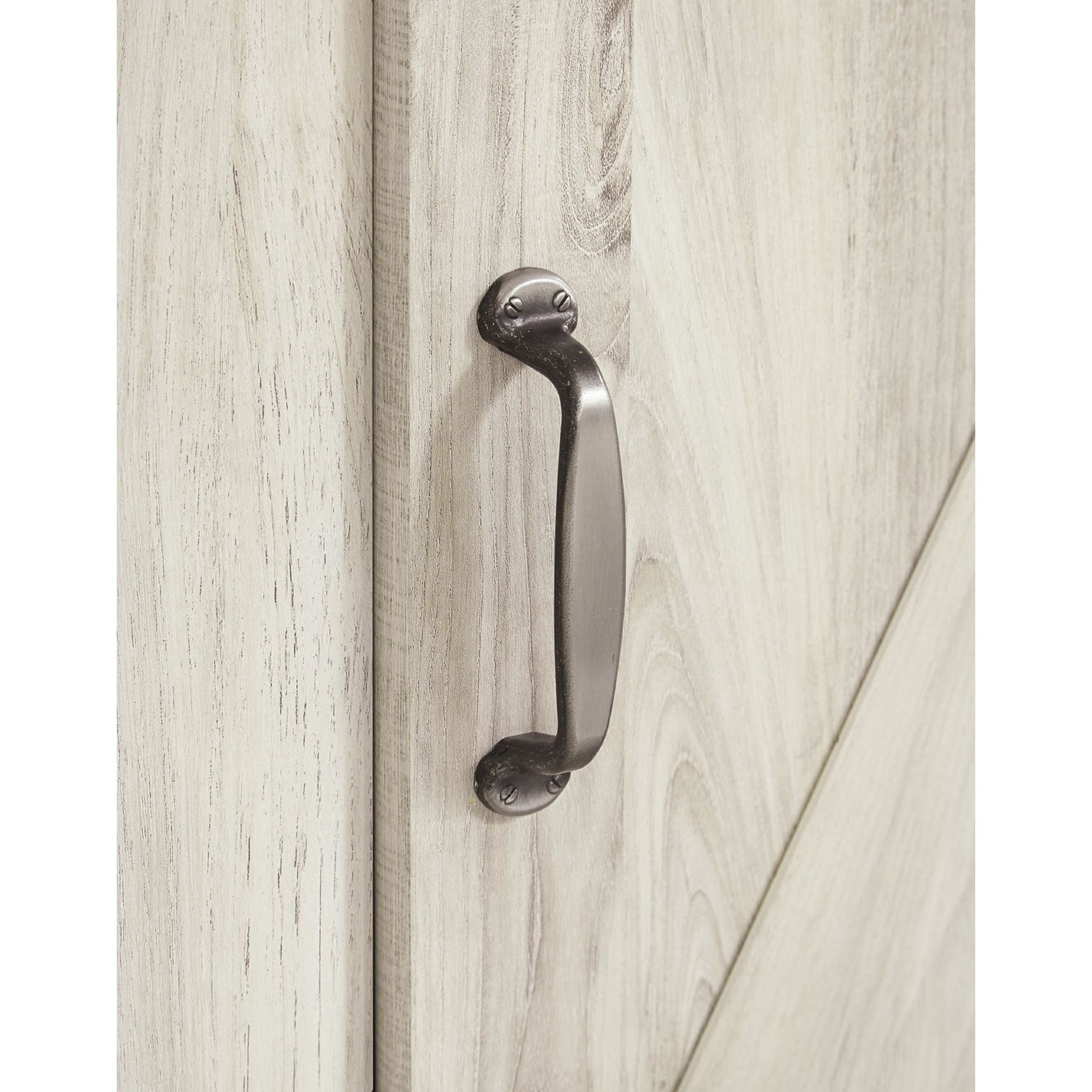 Express your modern farmhouse style with this entertainment center with fireplace. Its wispy white finish over replicated oak grain is a delightful change from the ordinary. The clean-lined, classic styling with barn door inspiration provides a country-chic aesthetic that’s a breath of fresh air. What really turns up the heat: an electric infrared fireplace insert with faux firebrick surround that operates with or without infrared heat. With the touch of a button, adjust the temperature and the flame brightness, and set the timer for long-lasting enjoyment.