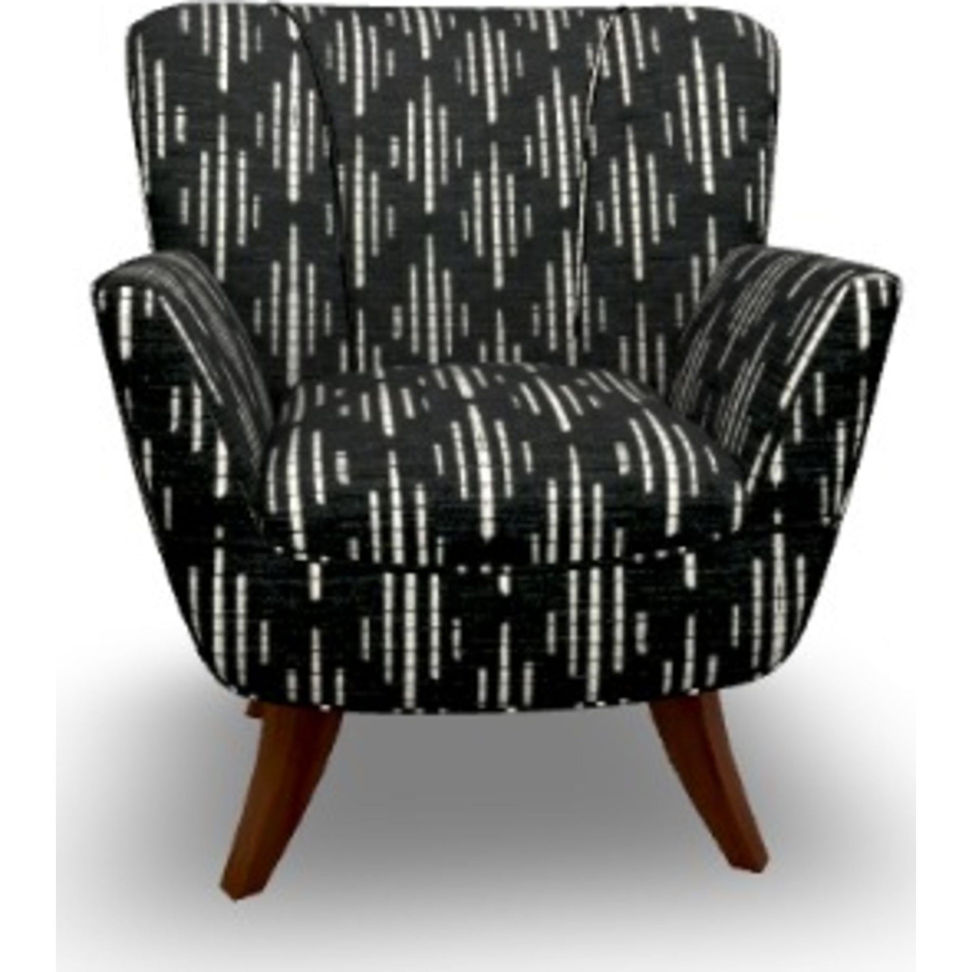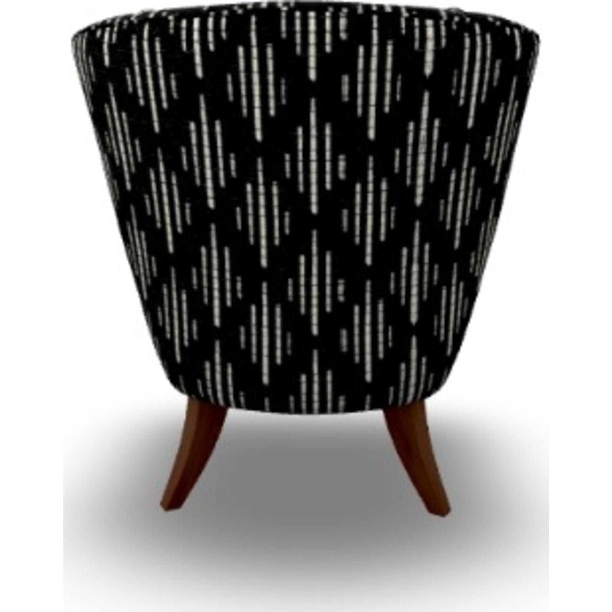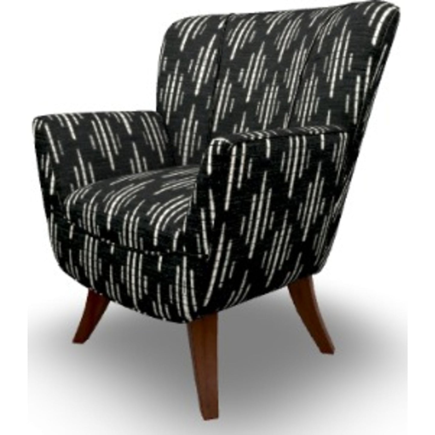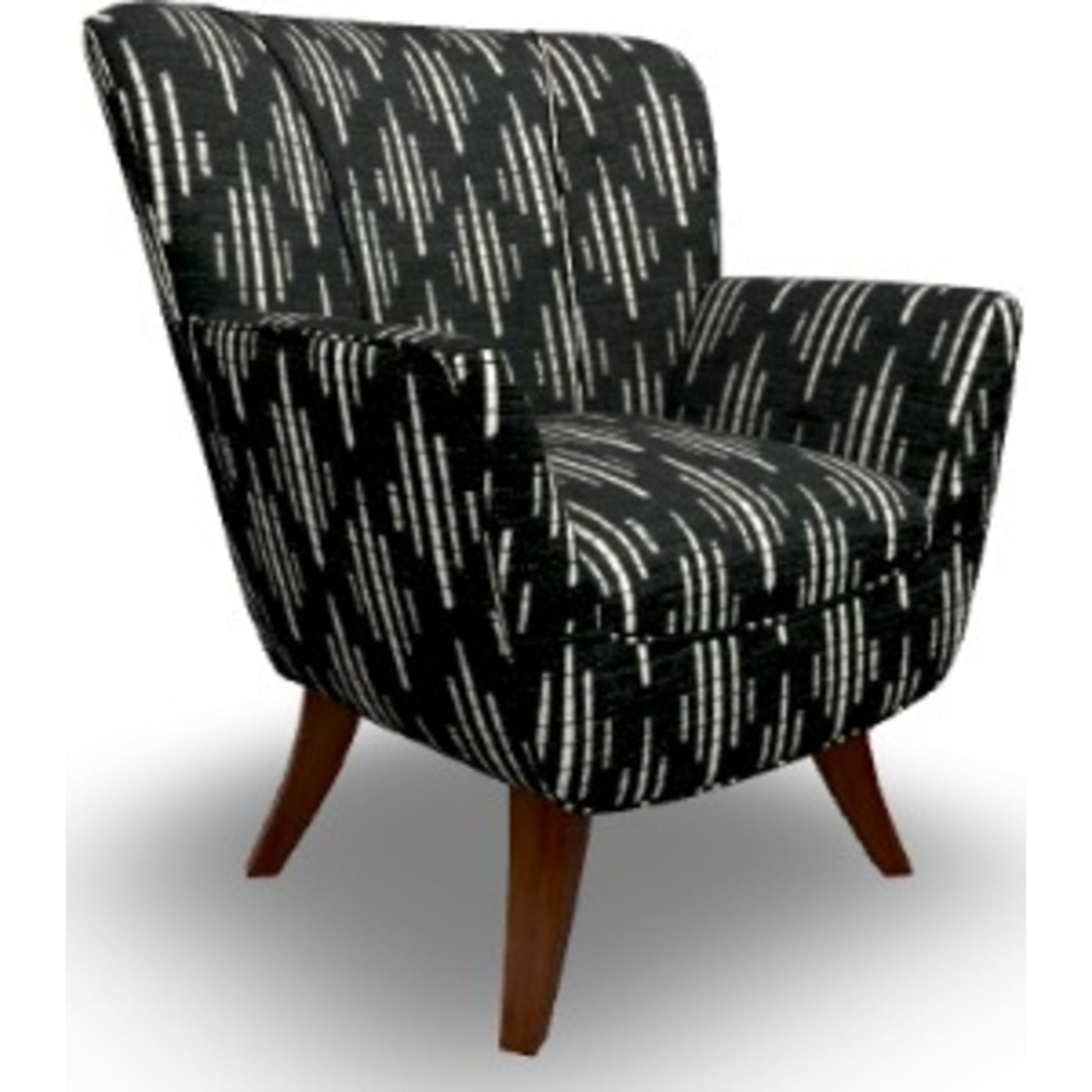 The bowed back of the Bethany club chair offers a perfect spot to sit back and be enveloped by the comfort of this playful chair. The flared legs are finished in Dark Walnut keeping in tune with the flirtatiousness of this chair. The Bethany a chair that is all your own! As an accent, it pairs nicely with many styles of furniture. The soft curves and styled pleats will leave you head over heels.