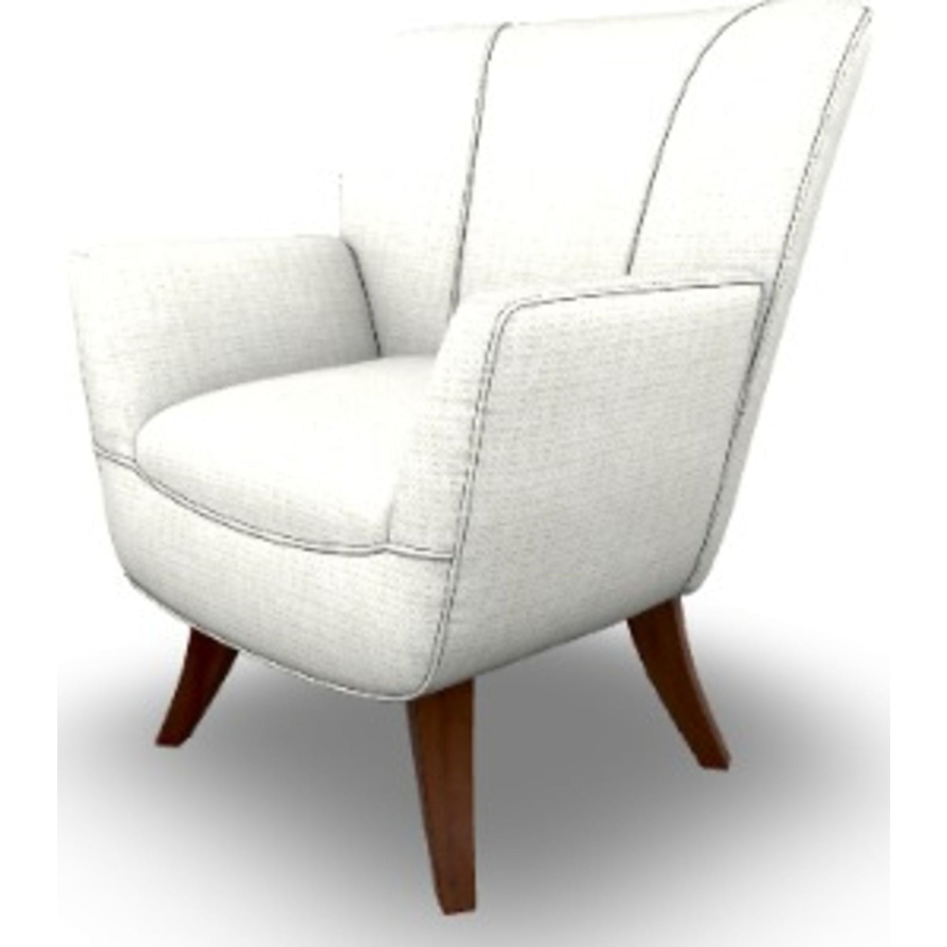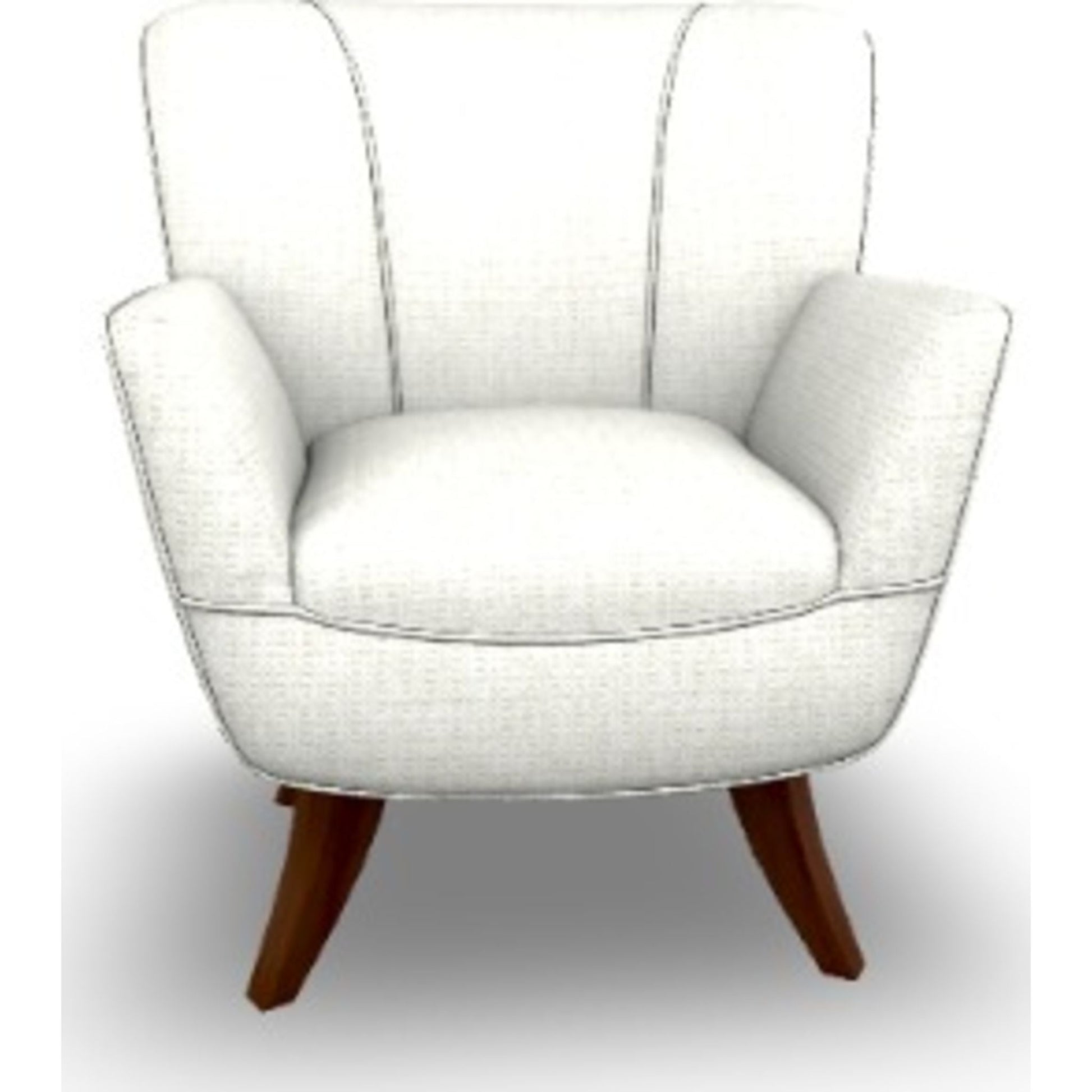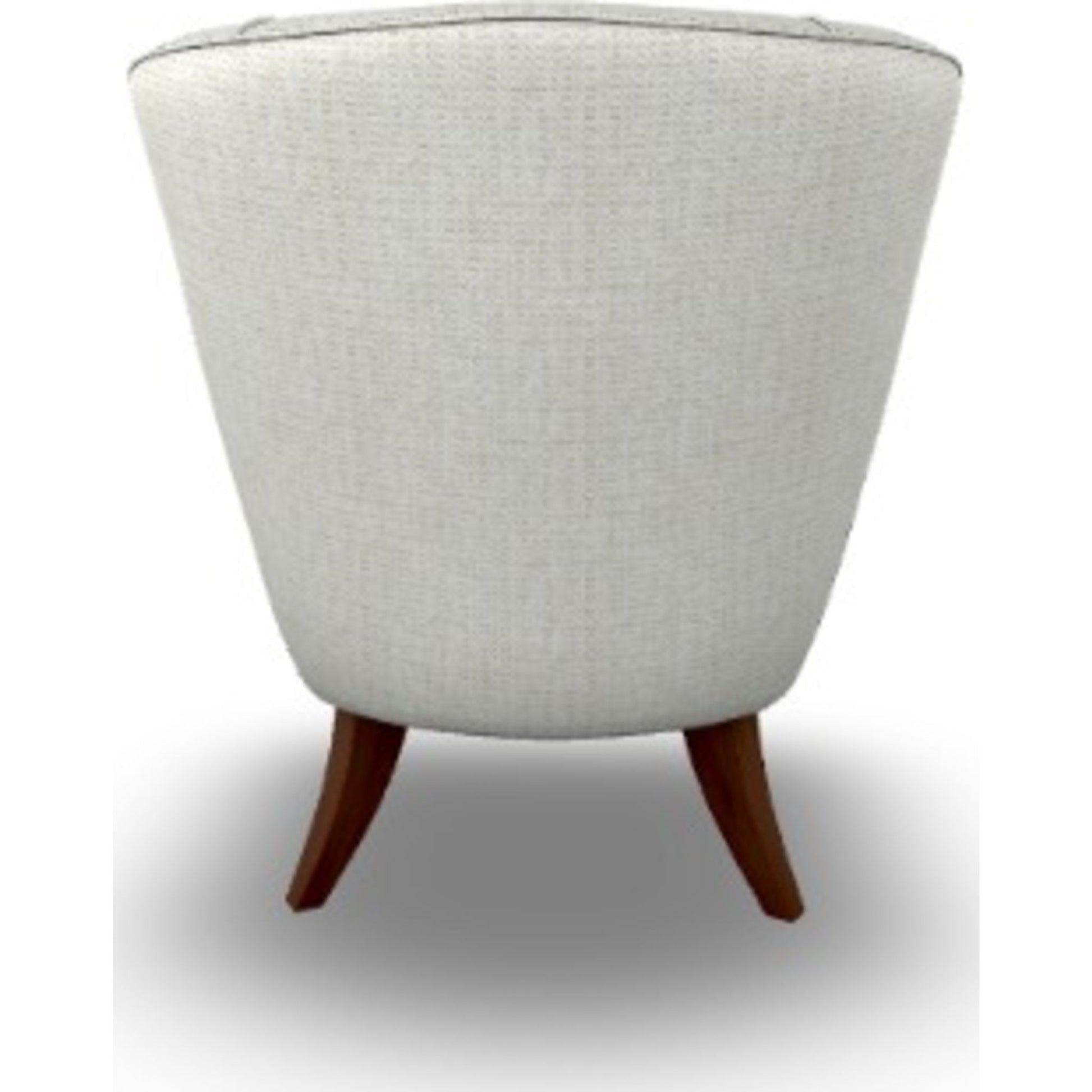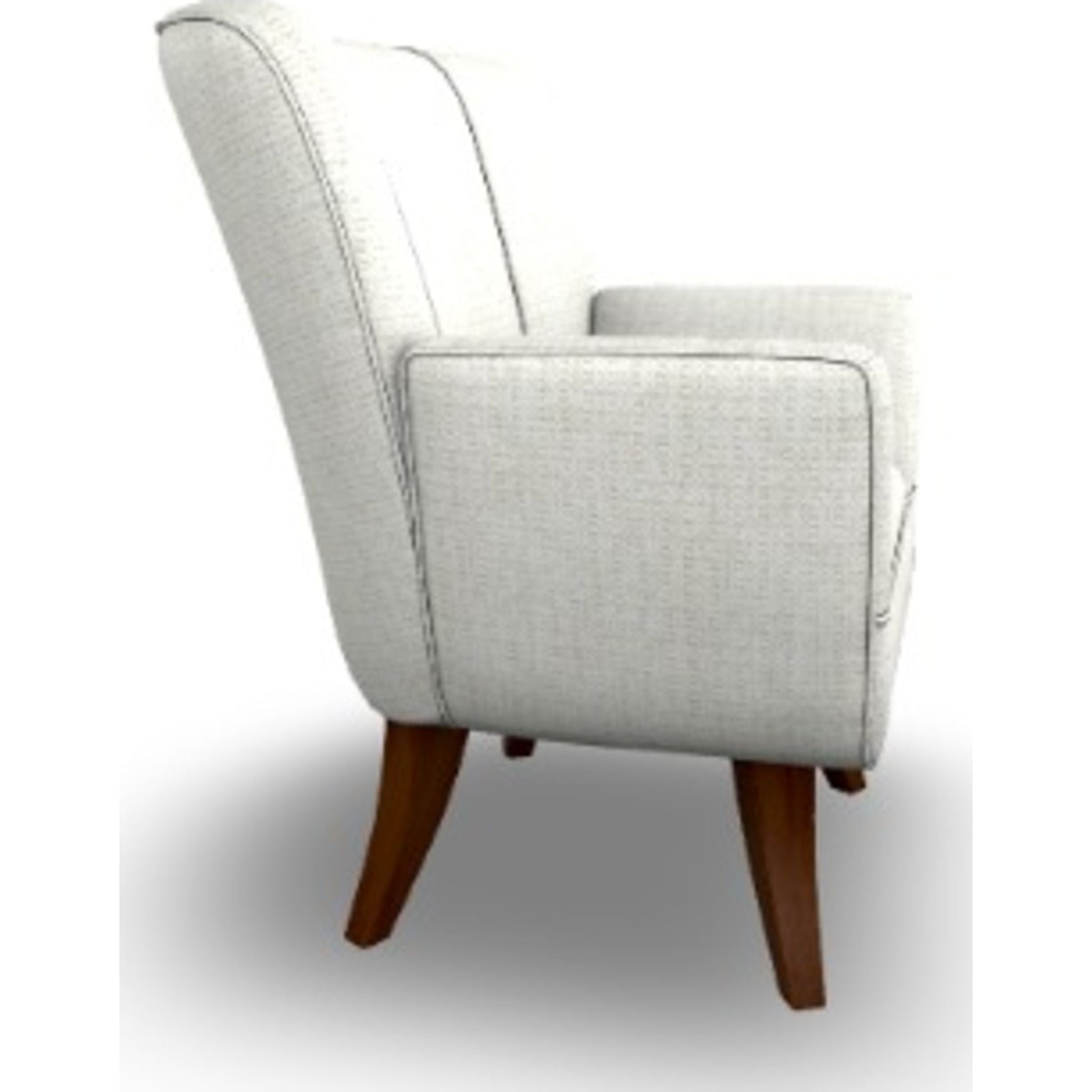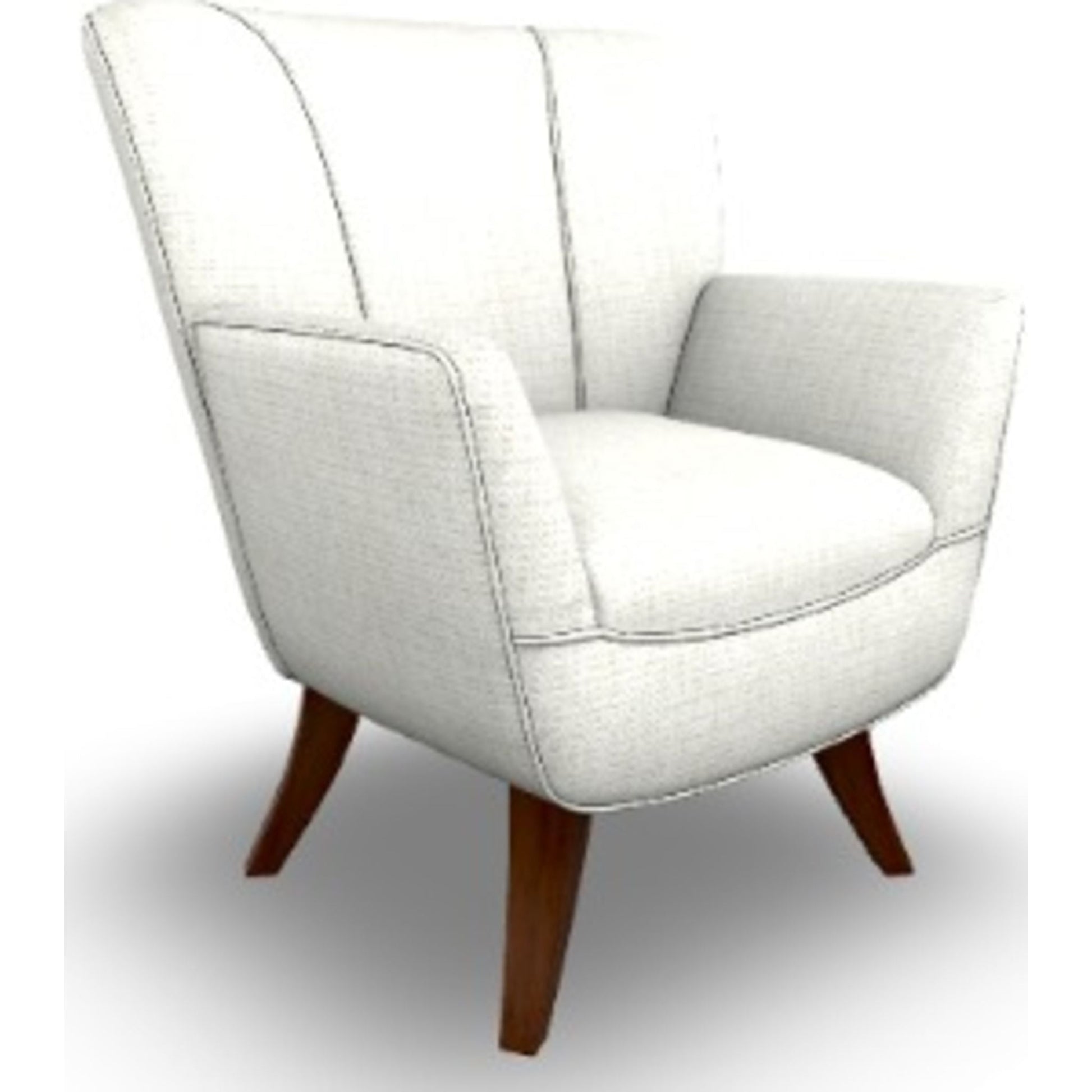 The bowed back of the Bethany club chair offers a perfect spot to sit back and be enveloped by the comfort of this playful chair. The flared legs are finished in Dark Walnut keeping in tune with the flirtatiousness of this chair. The Bethany a chair that is all your own! As an accent, it pairs nicely with many styles of furniture. The soft curves and styled pleats will leave you head over heels.