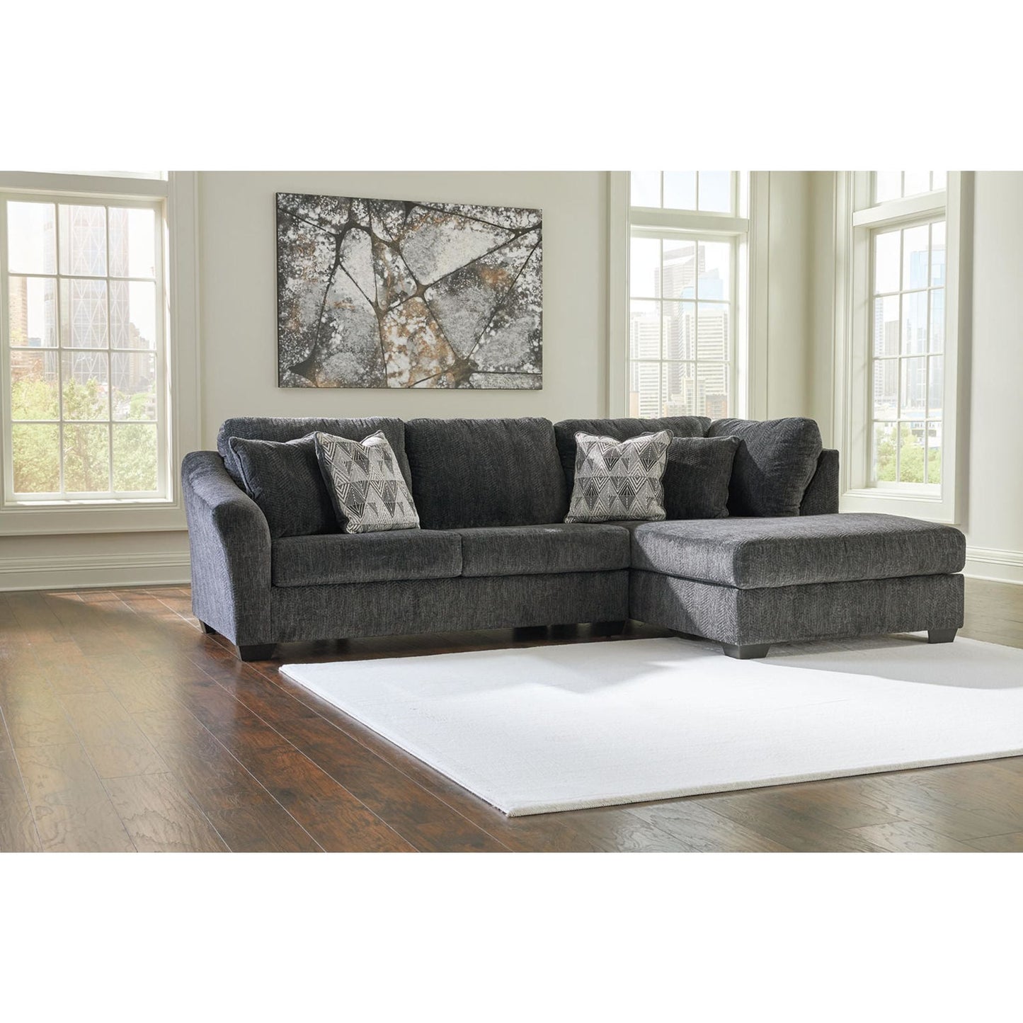 Bring fashionable function to the forefront with this sectional with chaise. A transitional arm design adds flair to the frame, incorporating subtle visual interest into the otherwise clean-lined silhouette. Dress it up or down. In a richly versatile neutral, this sectional appeals to a variety of style personalities.